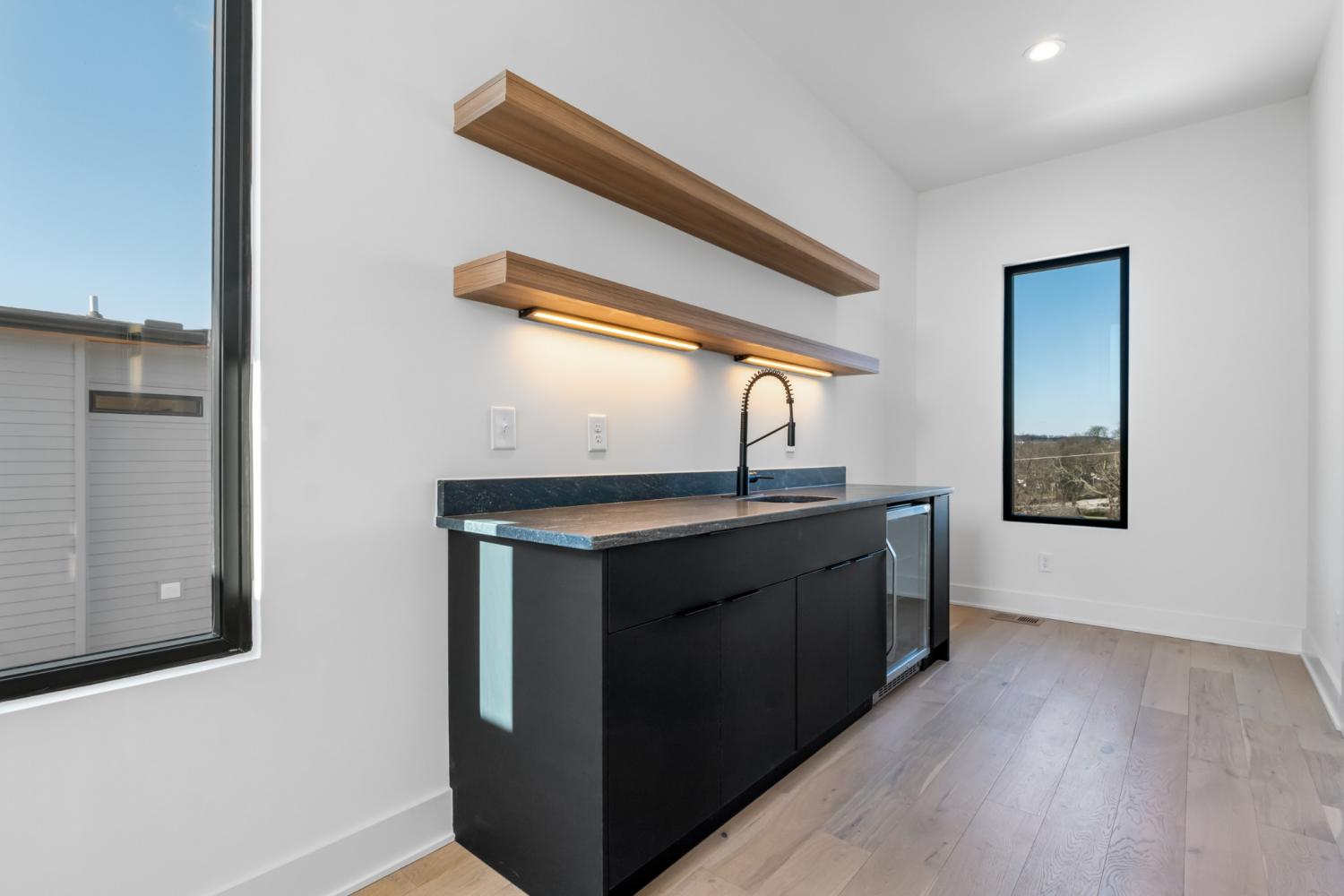 Modern luxury home in one of East Nashville’s most desirable neighborhoods. Across from Lincoln Tech’s redevelopment with a new park, restaurants, and shops primed for long-term appreciation. Inside, enjoy 10–12 ft ceilings, designer finishes throughout, and a double-sided fireplace connected to the private outdoor courtyard. Multiple wet bars make entertaining seamless. The rooftop Lookout Tower offers a view of Downtown Nashville, perfect for New Year's & 4th of July fireworks. A guest suite with a separate entrance is fully OOSTR-ready for Airbnb or private hosting. Known for its walkability to Publix, Orange Theory, and top restaurants. Superior insulation ensures a quiet, peaceful interior. Incentives: 1.5% Rate Buydown and Free Appraisal with Preferred Lender.