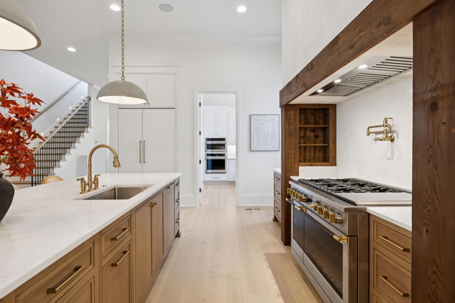 Welcome to 1408 Adams Street, an exceptional new construction home by HD Building Group located on one of the most beloved streets in Historic Downtown Franklin. This home offers a rare opportunity to enjoy timeless Franklin character paired with elevated modern design. From the moment you step inside, soaring 12’ ceilings on the main level create an airy, open feel while natural light pours through oversized windows. Every detail has been carefully curated with high-end finishes, from the custom tilework throughout to the seamless Monogram appliance package and panel-ready refrigeration. The chef’s kitchen is a true showpiece with a 48” Monogram range, expansive island, and hidden scullery featuring double ovens, ice maker, and panel-ready dishwasher—ideal for effortless entertaining. A custom wine room with built-in display racks adds both function and artistry. The thoughtful floor plan blends luxury and livability. A dedicated main-level office provides privacy for remote work, while the primary suite offers a peaceful retreat with two spacious walk-in closets and spa-like bath. A secondary bedroom on the main level creates flexibility for guests or multigenerational living. Upstairs, additional bedrooms and the option for a massive bonus room provide endless opportunities for media, or recreation. Outdoor living is equally impressive with a large covered patio framed by privacy landscaping, perfect for gatherings by the gas fireplace. An irrigation system keeps the lawn low-maintenance and lush. Beyond the finishes, the home is built with lasting quality: Tech-shield roof barrier for efficiency, encapsulated crawlspace for foundation protection and healthier air, and tall garage ceilings for extra storage or a future lift. This residence pairs craftsmanship, luxury, and location—delivering an elevated lifestyle in the heart of Historic Franklin.