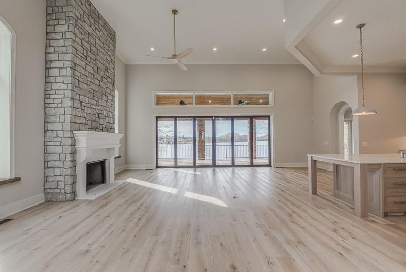 Botsko Builders is putting the last finishing touches on this "down to the studs" rebuild on the lake at Fairvue Plantation. With a 3/4 mile view and 180 degrees this could possibly be one of the best lake lots on Old Hickory Lake with direct views of the setting sun and an all glass 18' "Nanowall" door to view it from. Open the Nanowall to create NO TRANSITION between indoor and outdoor living. The covered and tiled rear patio is over 600 sq ft and provides the perfect space to build your outdoor kitchen or simply to enjoy as your alfresco living area. This grand and open plan provides all of your day to day needs on the main level. Future expandable space can be found in the attic, and the basement is complete with a full kitchenette, two bedrooms, a study, and a mechanical room that Bill Nye the Science Guy would be proud of. The (3) stop elevator makes all levels easily accessible. Wolf and Sub-Zero appliances are a given but some hidden features such as GEO-thermal, ICF walls , Casement Windows, central vac, storm room and a "Lifetime" shingle are just a few of the features that you might not notice. Located in a gated section of the community the rear patio sits less than 35 feet from the waters edge. Enough room for a pool but not enough room to spend weekends maintaining a lawn.