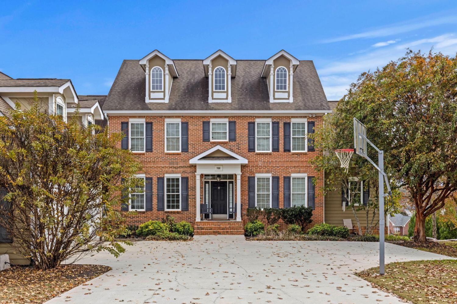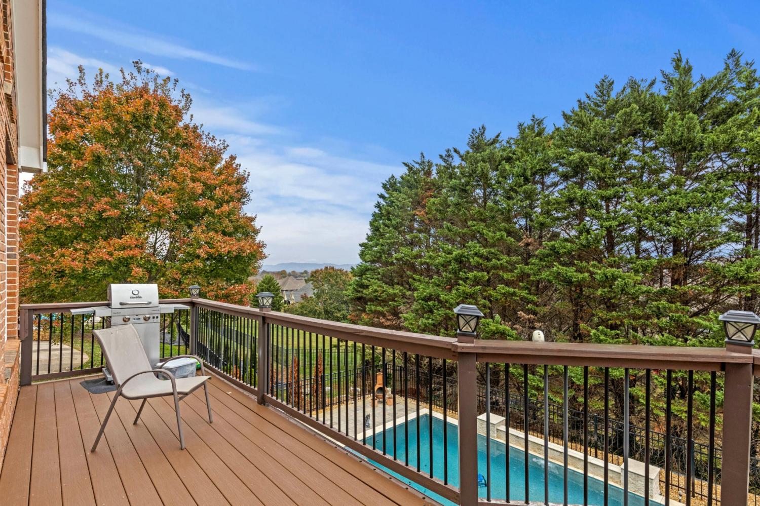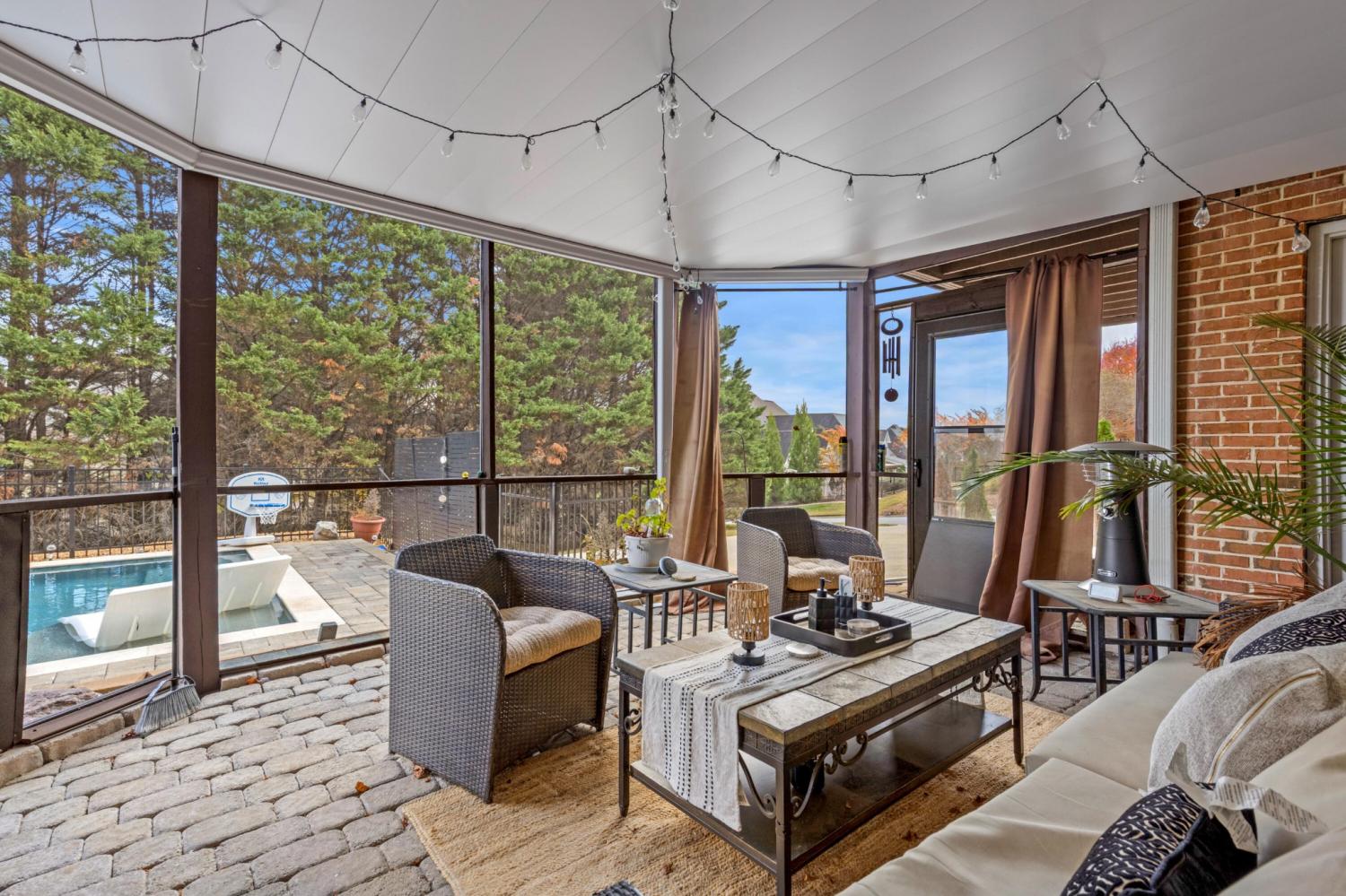 Welcome to 7416 Splendid View Drive, an exceptional estate situated on a corner lot in the gated Hampton Creek community. This stunning 7-bedroom, 6.5-bathroom residence showcases refined craftsmanship, resort-style amenities, and the perfect balance of comfort, and luxury. Step inside to a grand living room centered around a stone fireplace, framed by floor-to-ceiling vaulted windows that flood the space with natural light and overlook the backyard and pool. The gourmet kitchen features a large island, double wall ovens, built-in stainless steel appliances, and a bright breakfast nook, while the dining room offers an inviting setting for hosting. The primary suite serves as a private retreat with trayed ceilings, a jetted soaking tub, walk-in shower, seated vanity, and a walk-in closet. Each additional bedroom boasts its own private bathroom for ultimate comfort and convenience. Entertainment and relaxation come easy with two media rooms, both equipped with projectors and screens—one enhanced by its own stone fireplace—as well as a second living area. The basement-level screened porch overlooks the in-ground pool, which is less than 3 years old, providing a cool and shaded escape during warmer months. Outside, the fenced-in pool deck features an elevated sunning area inside the pool, while the main-level deck offers ample space for outdoor dining. An upstairs bedroom balcony provides a peaceful private vantage point for enjoying the surrounding views. Additional highlights include two laundry rooms, a fully equipped basement kitchen with double refrigerators and stainless steel appliances, and multiple garages - including a heated garage - plus a spacious storage shed. Located within Hampton Creek, residents enjoy access to the Ooltewah Club, featuring a grill restaurant and an 18-hole golf course. 7416 Splendid View Drive offers a rare combination of space, style, and sophistication. Schedule your viewing today!