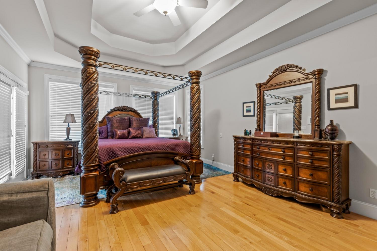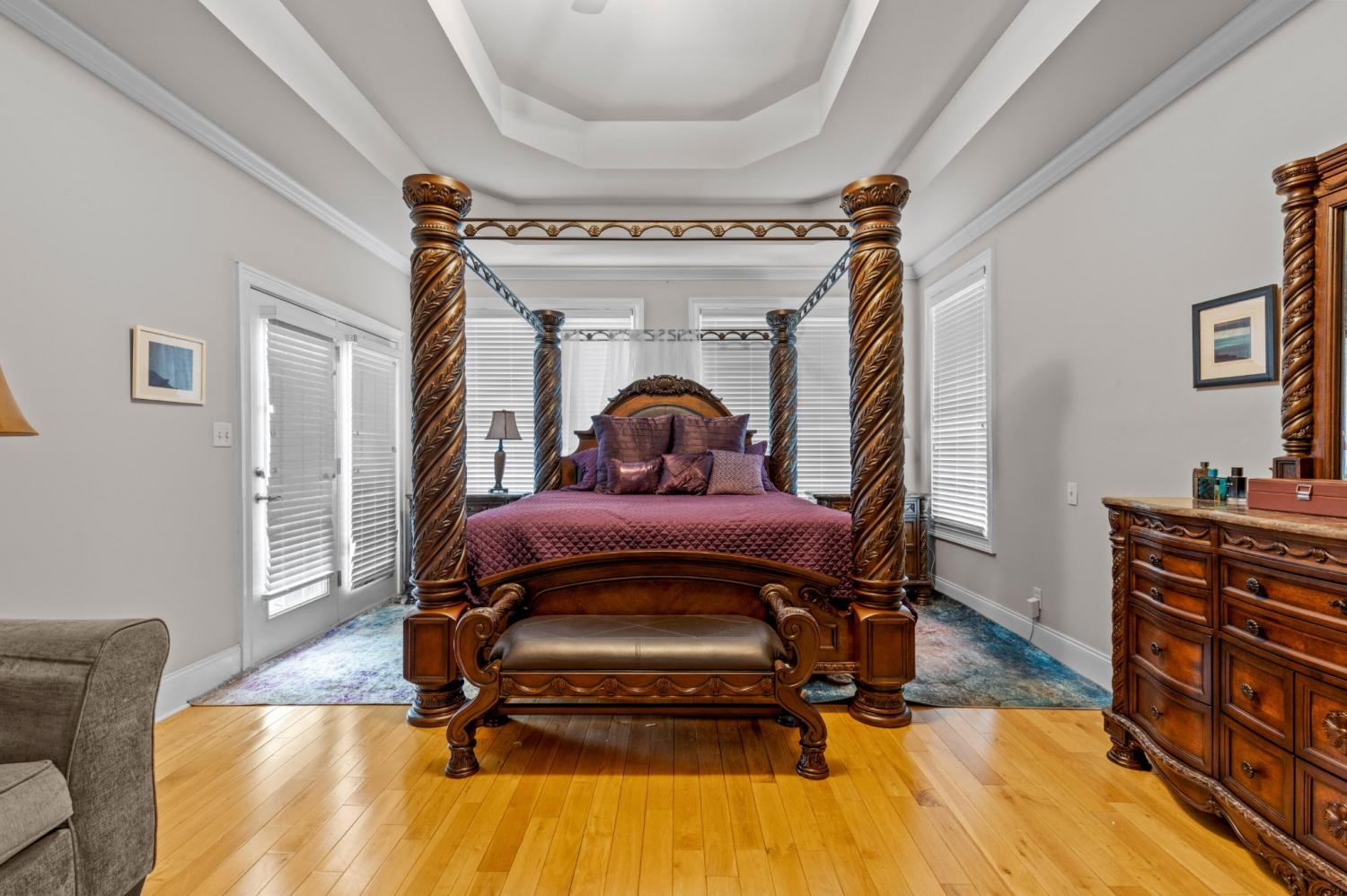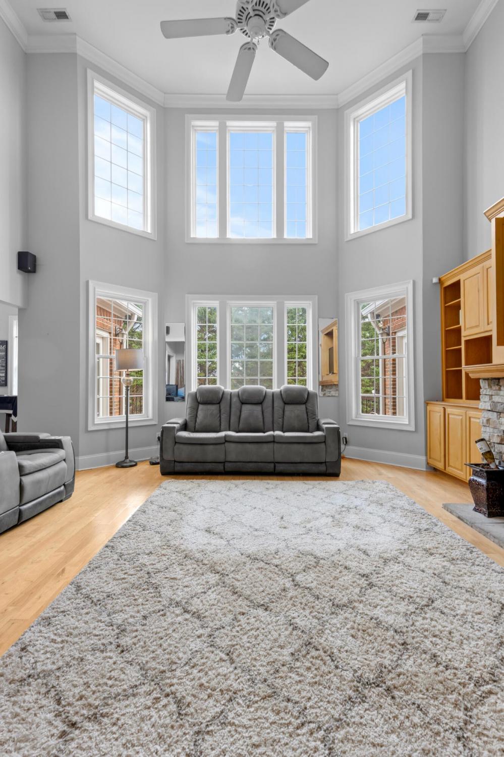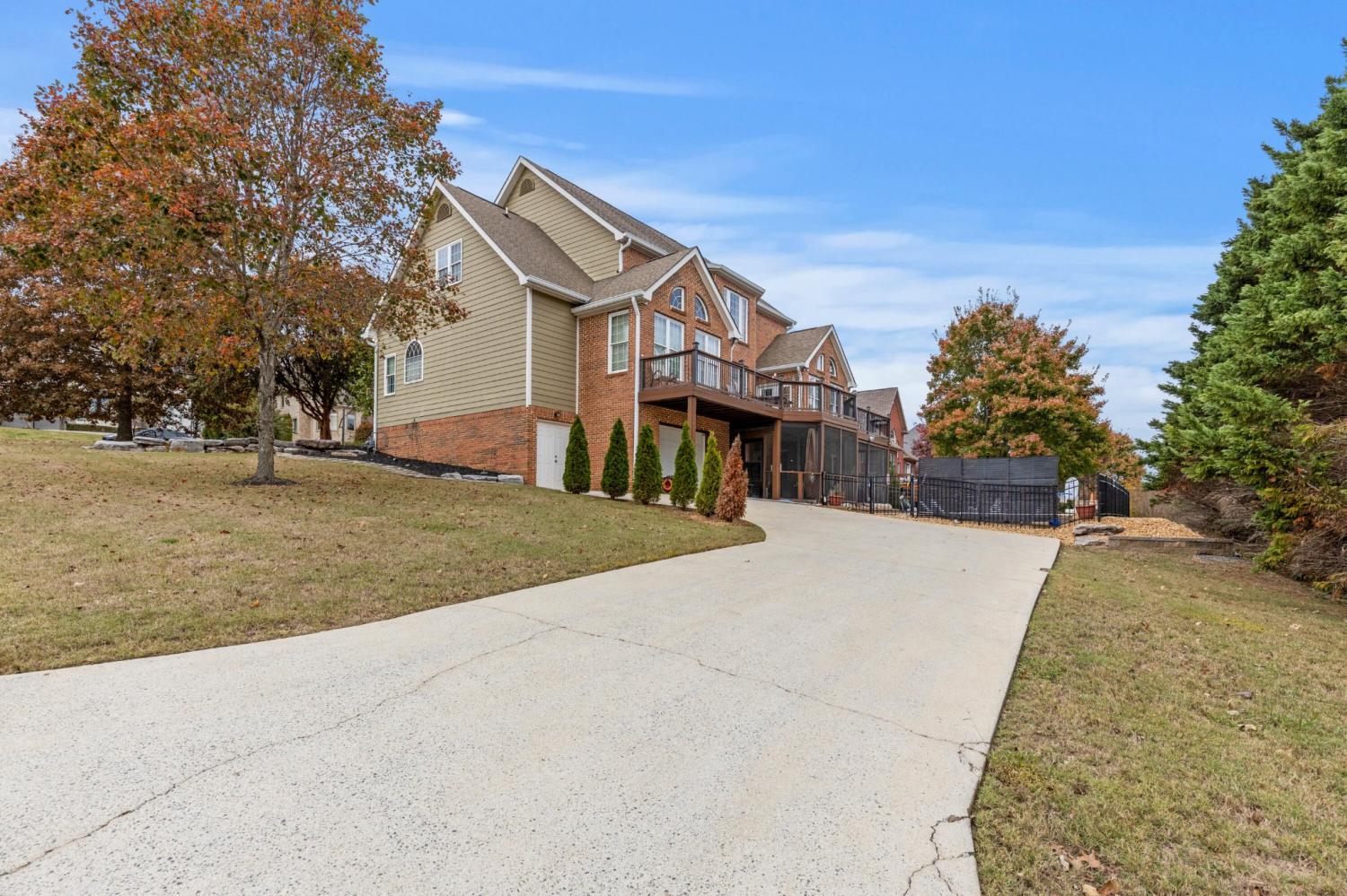Welcome to 7416 Splendid View Drive, an exceptional estate situated on a corner lot in the gated Hampton Creek community. This stunning 7-bedroom, 6.5-bathroom residence showcases refined craftsmanship, resort-style amenities, and the perfect balance of comfort, and luxury. Step inside to a grand living room centered around a stone fireplace, framed by floor-to-ceiling vaulted windows that flood the space with natural light and overlook the backyard and pool. The gourmet kitchen features a large island, double wall ovens, built-in stainless steel appliances, and a bright breakfast nook, while the dining room offers an inviting setting for hosting. The primary suite serves as a private retreat with trayed ceilings, a jetted soaking tub, walk-in shower, seated vanity, and a walk-in closet. Each additional bedroom boasts its own private bathroom for ultimate comfort and convenience. Entertainment and relaxation come easy with two media rooms, both equipped with projectors and screens—one enhanced by its own stone fireplace—as well as a second living area. The basement-level screened porch overlooks the in-ground pool, which is less than 3 years old, providing a cool and shaded escape during warmer months. Outside, the fenced-in pool deck features an elevated sunning area inside the pool, while the main-level deck offers ample space for outdoor dining. An upstairs bedroom balcony provides a peaceful private vantage point for enjoying the surrounding views. Additional highlights include two laundry rooms, a fully equipped basement kitchen with double refrigerators and stainless steel appliances, and multiple garages - including a heated garage - plus a spacious storage shed. Located within Hampton Creek, residents enjoy access to the Ooltewah Club, featuring a grill restaurant and an 18-hole golf course. 7416 Splendid View Drive offers a rare combination of space, style, and sophistication. Schedule your viewing today!
