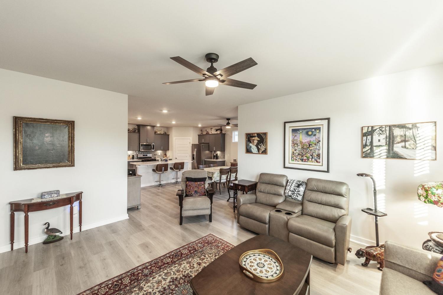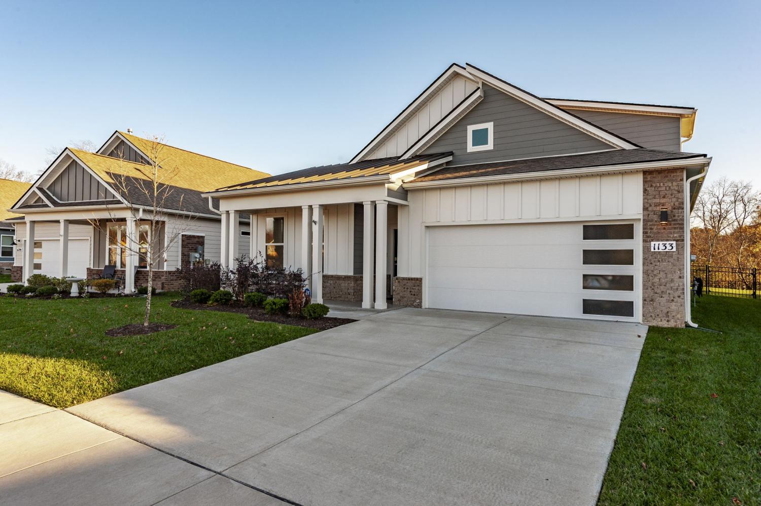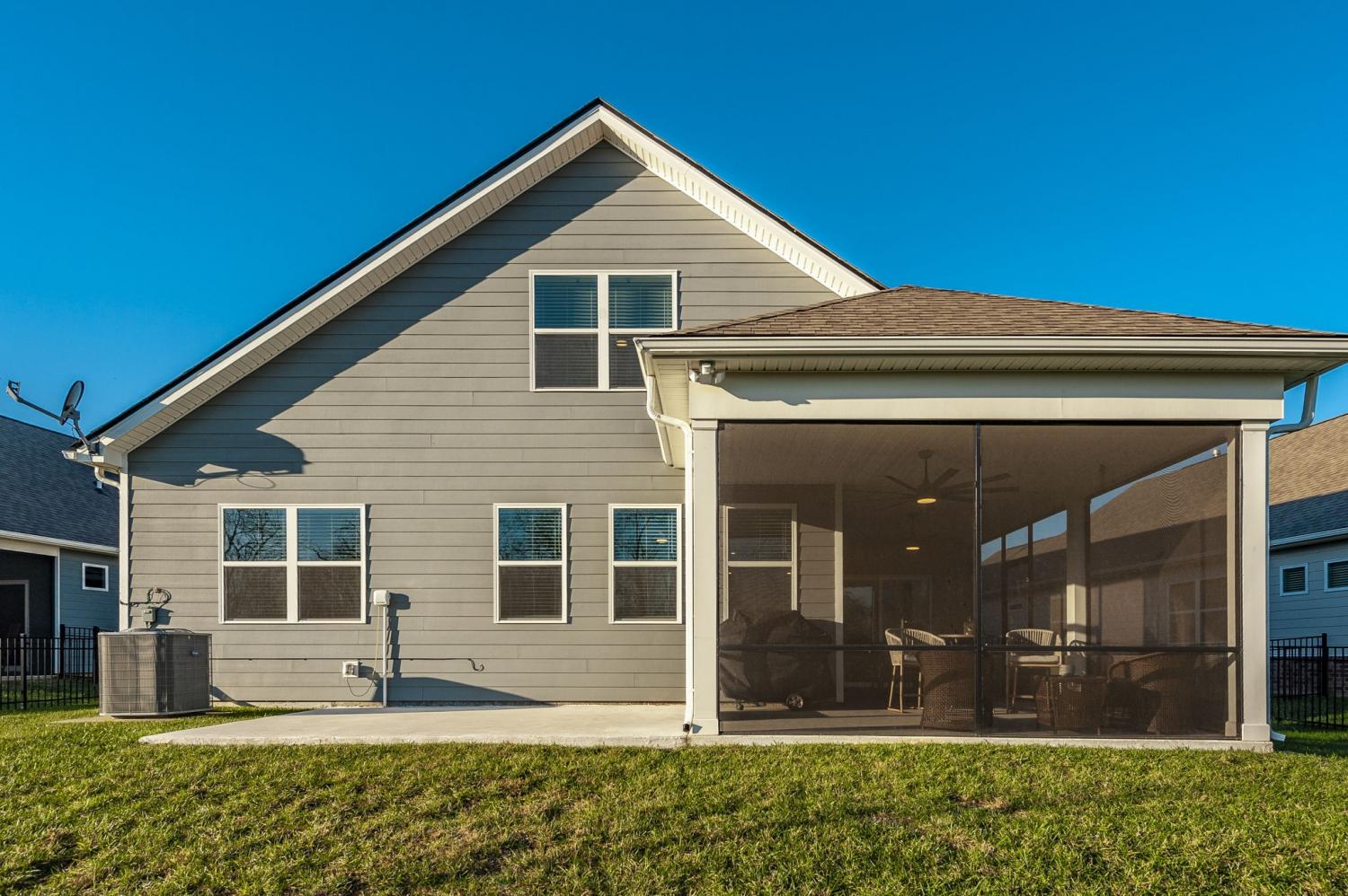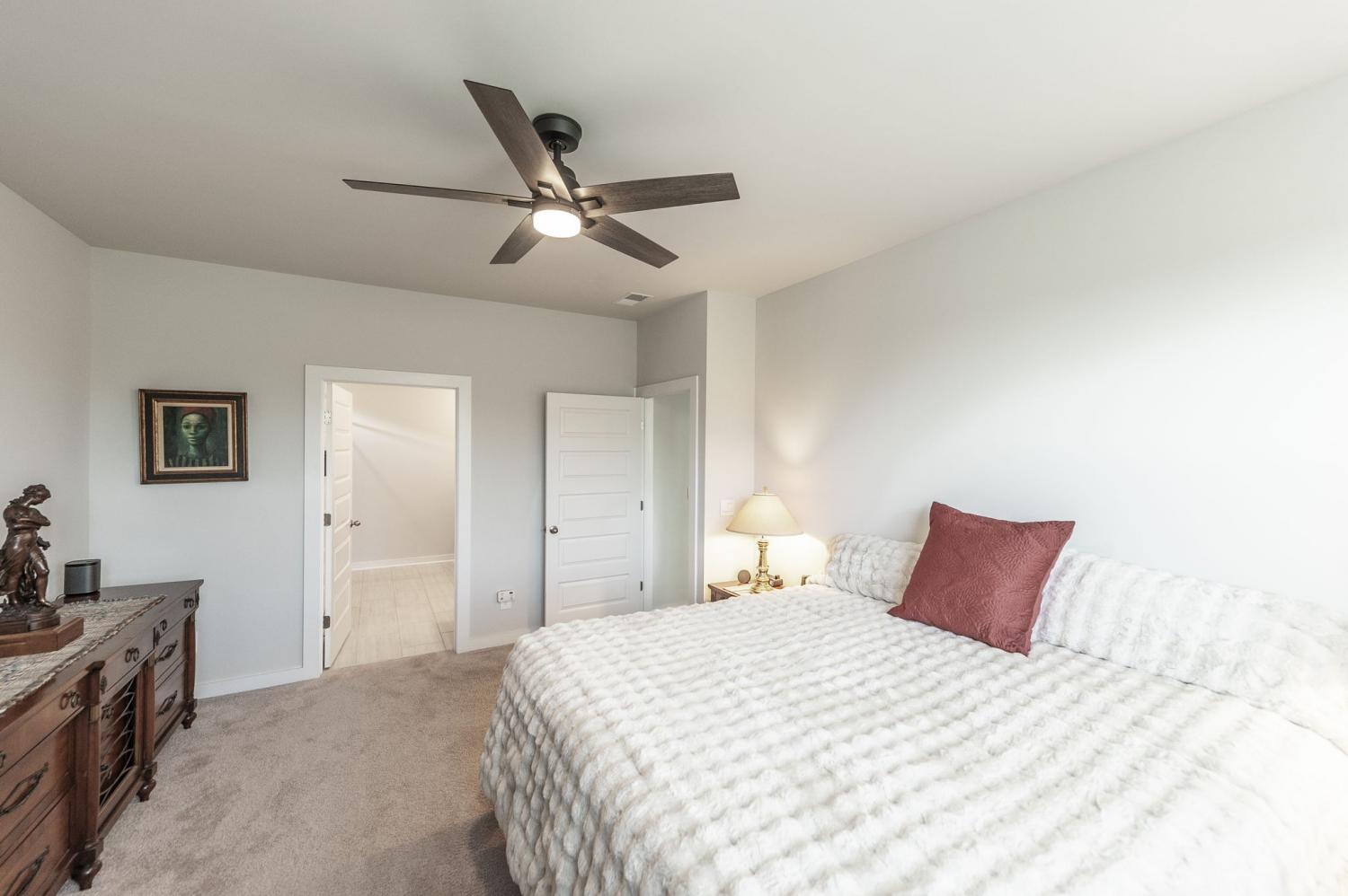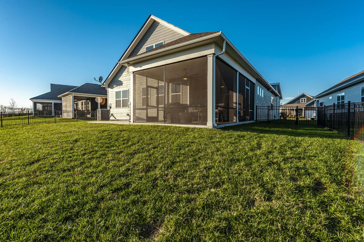 Welcome to this Like-New Home in Sought-After 55+ Gated Community – Nexus South, offering a maintenance-free lifestyle and incredible amenities! Featuring an open floor plan, this home offers 4 bedrooms on the main level plus an upstairs bedroom, full bath, and spacious bonus room! LVP flooring throughout the main living areas and the bright, natural light fills the space through large windows. The kitchen boasts quartz countertops, a large island, tile backsplash, gas range, and a generous pantry. The primary suite features double vanities and an upgraded tile walk-in shower! Enjoy peaceful mornings and evenings on your covered and screened-in patio with extended outdoor space, overlooking a creek and tree-lined backyard. The fenced yard includes a gate with direct access to the community walking trails. The garage features epoxy floors and built-in shelving, while extra closets throughout the home provide abundant storage. Nexus South offers resort-style amenities, including walking trails, pickleball and tennis courts, a zero-entry pool, fitness studio, and clubhouse—all with lawn irrigation and mowing included. Don’t miss the chance to enjoy comfort, convenience, and community all in one place!