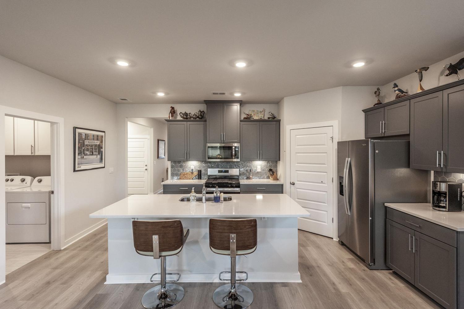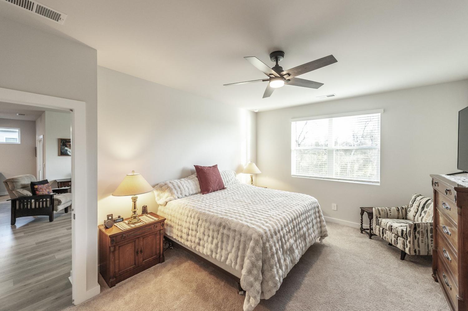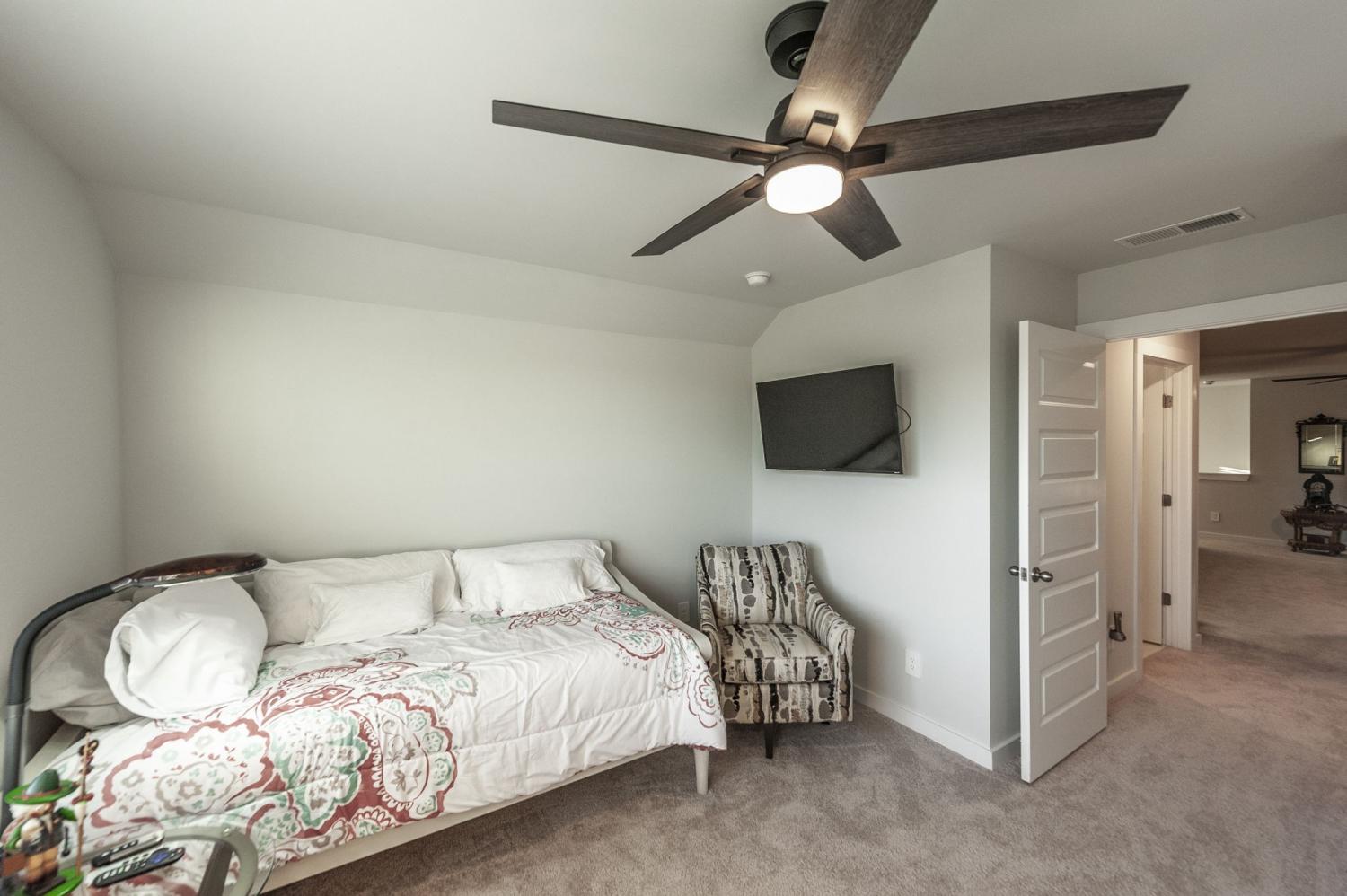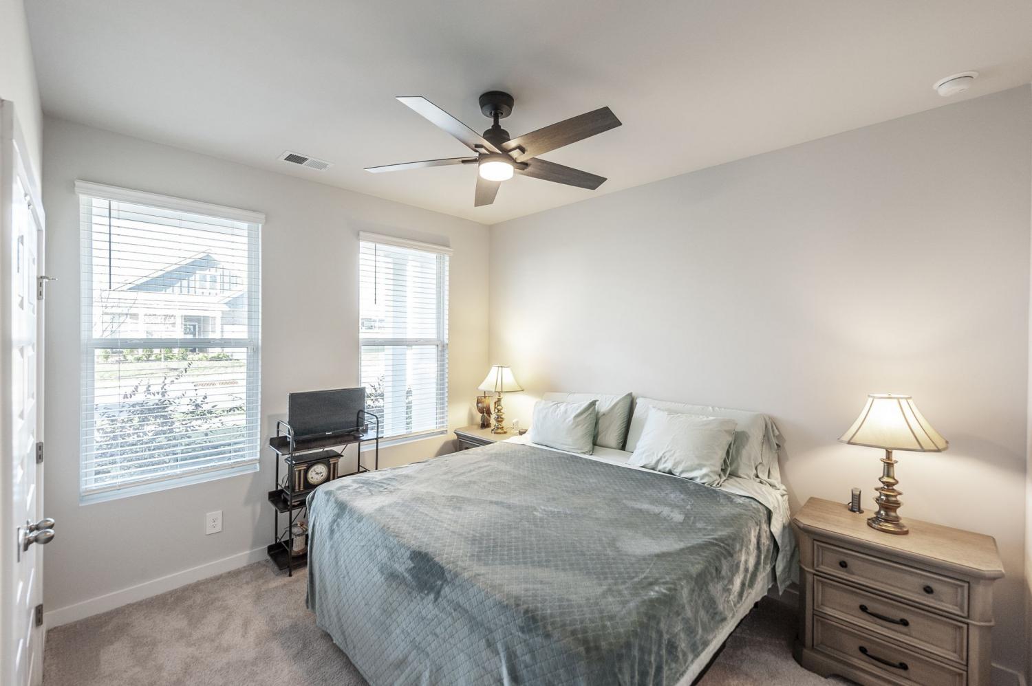 Welcome to this Like-New Home in Sought-After 55+ Gated Community – Nexus South, offering a maintenance-free lifestyle and incredible amenities! Featuring an open floor plan, this home offers 4 bedrooms on the main level plus an upstairs bedroom, full bath, and spacious bonus room! LVP flooring throughout the main living areas and the bright, natural light fills the space through large windows. The kitchen boasts quartz countertops, a large island, tile backsplash, gas range, and a generous pantry. The primary suite features double vanities and an upgraded tile walk-in shower! Enjoy peaceful mornings and evenings on your covered and screened-in patio with extended outdoor space, overlooking a creek and tree-lined backyard. The fenced yard includes a gate with direct access to the community walking trails. The garage features epoxy floors and built-in shelving, while extra closets throughout the home provide abundant storage. Nexus South offers resort-style amenities, including walking trails, pickleball and tennis courts, a zero-entry pool, fitness studio, and clubhouse—all with lawn irrigation and mowing included. Don’t miss the chance to enjoy comfort, convenience, and community all in one place!