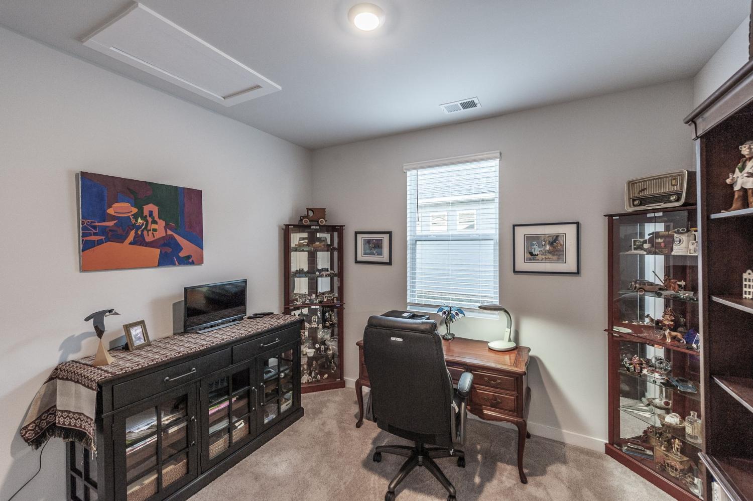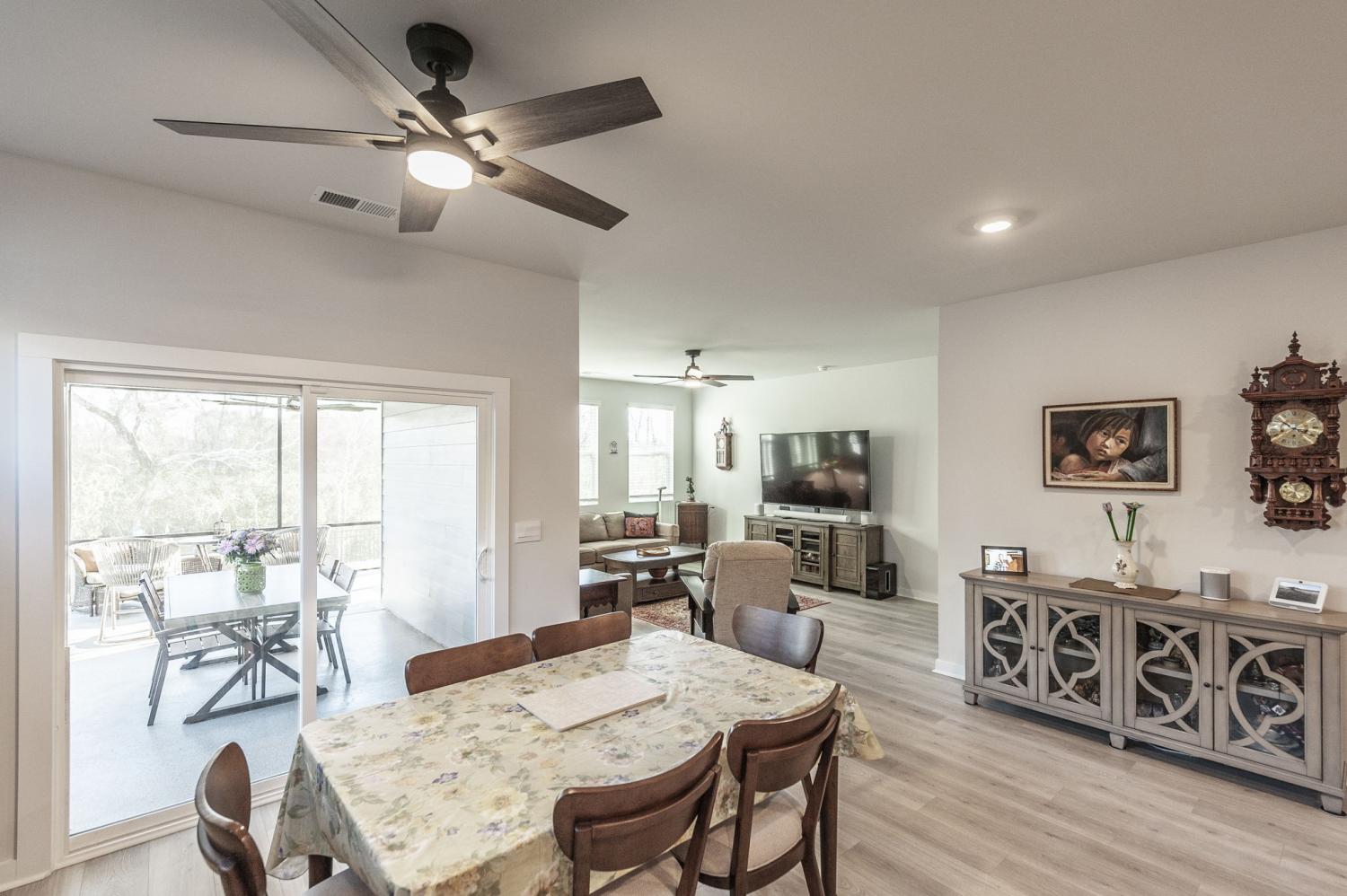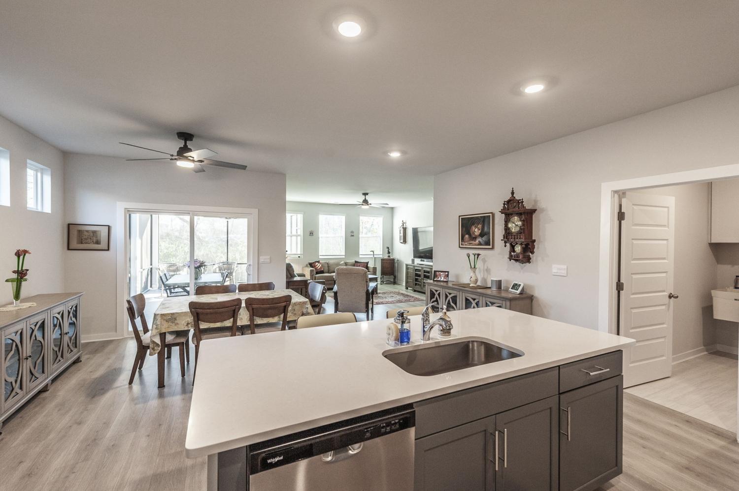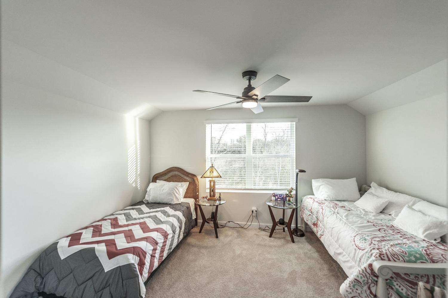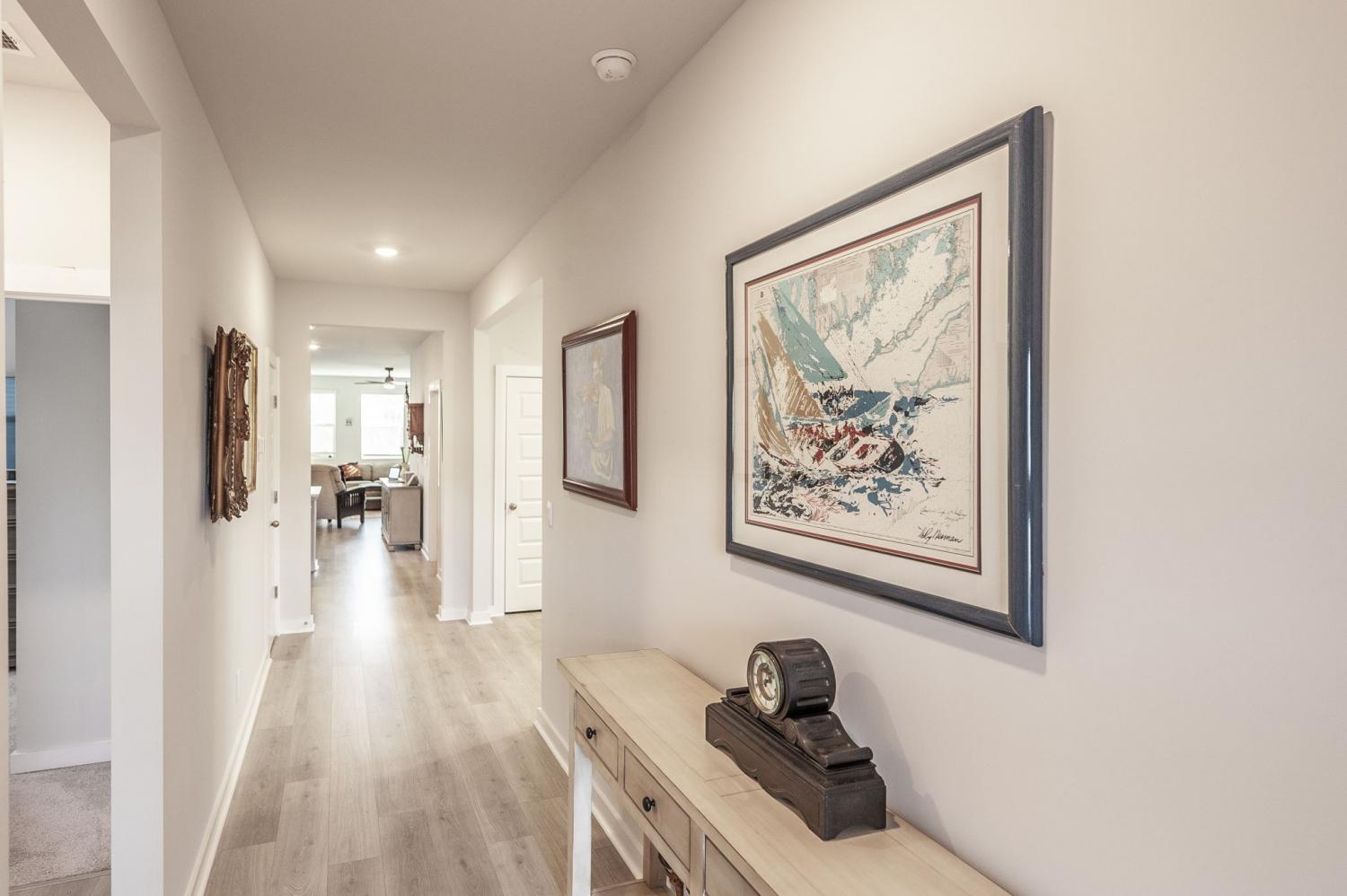 Welcome to this Like-New Home in Sought-After 55+ Gated Community – Nexus South, offering a maintenance-free lifestyle and incredible amenities! Featuring an open floor plan, this home offers 4 bedrooms on the main level plus an upstairs bedroom, full bath, and spacious bonus room! LVP flooring throughout the main living areas and the bright, natural light fills the space through large windows. The kitchen boasts quartz countertops, a large island, tile backsplash, gas range, and a generous pantry. The primary suite features double vanities and an upgraded tile walk-in shower! Enjoy peaceful mornings and evenings on your covered and screened-in patio with extended outdoor space, overlooking a creek and tree-lined backyard. The fenced yard includes a gate with direct access to the community walking trails. The garage features epoxy floors and built-in shelving, while extra closets throughout the home provide abundant storage. Nexus South offers resort-style amenities, including walking trails, pickleball and tennis courts, a zero-entry pool, fitness studio, and clubhouse—all with lawn irrigation and mowing included. Don’t miss the chance to enjoy comfort, convenience, and community all in one place!