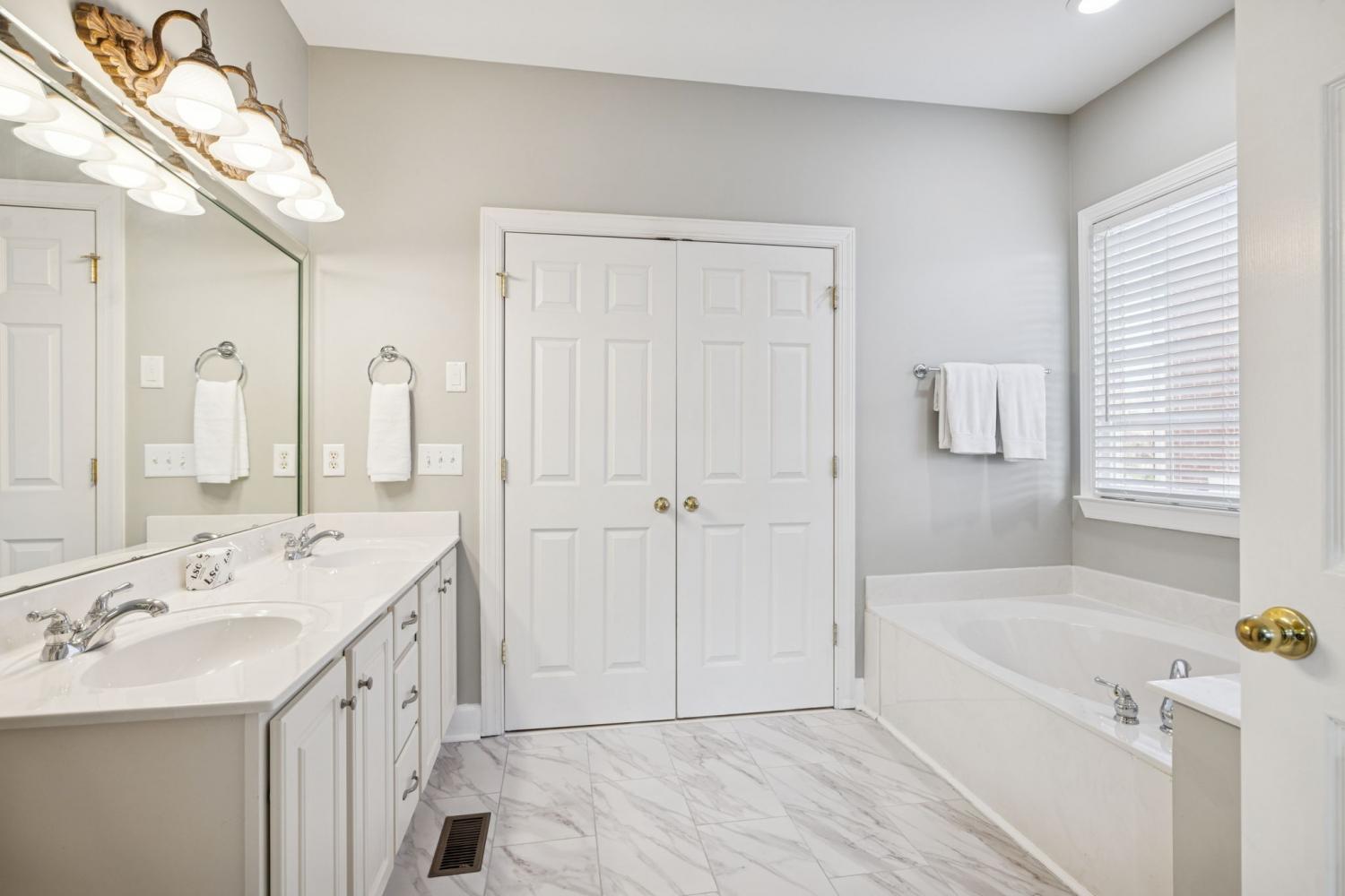 Make this stately brick beauty your home before the holidays! This spacious 5-bedroom, 3.5-bath home offers timeless style, exceptional natural light, and an effortless flow designed for elevated living. Step inside to soaring ceilings and an open, airy floorplan that welcomes you with warm hardwoods, elegant millwork, and expansive windows. The grand two-story living room features a cozy gas fireplace and overlooks the gourmet kitchen—complete with granite countertops, a gas cooktop island, abundant cabinetry, and a sun-filled breakfast area with views of the backyard. The primary suite is conveniently located on the main level, offering vaulted ceilings, generous space, and a serene retreat from the rest of the home. Upstairs, you’ll find four additional bedrooms and two full baths, providing flexibility for family, guests, office space, or hobbies. Outdoor living shines with a fully fenced backyard, mature trees, and both sun and shade—perfect for pets, play, or quiet afternoons at home. A charming brick exterior, spacious two-car garage, and inviting curb appeal complete this picture-perfect property. Located in the established and beloved Sullivan Farms community, known for tree-lined streets, community amenities, and close proximity to Franklin’s shops, restaurants, parks, and top-rated schools. Don't miss out on this rare blend of space, comfort, and timeless design—welcome home!