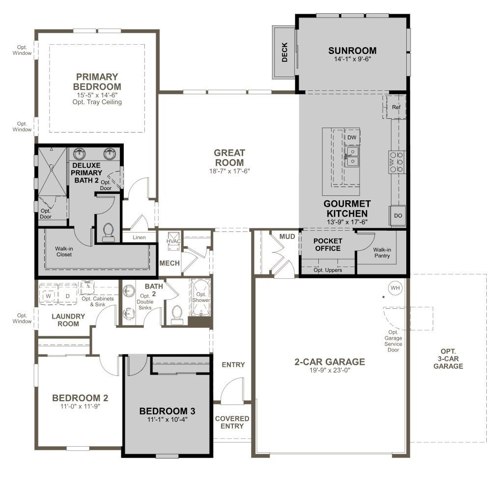 A Rare One-Level Retreat — Just in Time for the Holidays! Decker (38) This season, step into a home that feels like a heartfelt embrace. Decker Lot #38 is a beautifully crafted ranch-style home nestled along a peaceful, private wooded tree line — the perfect backdrop for snowy mornings, twinkling lights, and cherished traditions. From the moment you arrive, the inviting covered entry welcomes you with warmth and charm. Inside, the gourmet kitchen with its center island and walk-in pantry is ready for holiday baking, festive meals, and cozy conversations. The sunroom, filled with natural light, offers a serene space to sip cocoa, read by the window, or watch the snowfall in quiet reflection. The open-concept great room is ideal for gathering with loved ones — imagine a crackling fire, stockings hung with care, and laughter echoing through the space. The spacious primary suite features a large walk-in closet and a deluxe bath with double sinks — your personal retreat after joyful, busy days. Additional highlights include a convenient laundry room, mudroom, and a pocket office — perfect for writing holiday cards or wrapping gifts in peace. Photos are of the actual home and Homesite #38. This is more than a rare one-level home — it’s a place where memories are made, where hearts gather, and where the holidays truly feel like home. Don’t miss out — your story begins here.