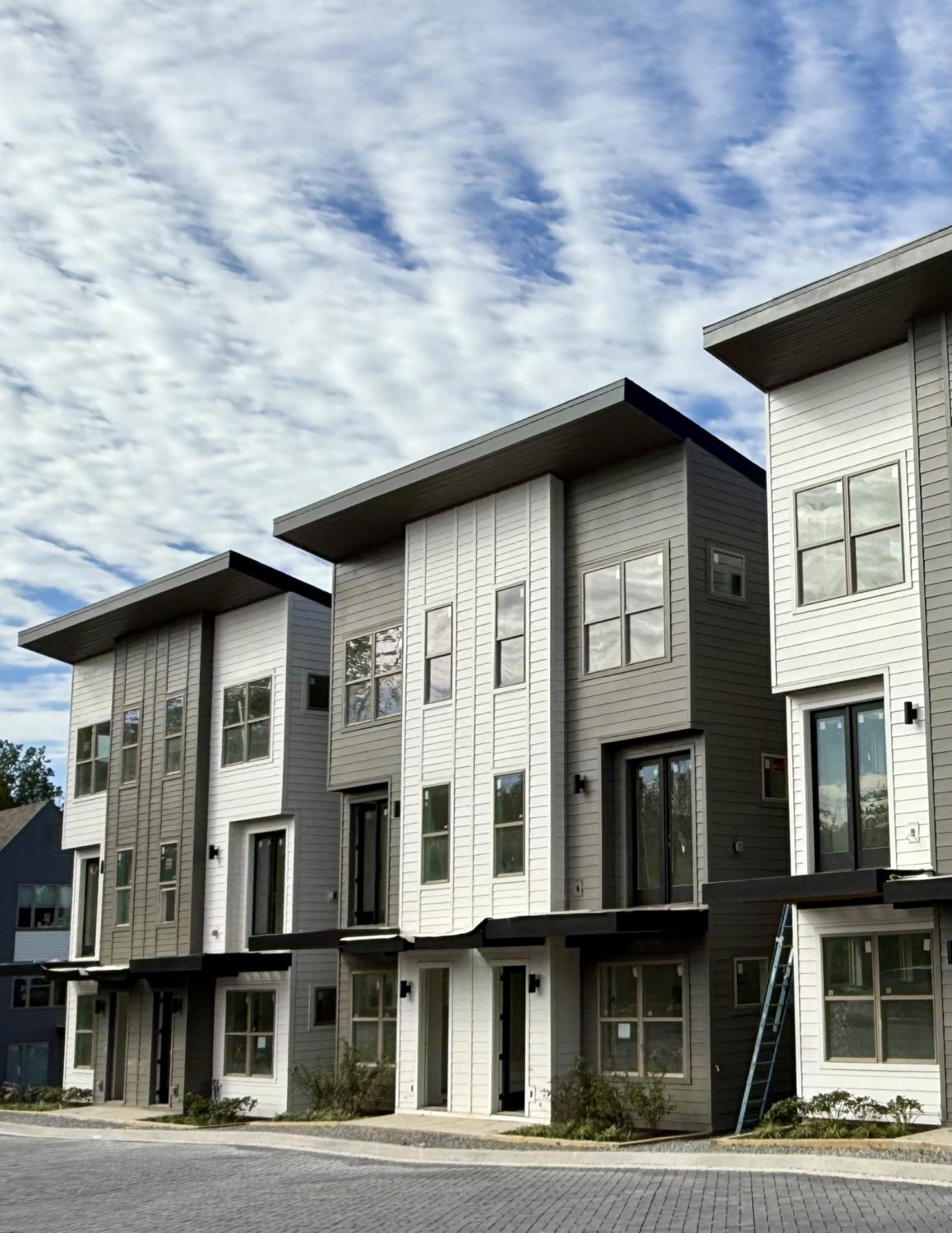 Welcome to the Quads at East End Village - 3 level corner-unit townhomes that don't break the bank. Contemporary exterior with butter-fly roof, vaulted ceilings and generous balcony. Living area with Eat-In kitchen on ground level, A spacious den/flex room with balcony on level 2 and a top floor bedroom suite. East End Village offers a perimeter walking trail, fountain pond, dog park and pool. Health-conscious construction and design avoids toxins in paint and flooring, includes UV protection in windows, noise reduction between unit walls and encapsulated exteriors. . Contact sales team for more info and/or to tour a unit.