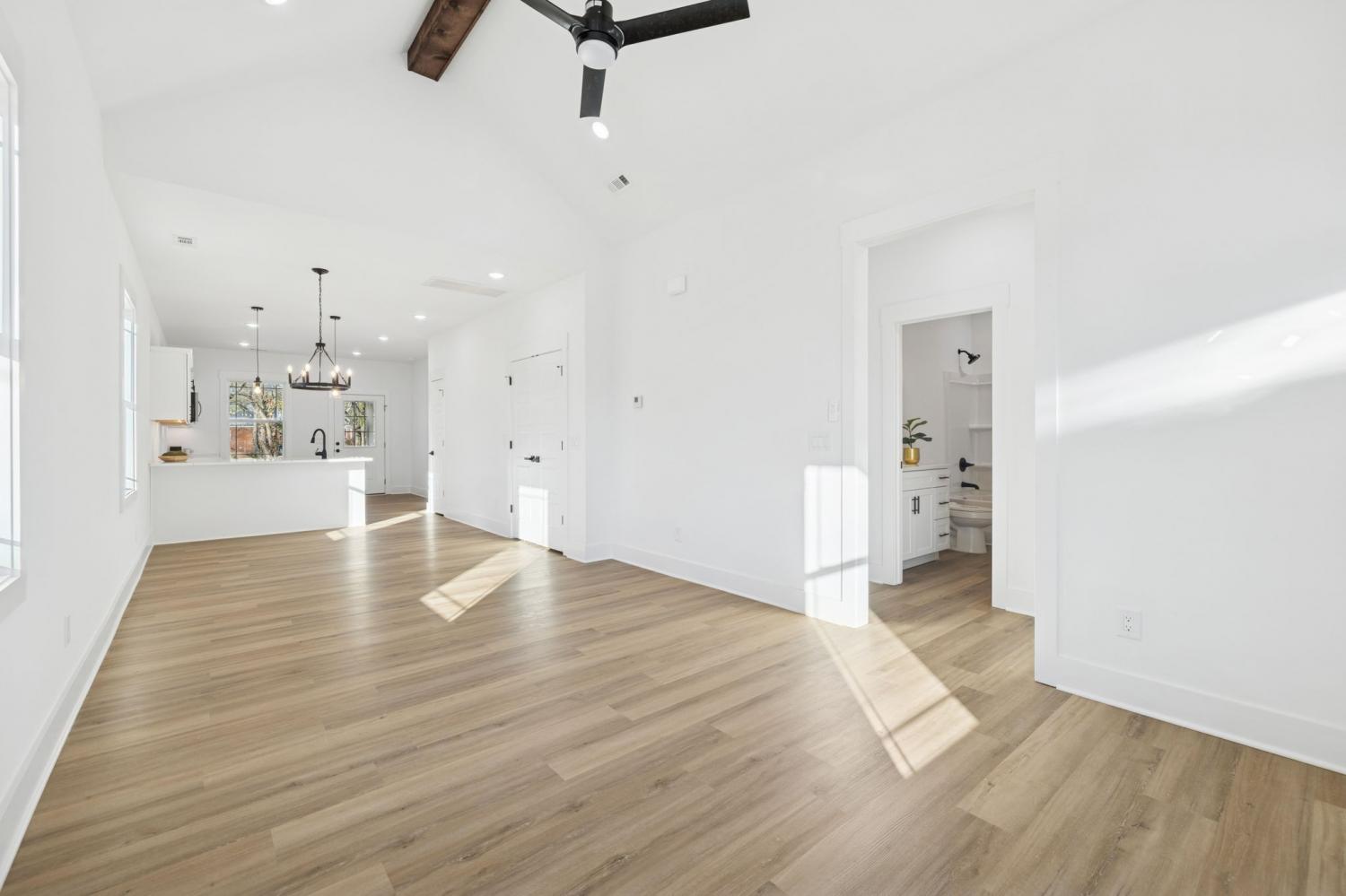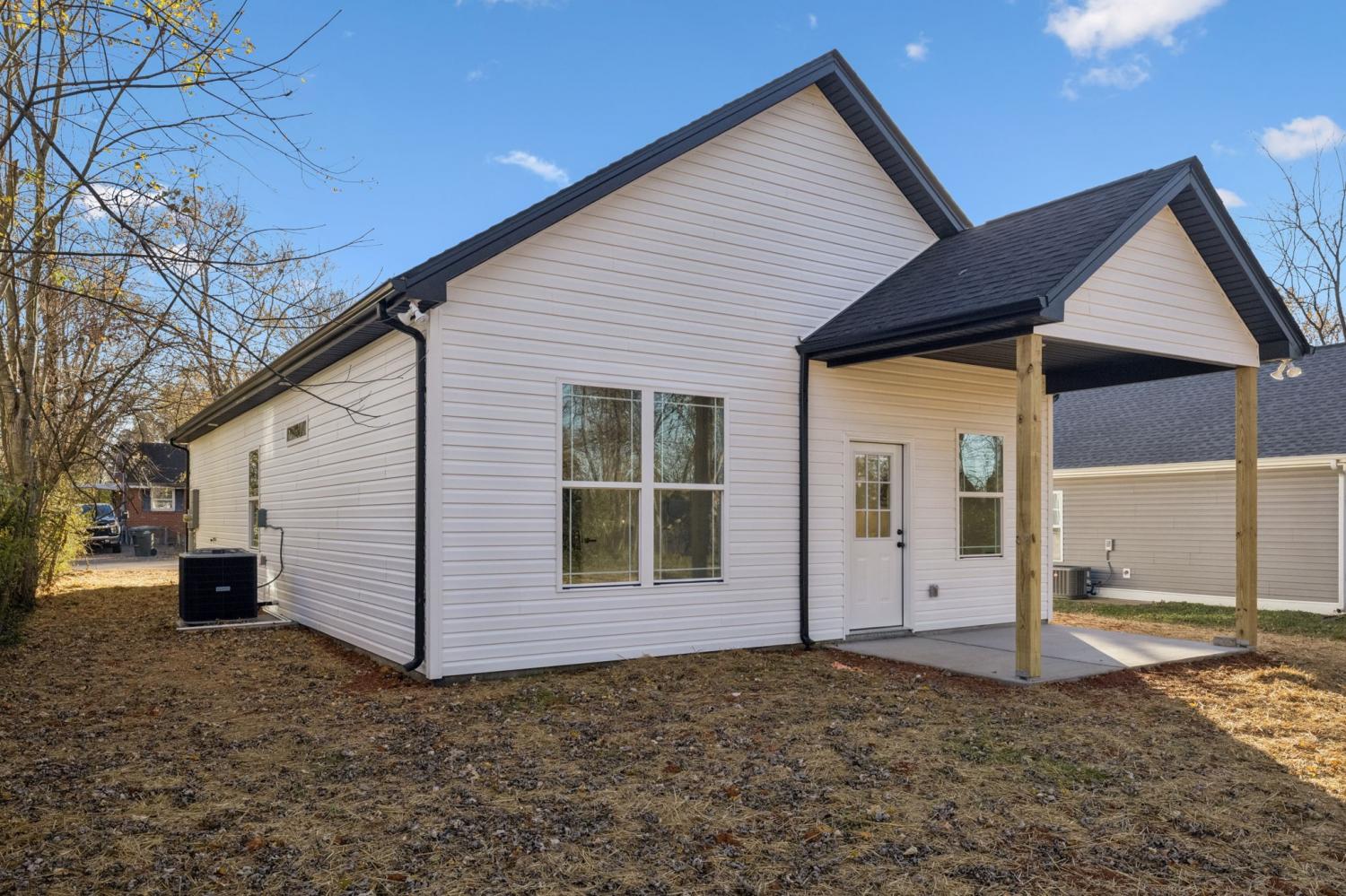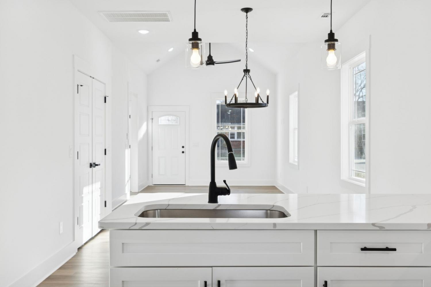 New construction in Springfield with thoughtful finishes and a functional layout. This home offers an open living area filled with natural light, vaulted ceilings with an exposed beam, and a spacious kitchen with white cabinetry, quartz countertops, under cabinet lighting and modern black fixtures. The primary suite features its own vaulted ceiling, a bathroom with quartz counters, gold fixtures, and a tub-shower combo. The guest bath includes matching finishes for a cohesive feel. Enjoy a covered front porch with a beautiful gable detail and a covered back patio overlooking a level, tree-lined backyard. Conveniently located close to schools, parks, and downtown Springfield. Move-in ready!