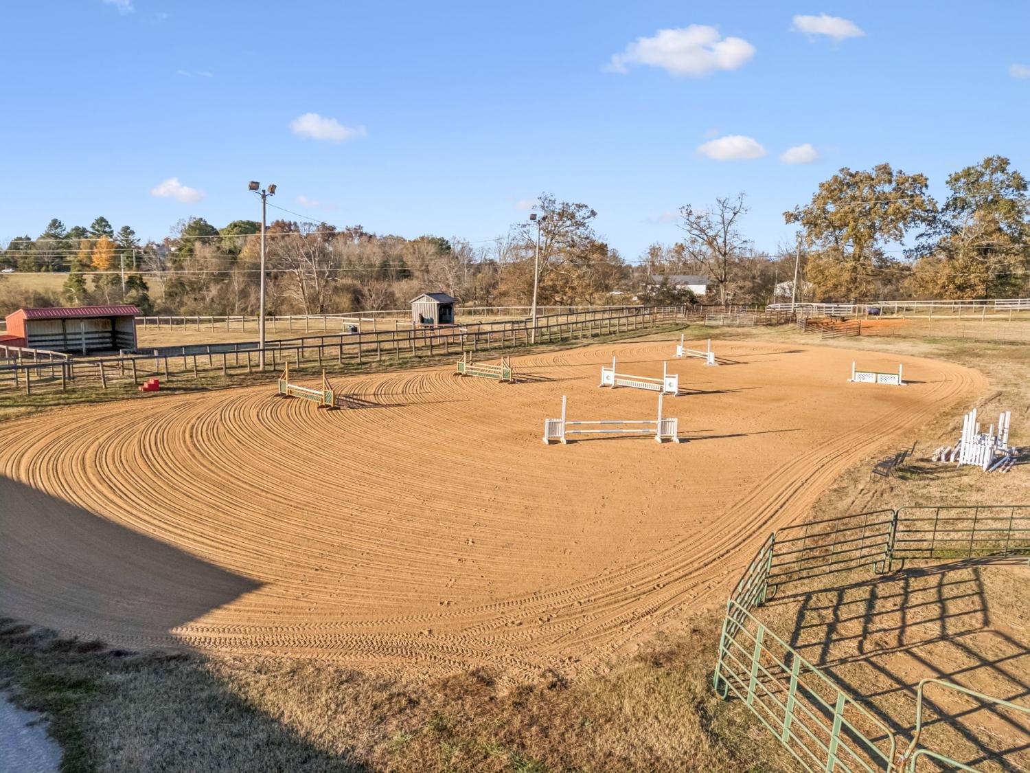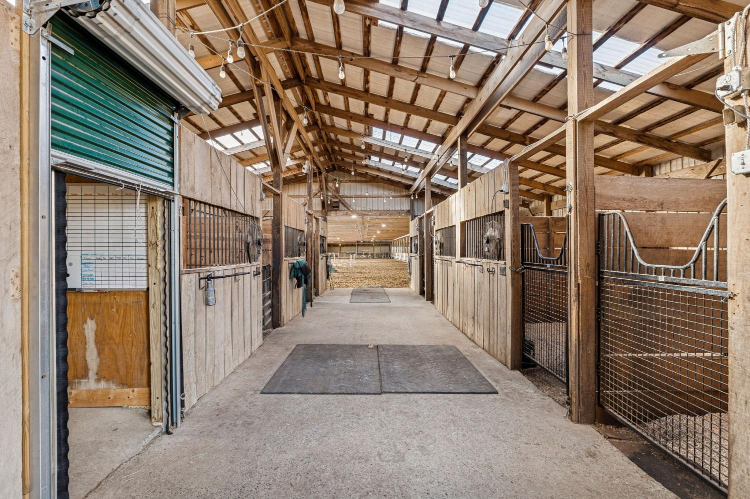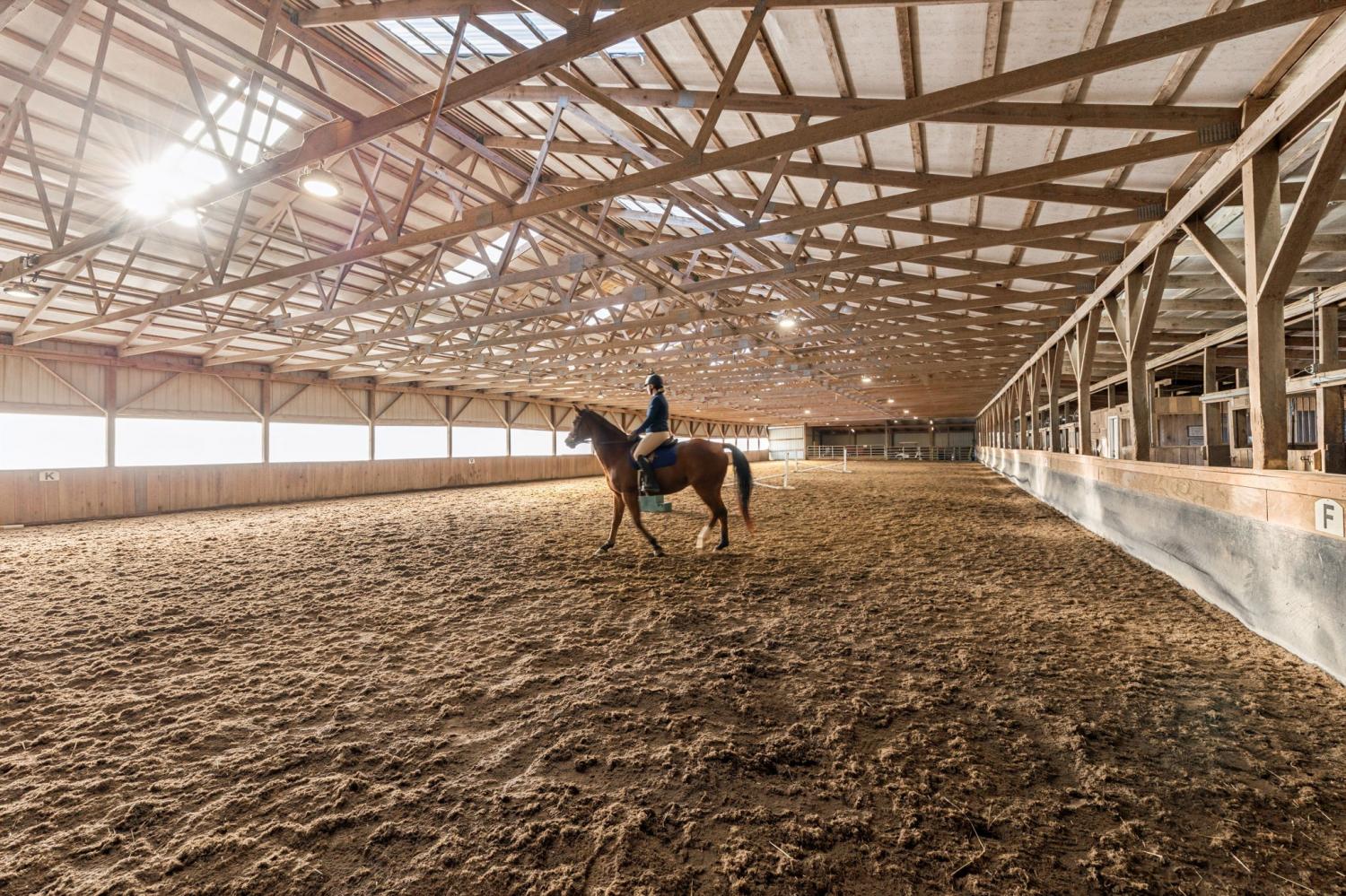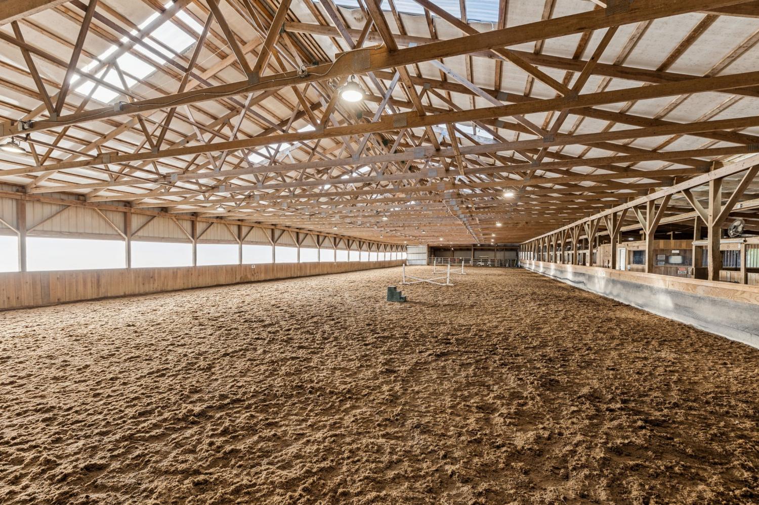 Formerly owned by world champion team roper Chad Masters Family, this premier equestrian property offers outstanding facilities for training, boarding, or private use. The property features 22+ stalls, with room to expand, and a 60' x 180' indoor riding arena equipped with a sprinkler system and Kruze cushioned footing for a comfortable, low-dust environment. Enjoy outdoor riding in the 100' x 200' arena with lighting—currently configured with sand footing and jumps, easily convertible back to a roping setup. There are 10 paddocks and 3 standing paddocks, most with automatic waterers, all fenced and cross-fenced for efficient management. Additional structures include a separate hay and implement barn with run-in areas and trailer storage. The heated wash bay offers both hot and cold water, with an adjacent laundry area for horse gear. An extra-large tack room provides ample space for equipment and boarder storage. Inside the covered arena are two viewing areas—one enclosed with windows, cabinetry, and a refrigerator, and another with a new concrete viewing section. The enclosed space also includes an adjoining office or fitness room. The main home is ready for your personal touches or use as staff or guest accommodations. A wood workshop with heating, air conditioning, and a new full bath could be converted into an apartment. A separate half bath nearby provides easy access for boarders or event participants. This well-designed property is ideal for equine professionals or enthusiasts seeking a turnkey facility that supports year-round operation with comfort and efficiency.