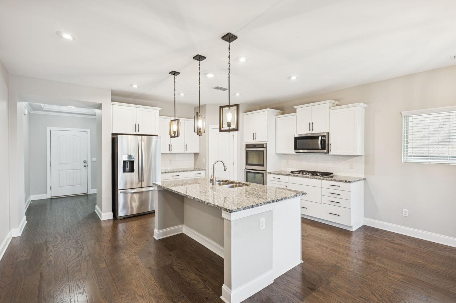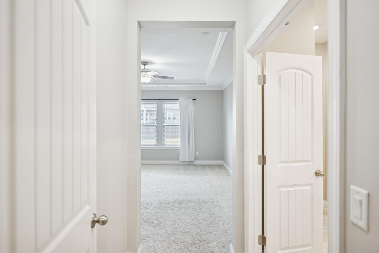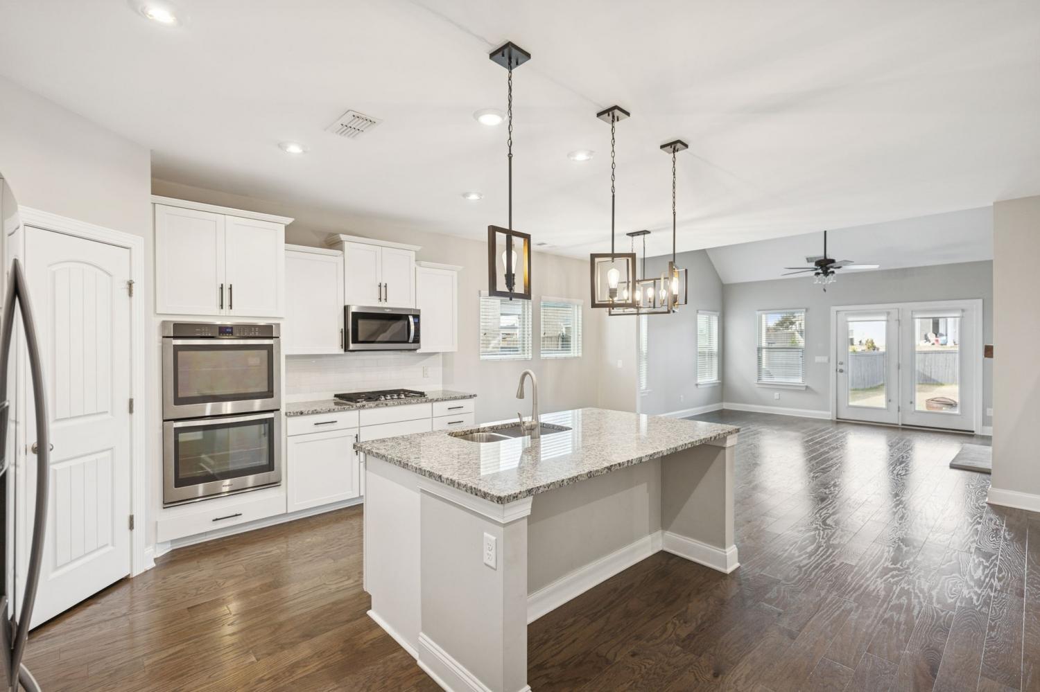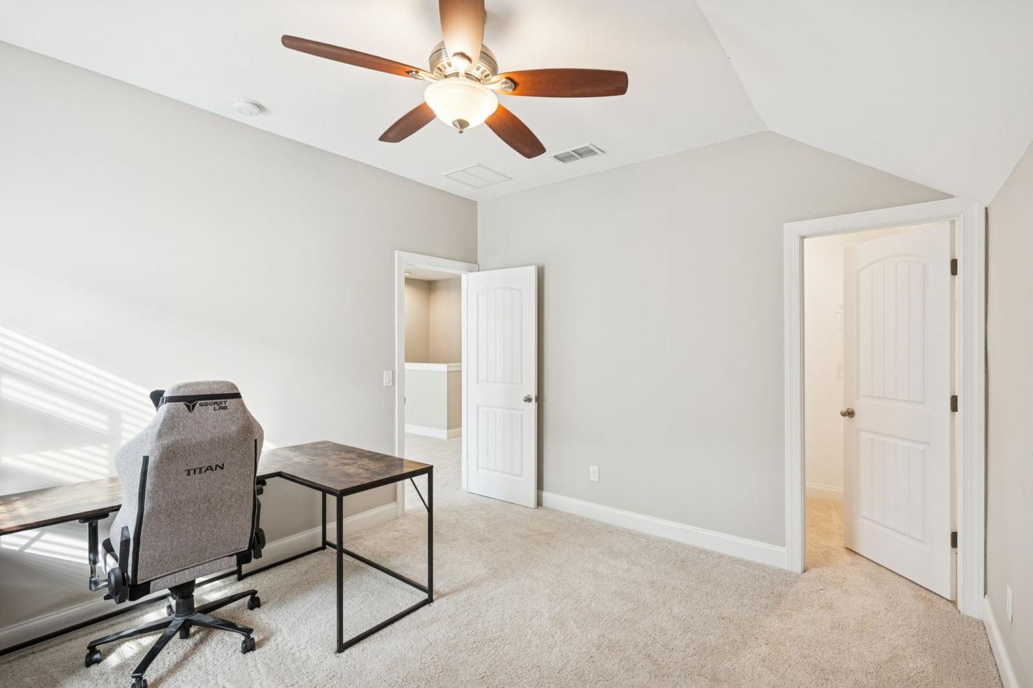 This stunning home offers 4 bedrooms plus a private office, blending luxury design with everyday functionality. The open-concept layout features a spacious kitchen with double ovens, a 5-burner gas cooktop, abundant cabinetry, and a custom-built walk-in pantry enhanced with Closets by Design for exceptional organization. The great room impresses with a cathedral ceiling and an upgraded, floor-to-ceiling custom fireplace that creates a warm and inviting focal point. Additional upgrades include a tankless water heater for endless hot water and energy efficiency. The main-level primary suite provides a peaceful retreat with a luxurious en-suite bath featuring a walk-in shower and a large custom walk-in closet designed by Closets by Design. Upstairs, you’ll find three additional bedrooms plus an open bonus room - perfect for relaxation, entertainment, or a play space. Enjoy outdoor living on the covered back porch overlooking a fully fenced, spacious backyard—perfect for gatherings, play, or quiet evenings at home. Located in a sought-after community offering a pool, playground, and walking trails, this home combines comfort, craftsmanship, and convenience in one beautiful package. $5,000 towards buyers closing costs, buy-down rate, etc. with an acceptable offer!