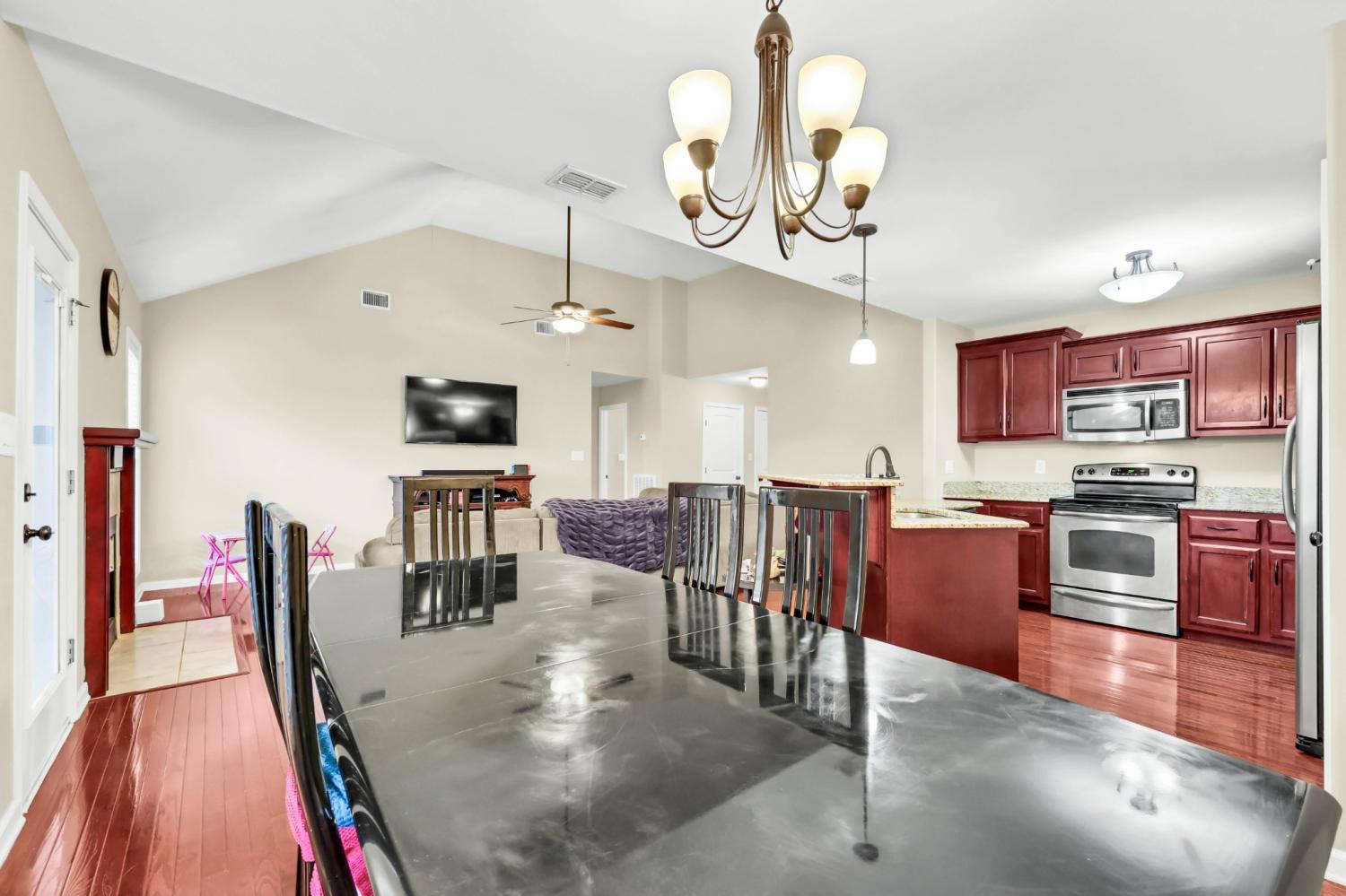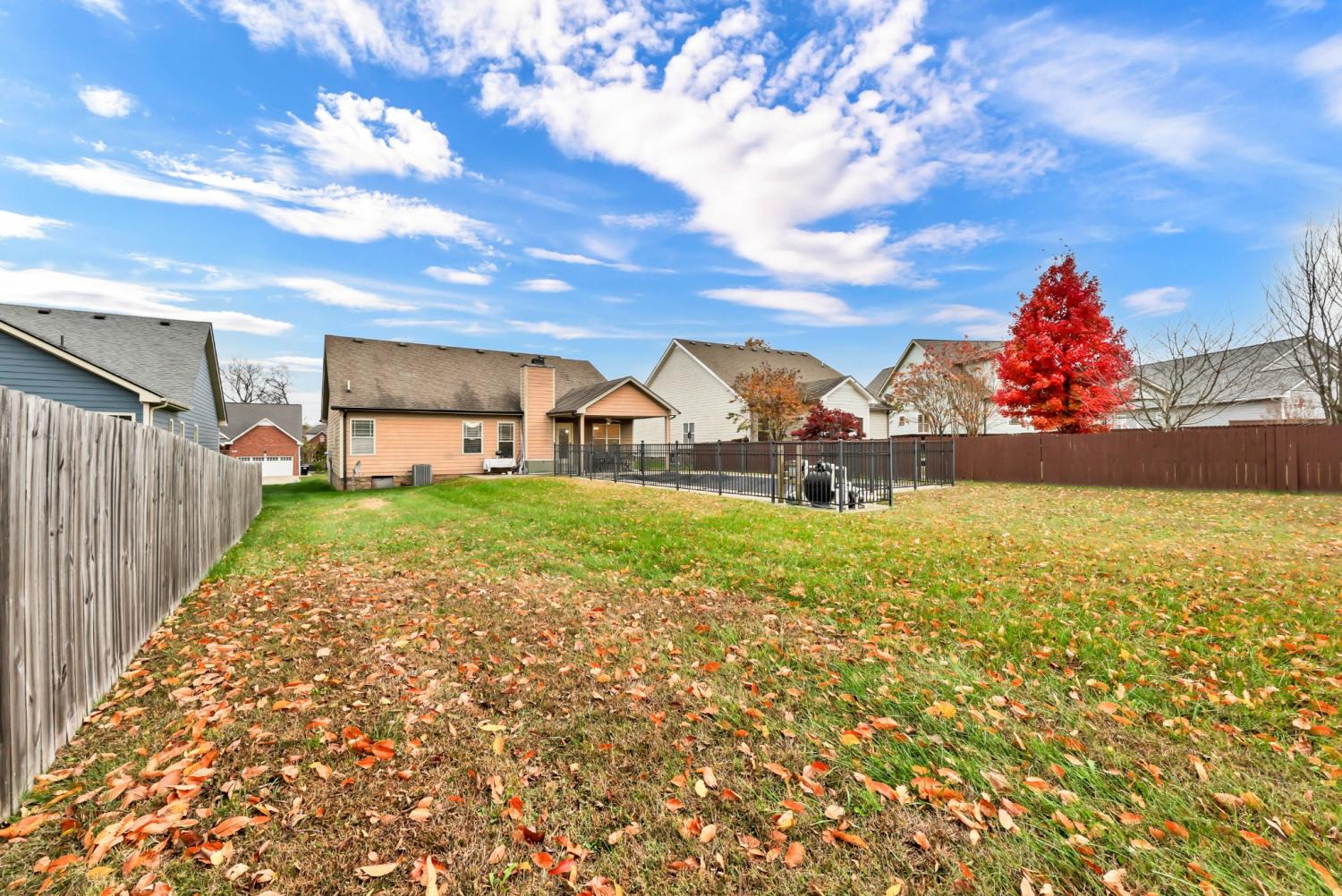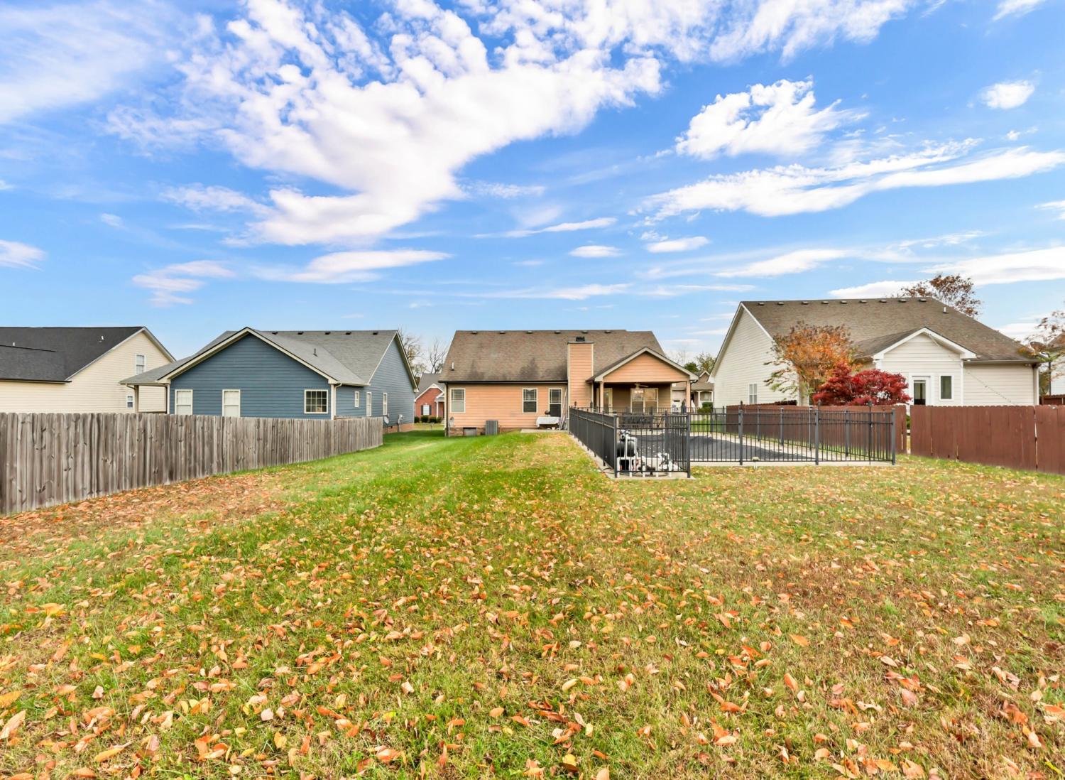 Step into a home that feels instantly inviting, where soaring vaulted ceilings and bright, open spaces set the tone for comfortable living. True hardwood floors flow through the main living areas, adding warmth and timeless style. The kitchen is both beautiful and functional with granite countertops, well-kept cabinetry, and a pantry offering plenty of storage. A dedicated laundry room with built-in cabinets ensures effortless organization. The secondary bedrooms share a smart Jack-and-Jill bathroom layout, while a spacious half bath provides added convenience for guests. The primary suite serves as a private retreat, featuring an octagonal tray ceiling, a luxurious ensuite with a separate tub and shower, expansive double vanities, and a custom-designed closet. Outside, enjoy a large covered patio perfect for relaxing or hosting gatherings, along with an inground pool ready for warm-weather fun. Rossview schools! Recent updates—including a 2-year-old HVAC system and 1-year-old water heater—offer peace of mind and added value.