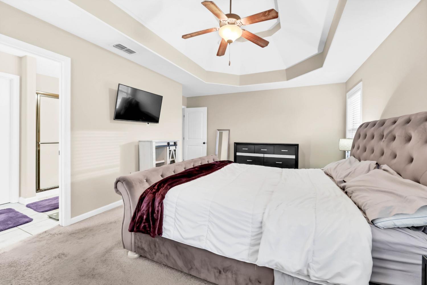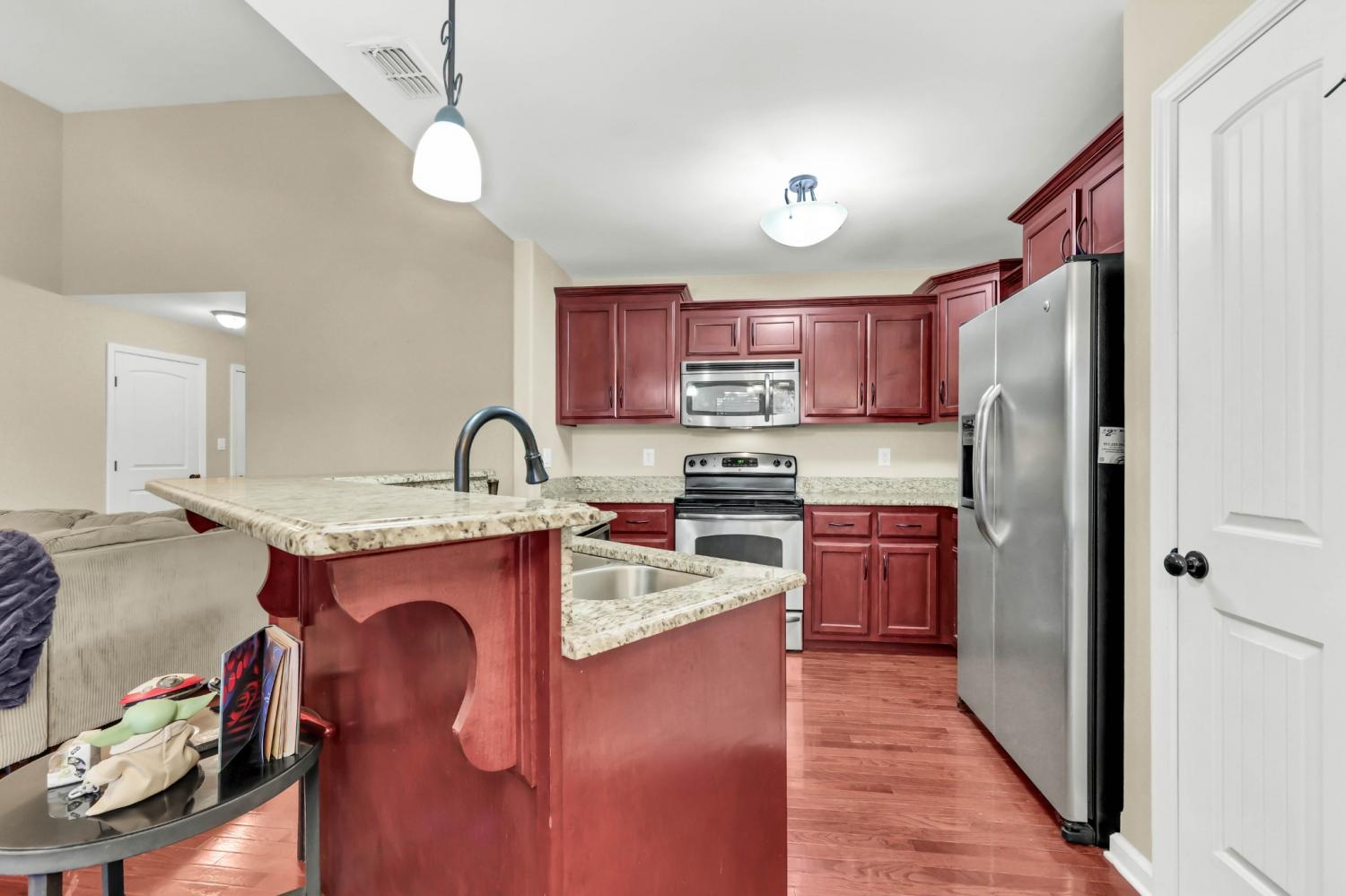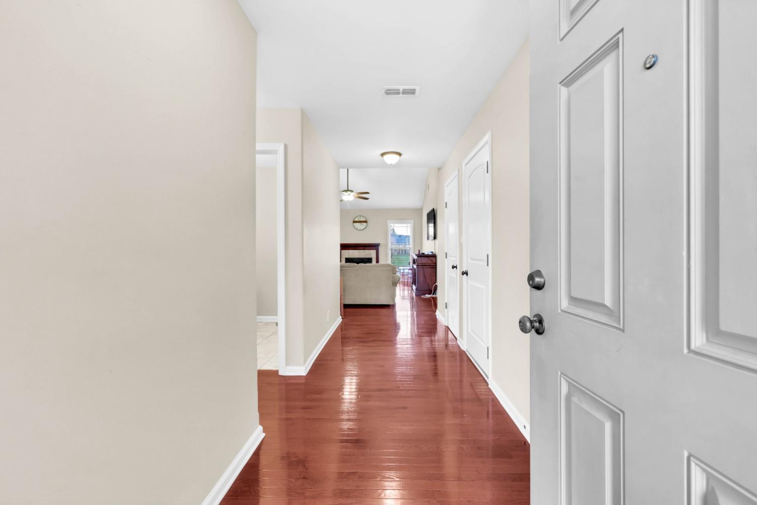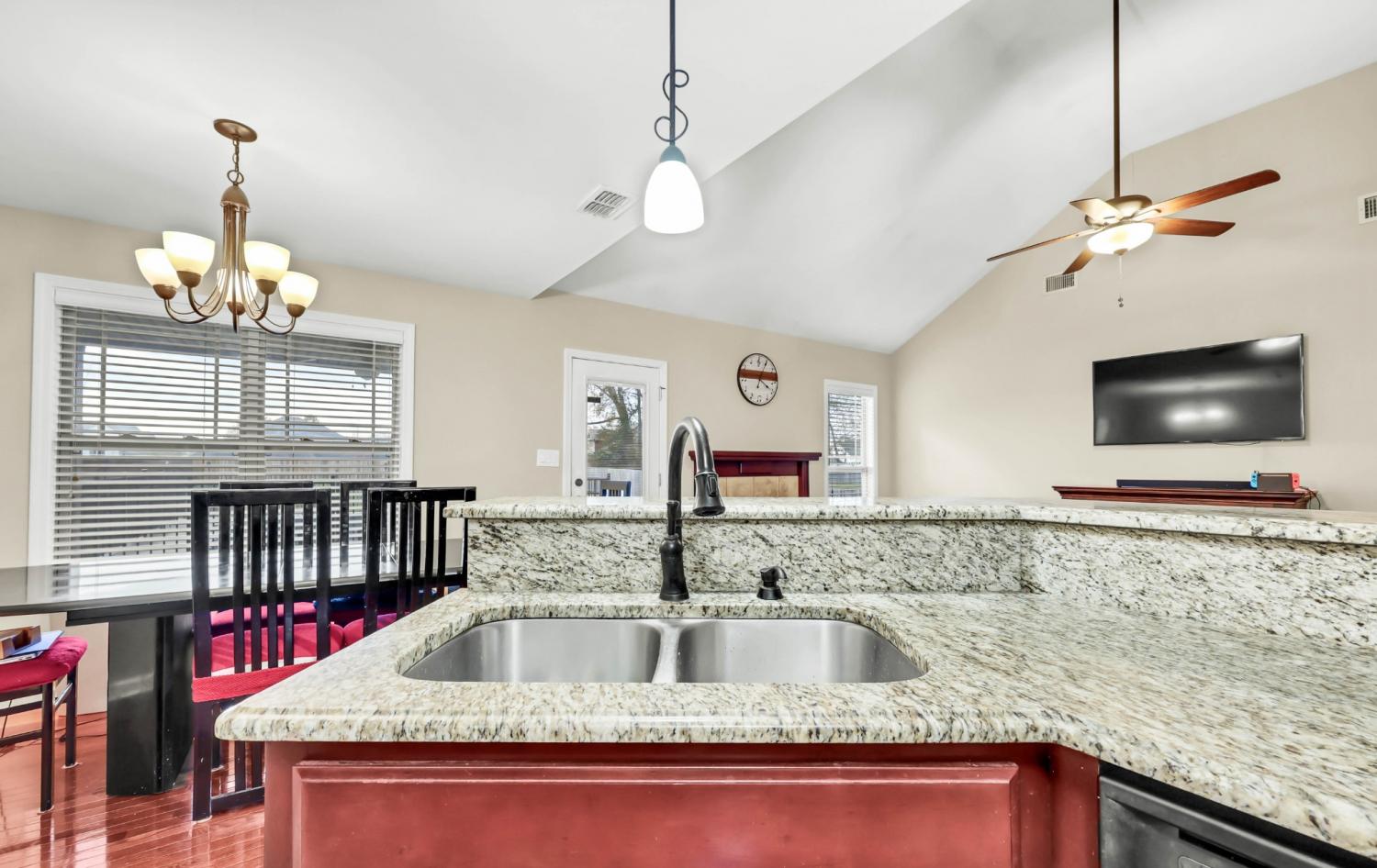 Step into a home that feels instantly inviting, where soaring vaulted ceilings and bright, open spaces set the tone for comfortable living. True hardwood floors flow through the main living areas, adding warmth and timeless style. The kitchen is both beautiful and functional with granite countertops, well-kept cabinetry, and a pantry offering plenty of storage. A dedicated laundry room with built-in cabinets ensures effortless organization. The secondary bedrooms share a smart Jack-and-Jill bathroom layout, while a spacious half bath provides added convenience for guests. The primary suite serves as a private retreat, featuring an octagonal tray ceiling, a luxurious ensuite with a separate tub and shower, expansive double vanities, and a custom-designed closet. Outside, enjoy a large covered patio perfect for relaxing or hosting gatherings, along with an inground pool ready for warm-weather fun. Rossview schools! Recent updates—including a 2-year-old HVAC system and 1-year-old water heater—offer peace of mind and added value.