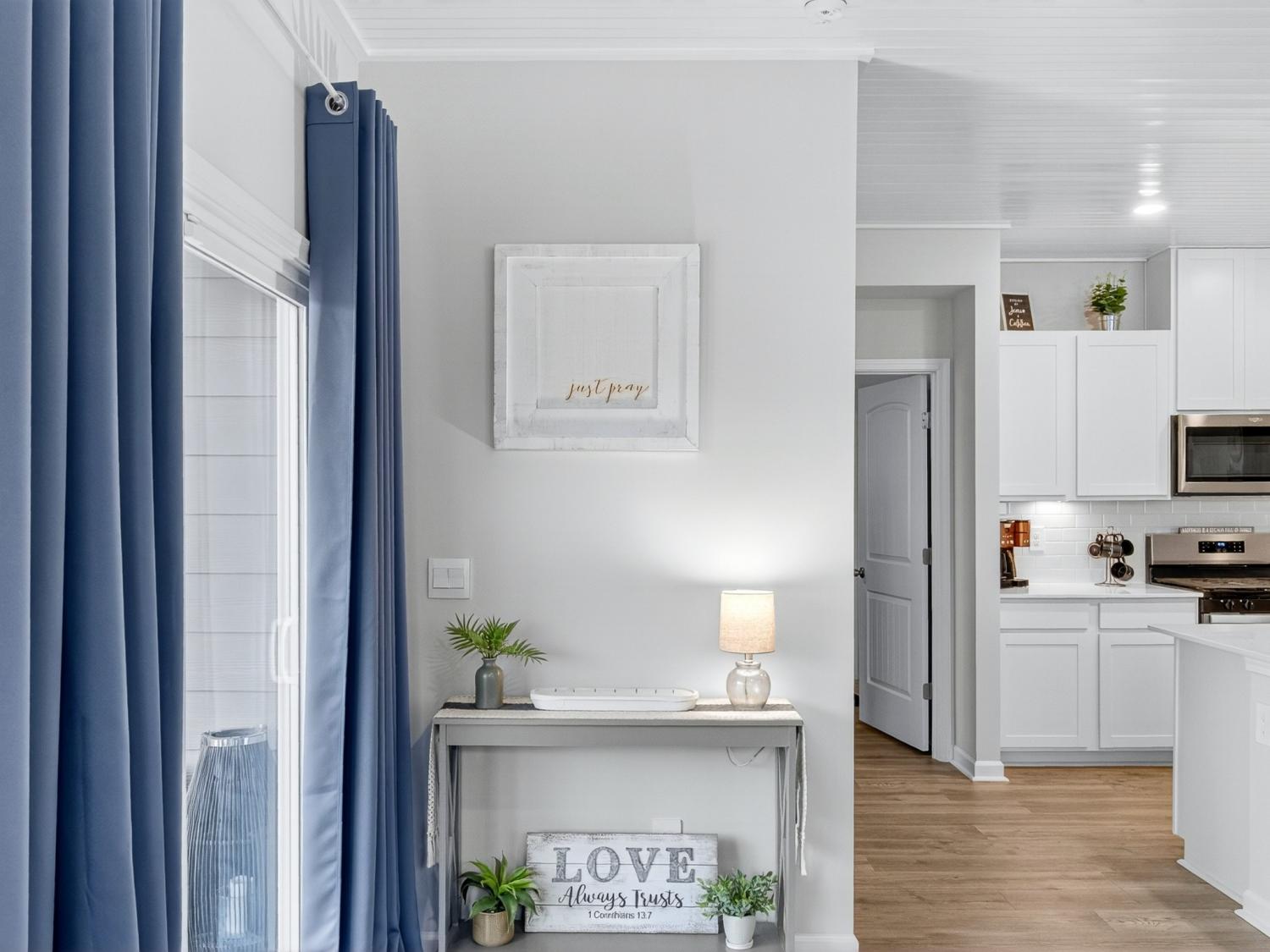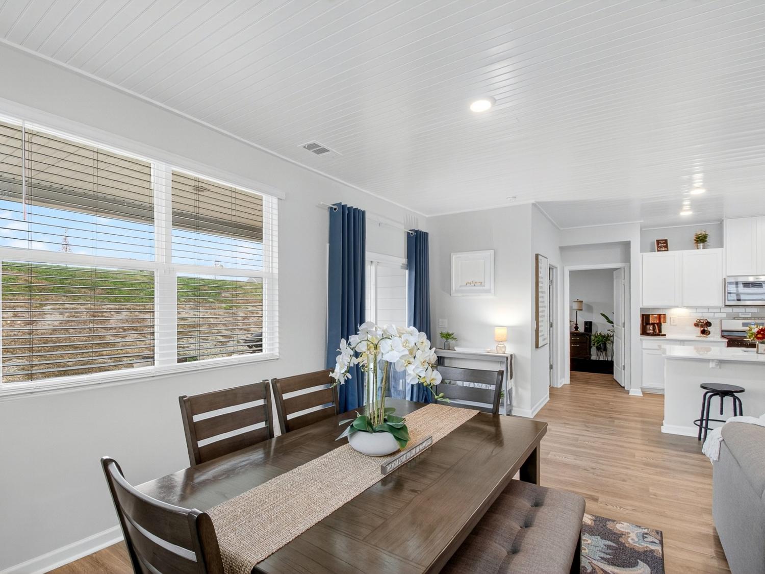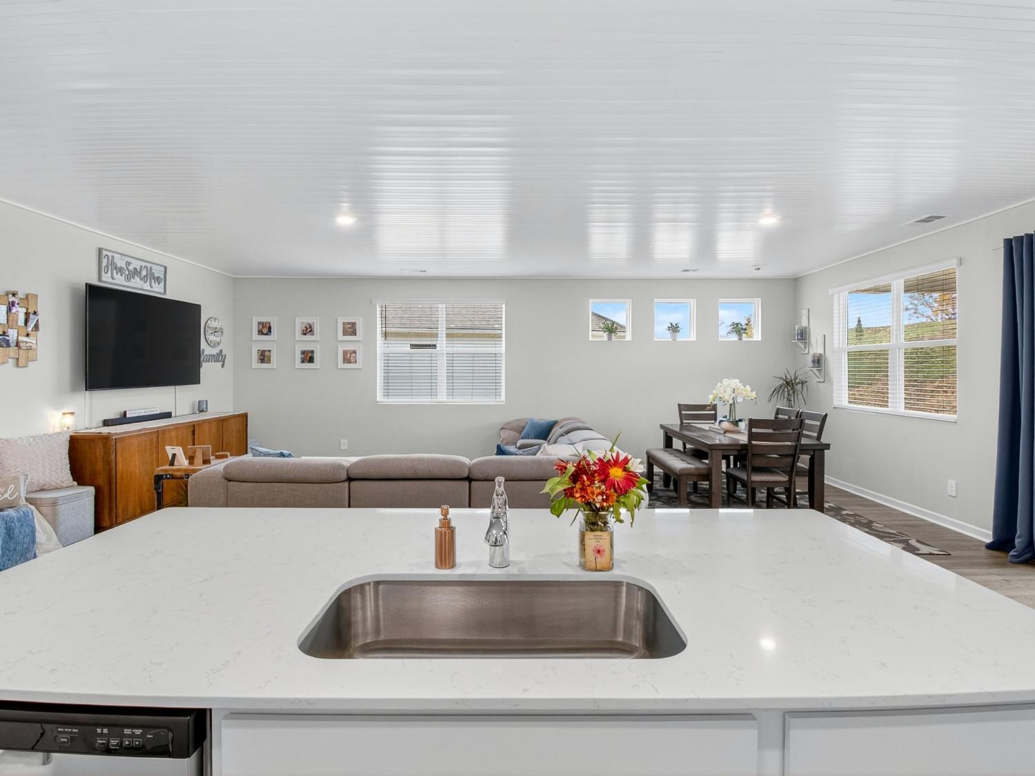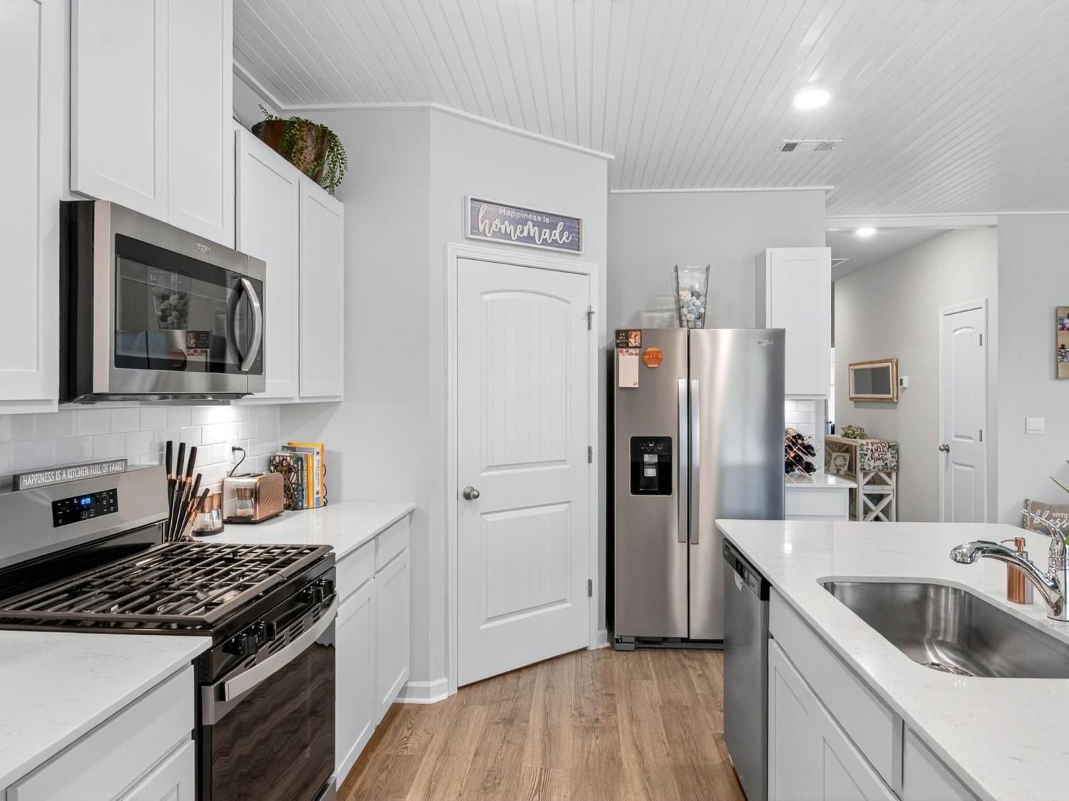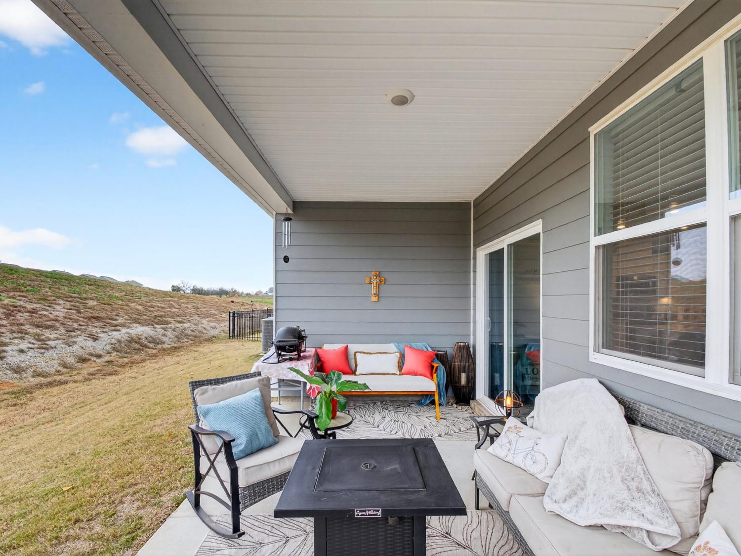 Get up to 1% towards closing with use of preferred lender (ask for details). Welcome to this stunning one-level home offering the perfect blend of modern design and everyday comfort—just 30 minutes north of downtown Nashville and 30 minutes south of the Kentucky boarder. Built in 2024, this residence features 3 bedrooms, 2 full baths, and 1,796 square feet of beautifully crafted living space. Step inside to discover a bright, open-concept floor plan with beautiful wood floors and designer finishes throughout, including a new custom ceiling. The spacious living area flows seamlessly into the kitchen showcasing quartz countertops, stainless steel appliances, and a large center island—ideal for entertaining or enjoying family meals. The owner’s suite provides a private retreat with two walk-in closets and a luxurious en-suite bath complete with modern fixtures and finishes. Two additional bedrooms offer ample space for family, guests, or a home office. Outside on your back patio you can enjoy your privacy with no backyard neighbors. Additional highlights include a 2-car garage, a built-in security system with smart cameras, and window sensors for added peace of mind and convenience. Located in one of White House’s most desirable communities, Legacy Farms, this home combines small-town charm with quick access to shopping, dining, and major highways for an easy Nashville commute. Experience modern maintenance-free living at its best—schedule your private showing today!