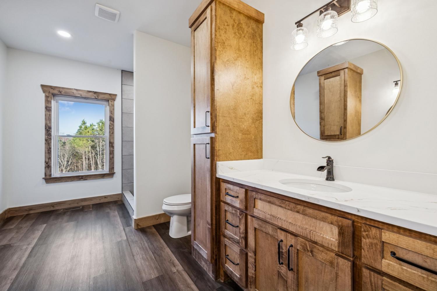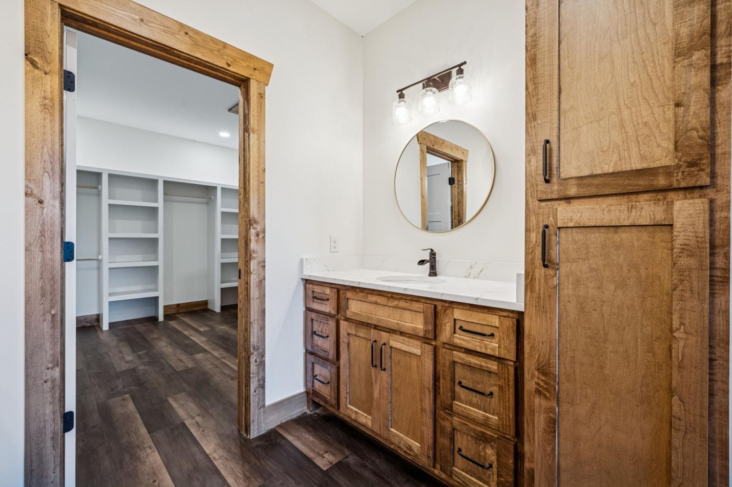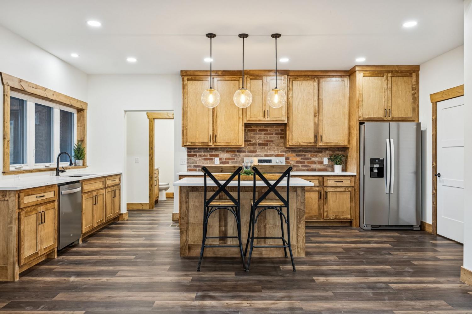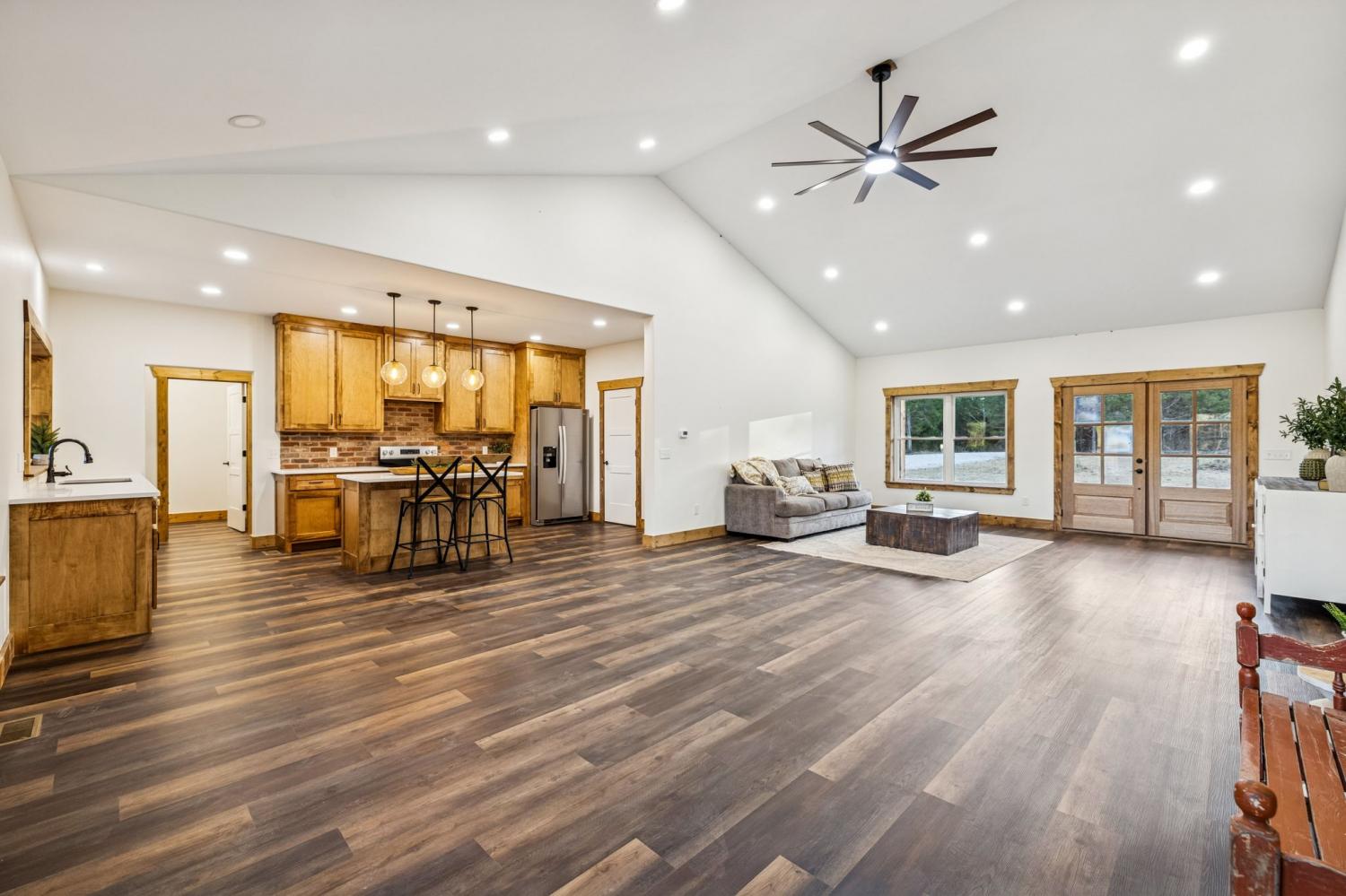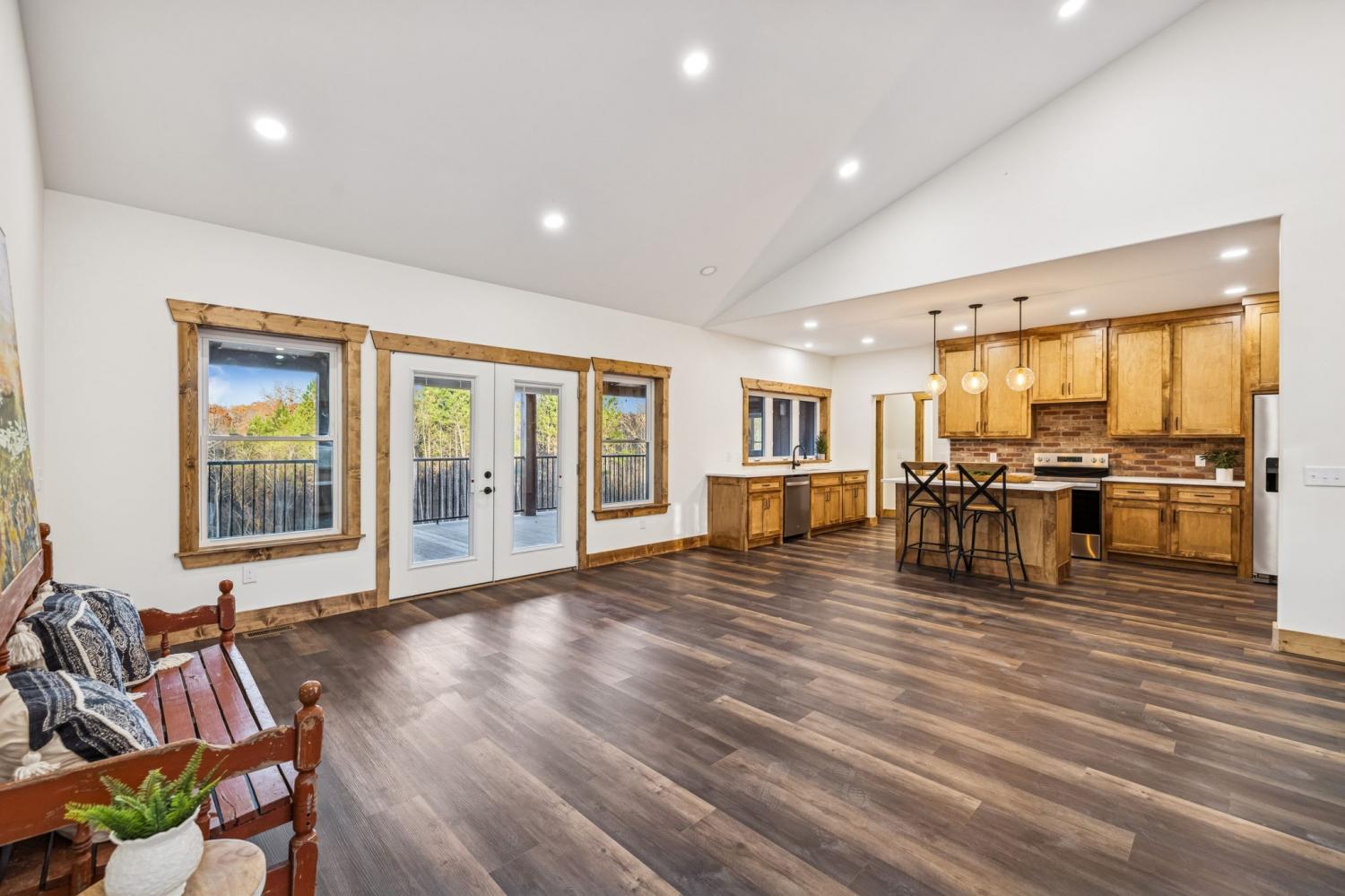Welcome to this beautifully crafted 3 bedroom, 2.5 bathroom NEW CONSTRUCTION home offering 3,630 square foot under roof including the house, a nice 2 car garage, covered front porch and a large covered back deck. Step inside to an impressive open-concept layout highlighted by a vaulted ceiling in the living room, stained wood trim and LVP flooring through out. The kitchen features custom cabinetry with a walk in pantry and seamless flow into the dining and living areas—ideal for everyday living or entertaining.The master bedroom has its own door to the back deck and includes a larger master bathroom. Attached to the master bathroom is a huge custom walk in closet that is also connected to the laundry room. This house truly has it all!