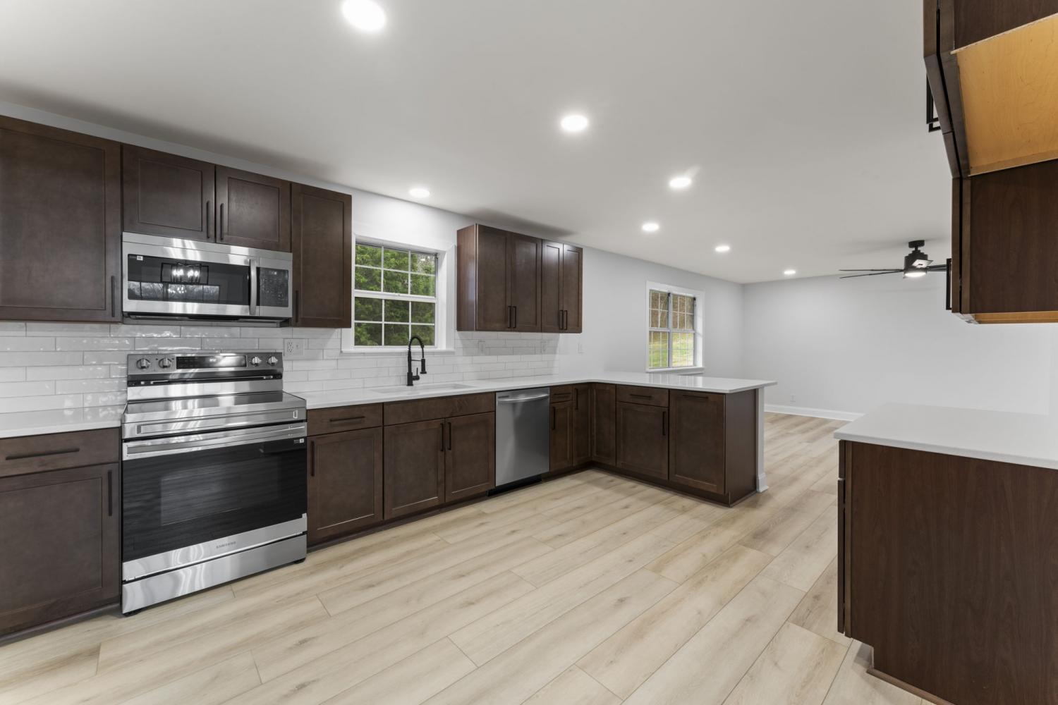 Welcome home to 2591 Harlan Farms Rd, a beautifully reimagined 4-bed, 2-bath, 1,928 sqft modern farmhouse feel nestled on nearly 3 private acres in Columbia. Every inch of this home has been thoughtfully renovated with high-end finishes, timeless design choices, and the peaceful charm of country living. Step inside to an inviting open-concept floor plan featuring brand-new LVP flooring throughout and a fully remodeled chef’s kitchen with custom Shenandoah cabinetry (Truffle finish), quartz countertops, tile backsplash, large peninsula, and all-new stainless appliances. The airy layout flows seamlessly into spacious living and dining areas, offering plenty of room for hosting, family gatherings, and everyday living. The primary suite is a true retreat, showcasing a fully renovated spa-style bathroom with new tile flooring, new vanity, new toilet, tile shower walls, and a frameless glass shower. The master closet also features new tile flooring for a luxurious touch. The generously sized mudroom/laundry room has also been fully renovated to maximize functionality and storage. The home offers a second beautifully renovated full bathroom, new lighting and plumbing fixtures throughout, new interior paint, upgraded doors and trim, a serviced HVAC system and a new water heater—giving you peace of mind for years to come. Outside, you’ll find fresh exterior paint, new 6” rain gutters, new security lighting, a covered front porch, and not just one but two incredible outdoor living spaces—a brand-new 400 sqft front deck and a refreshed and repainted rear deck, perfect for enjoying quiet mornings or hosting friends in the evenings. If you’re searching for a beautifully renovated home with acreage, privacy, and modern comfort, this one has it all. Move-in ready, thoughtfully designed, and built to last—homes like this don’t come around often.
