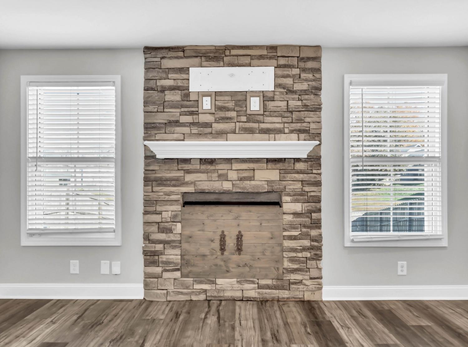 Discover comfort and style in this beautifully designed home featuring an inviting floor plan and thoughtful details throughout. The open kitchen is ideal for everyday living and entertaining, offering granite countertops, stainless steel appliances, an island with seating, and a seamless flow into the formal dining area. LVP flooring extends across the main level, leading you into a cozy living room highlighted by a stone-accented fireplace. A spacious laundry room with built-in cabinetry provides exceptional storage, and a clever built-in dog nook under the stairs adds charm and functionality. Upstairs, the private primary suite offers a relaxing retreat with a tile shower and double vanities. Two additional bedrooms feature oversized closets, giving everyone plenty of space. Step outside to enjoy a partially covered patio perfect for outdoor dining or unwinding, along with a privacy-fenced backyard ideal for pets and play and a storage shed to safely keep exterior items in. Centrally located near shopping, the interstate, and entertainment, this home blends convenience with modern comfort—ready for you to move in and enjoy.