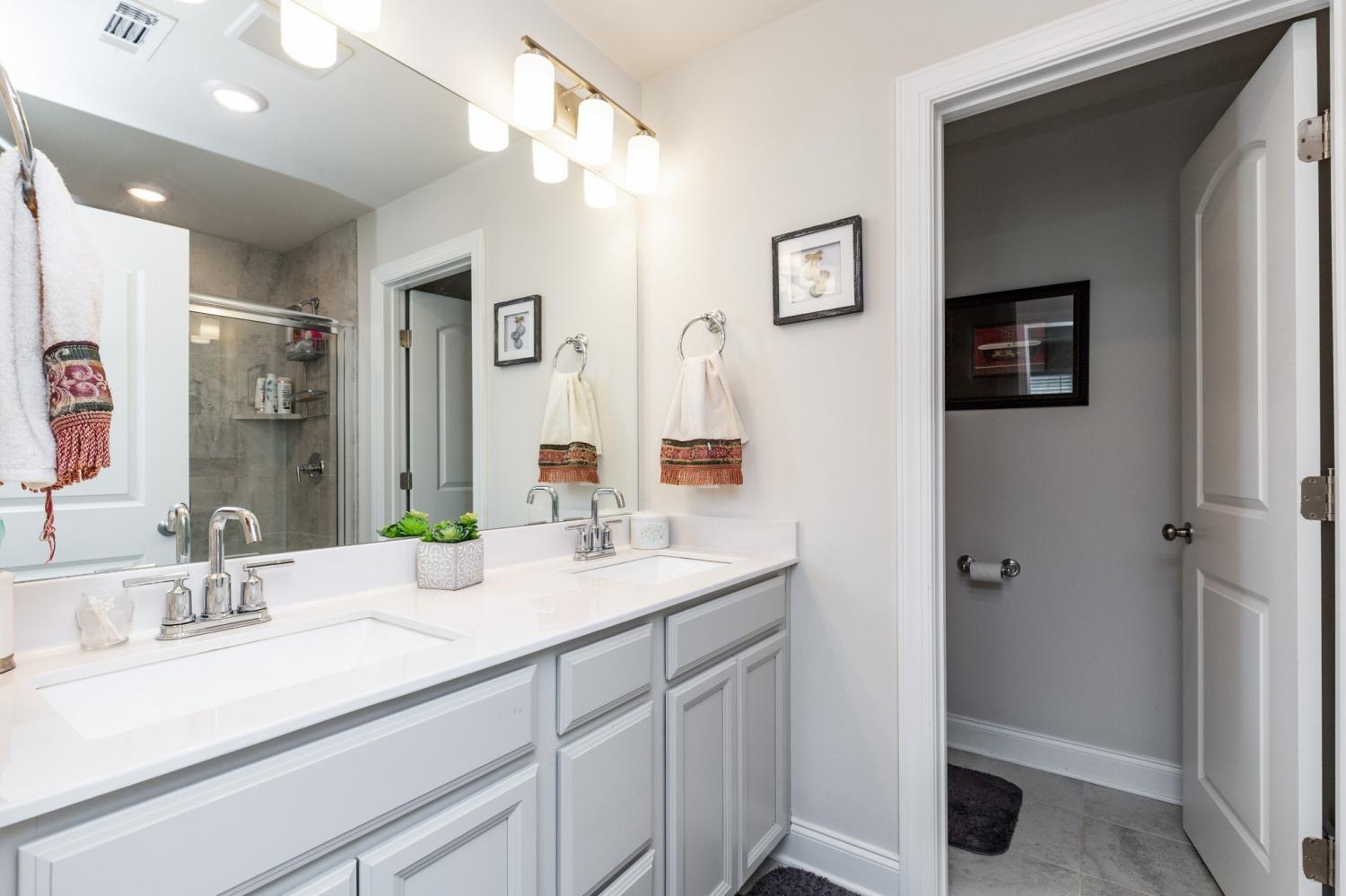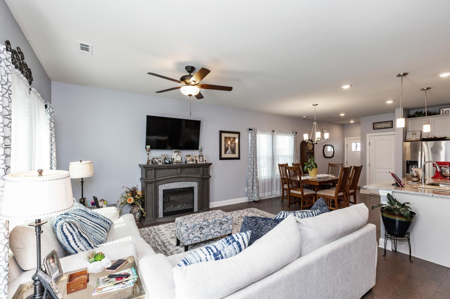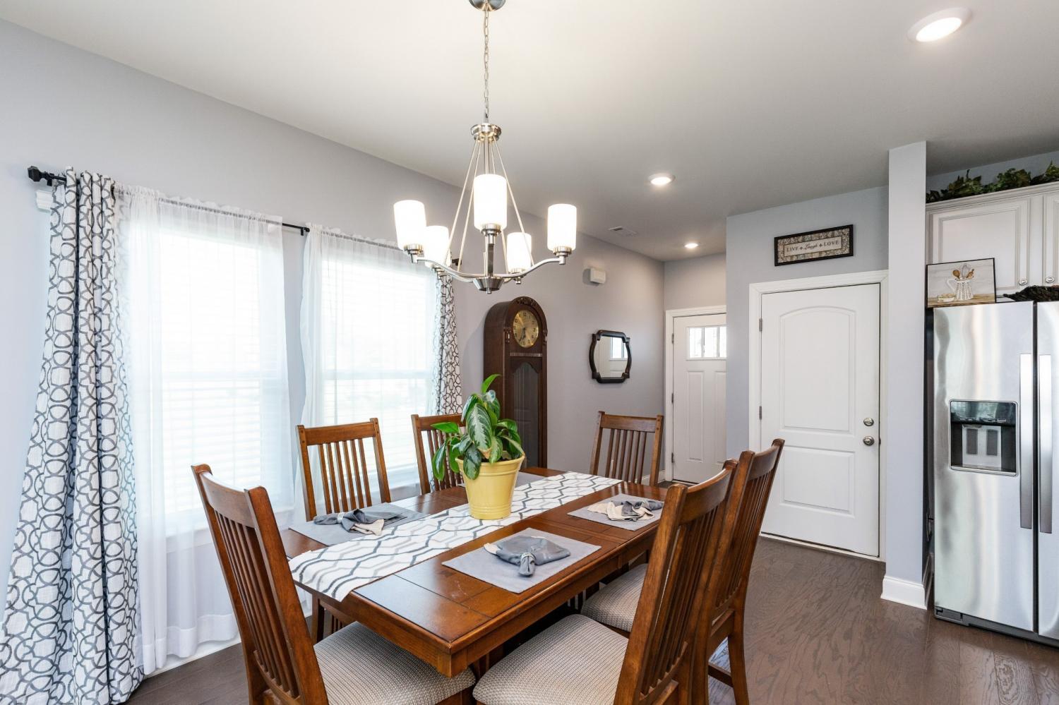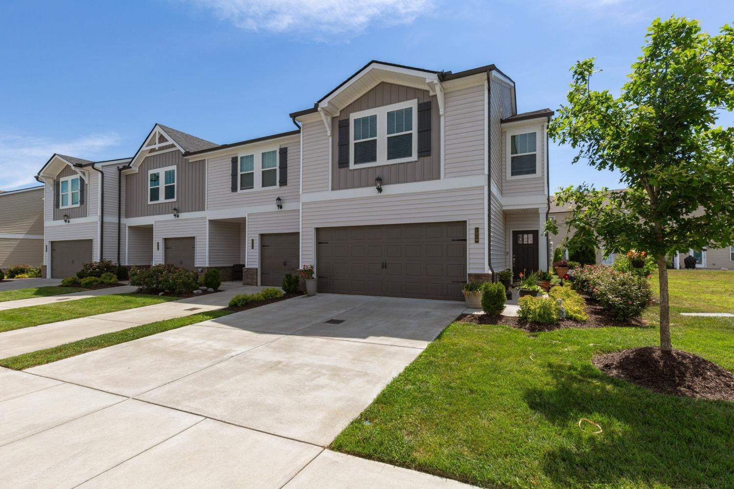 This stylish end-unit townhome in the desirable West End Station community offers a private side front entrance, 3 bedrooms, 2.5 bathrooms, and 1,834 square feet of comfortable, modern living. Open green space on the right of the unit. The bright and open main level is ideal for gatherings, featuring a welcoming living area and a beautifully appointed kitchen with granite countertops, gray cabinetry, a designer subway tile backsplash, and a refrigerator that stays with the home. Upstairs, a versatile loft provides the perfect space for an office, study area, or cozy reading nook, while the spacious primary suite delivers a peaceful retreat. Step outside to a charming, park-like back patio enhanced with added landscaping, a gazebo, and outdoor rugs—an inviting spot for relaxation or outdoor dining. Additional upgrades include a front storm door, tile entry at the back door, fresh interior paint, and a two-car garage with excellent storage options. Residents enjoy access to a community pool, clubhouse, sidewalks, green spaces, and underground utilities, all just minutes from I-40, Mt. Juliet’s vibrant shopping and dining, and a convenient commute to downtown Nashville.