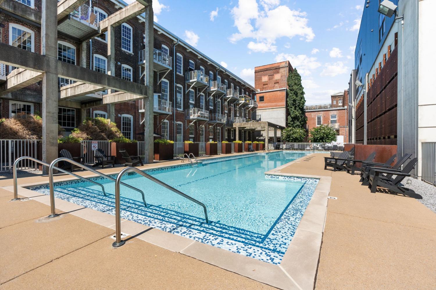 Extremely rare townhome offering at Germantown's beloved Werthan Lofts! This home offers private entry while conveniently situated next to community amenities. The expansive private patio welcomes you to dine al fresco, tend to your garden or get lost in a book. Kitchen and both bathrooms have been renovated along with beautiful tile flooring. Dining Room, Kitchen + Living Room flow seamlessly. Sliding glass doors are an entertainer's dream as they extend your living space and provide indoor / outdoor living. With 11ft ceilings + walls of windows, the natural light is absolutely fantastic. Second Floor hosts two ensuite bedrooms + Laundry room while a spiral staircase leads you to the Third Floor with jaw dropping views of Downtown! The perfect perch to watch the fireworks and the sunrise from your own home! Home also offers an assigned parking space in the private garage with separate entry along with access to all other parking locations. Werthan Lofts amenities boast two heated, salt-water pools, fitness center, yoga studio with TRX, bocce ball court, multiple dedicated dog areas, cabana with outdoor kitchen which you can reserve for private parties and gated parking. Steps to some of the best restaurants, charming coffee shops, Sounds baseball stadium, Farmers Market + Bicentennial Mall. Own a piece of history in one of Nashville's most sought after neighborhoods!