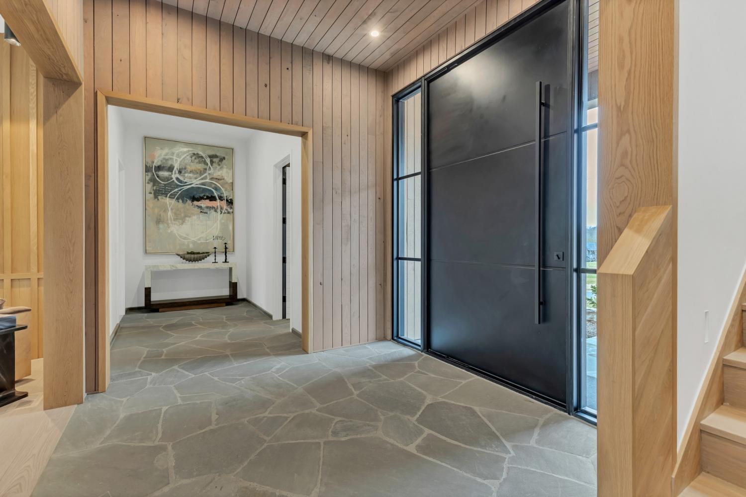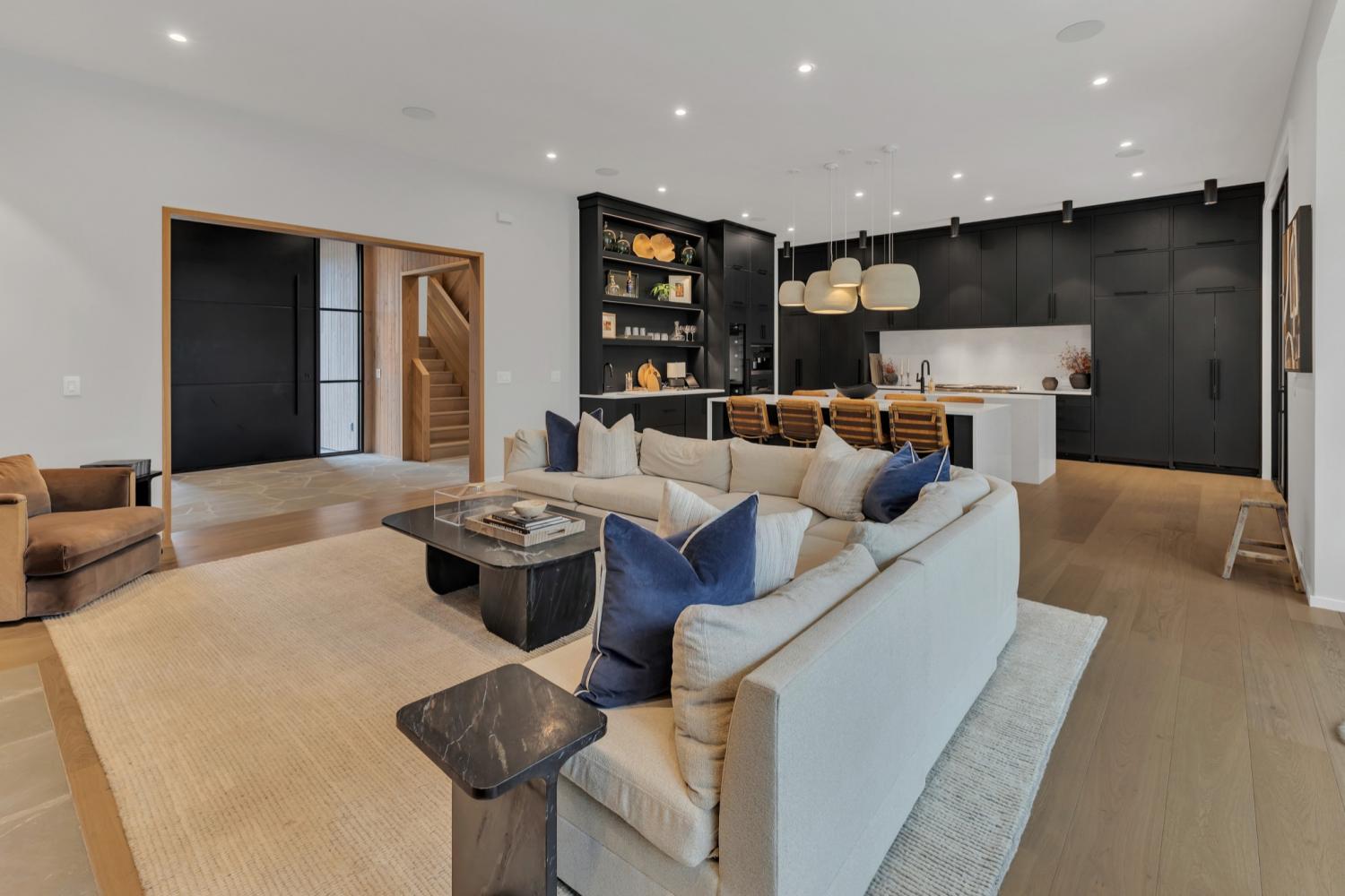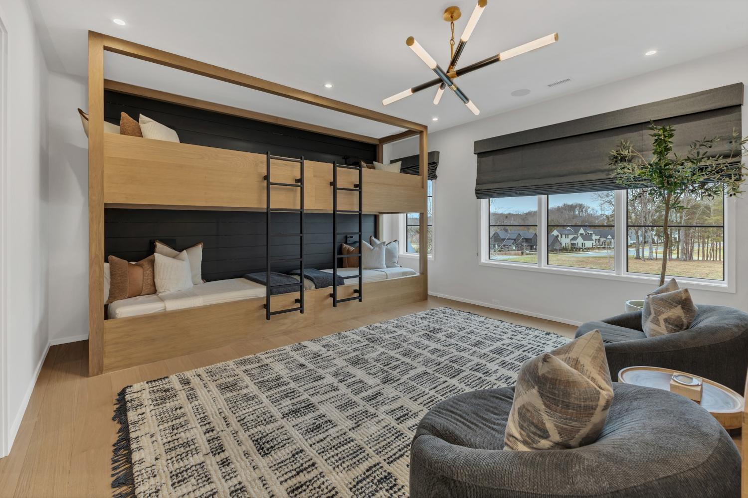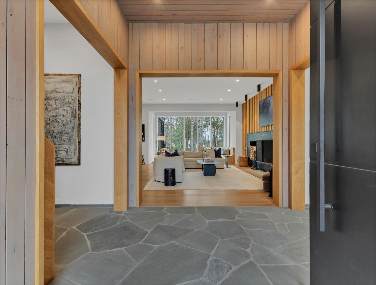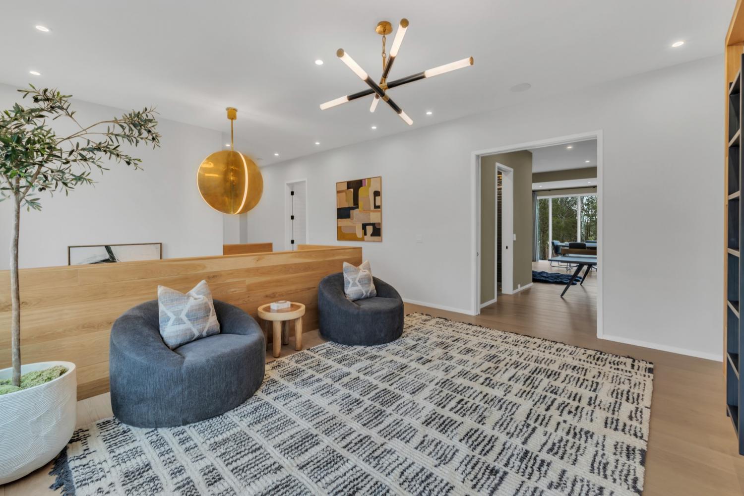 Nestled in one of the area’s most prestigious neighborhoods, this architectural masterpiece blends sleek sophistication with warm, natural elements. From the moment you step through the dramatic steel-framed entry door, you’re greeted by soaring ceilings, expansive windows, and an open layout that floods the home with natural light. The heart of the home is a chef’s dream kitchen featuring dual waterfall islands, custom black cabinetry, integrated appliances, and designer lighting—perfect for both intimate gatherings and grand entertaining. Flowing seamlessly from the kitchen, the living space boasts a striking floor-to-ceiling fireplace and panoramic views of the wooded surroundings. Retreat to the serene primary suite, where vaulted ceilings, a statement chandelier, and a wall of glass create a private sanctuary. Every detail—from the wide-plank hardwood floors to the curated finishes—reflects uncompromising quality and style. Step outside to experience an entertainer’s paradise. A stunning covered patio with stone flooring and a cozy lounge area overlooks a beautifully landscaped backyard framed by mature trees. Enjoy evenings around the custom firepit or host unforgettable gatherings with the built-in outdoor kitchen and grilling station. For recreation and relaxation, the backyard features a professional-grade golf putting green for perfecting your short game and a spa-style plunge pool designed for ultimate tranquility. This outdoor oasis offers the perfect blend of leisure, luxury, and sophistication. Outside, the modern farmhouse-inspired exterior combines natural wood siding with bold black accents, setting the tone for refined elegance. This home offers not just a place to live, but a lifestyle defined by luxury, comfort, and connection to nature. Offering fantastic value for the neighborhood, this home is being sold fully furnished—inviting you to discover a world where every detail is designed for indulgence.