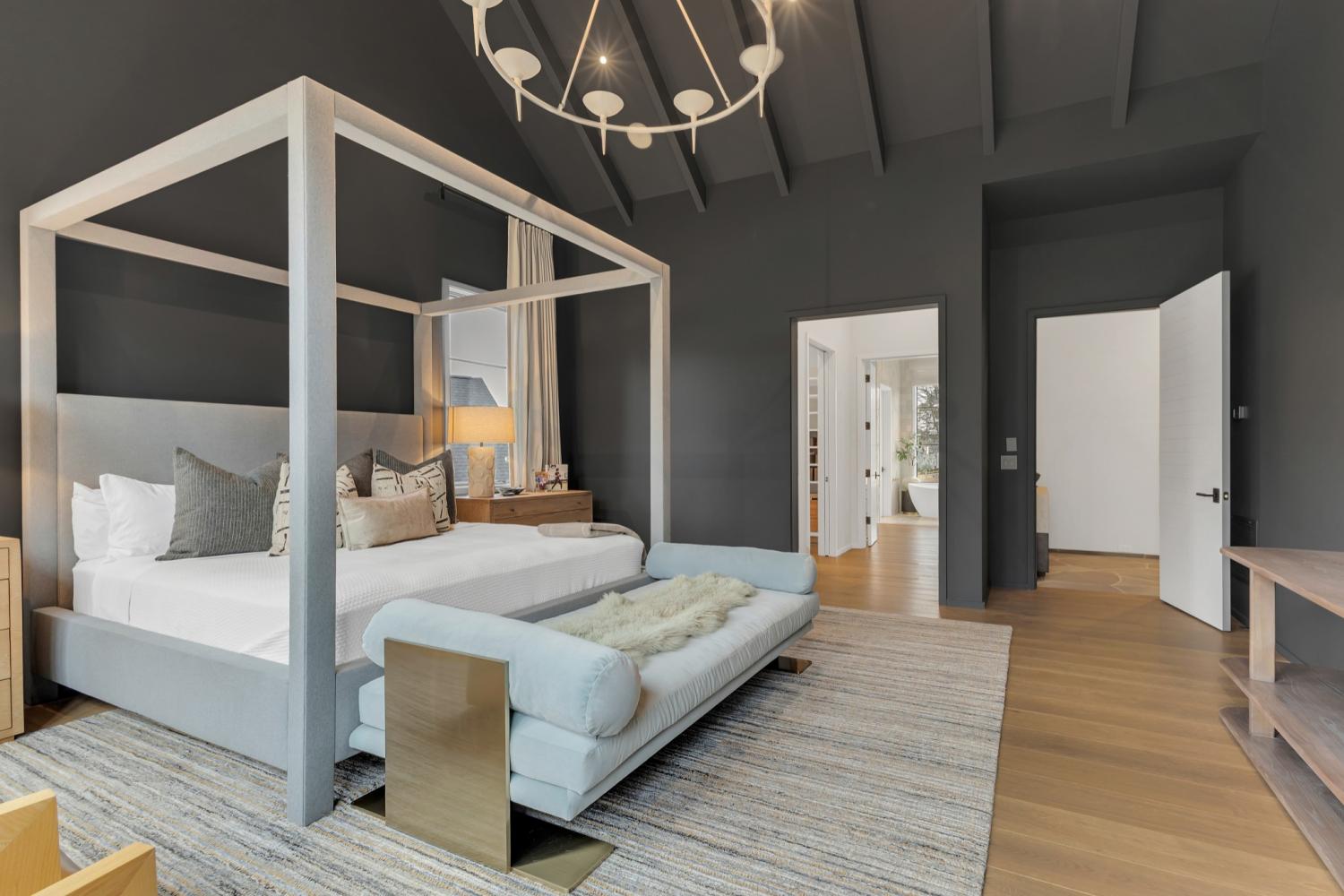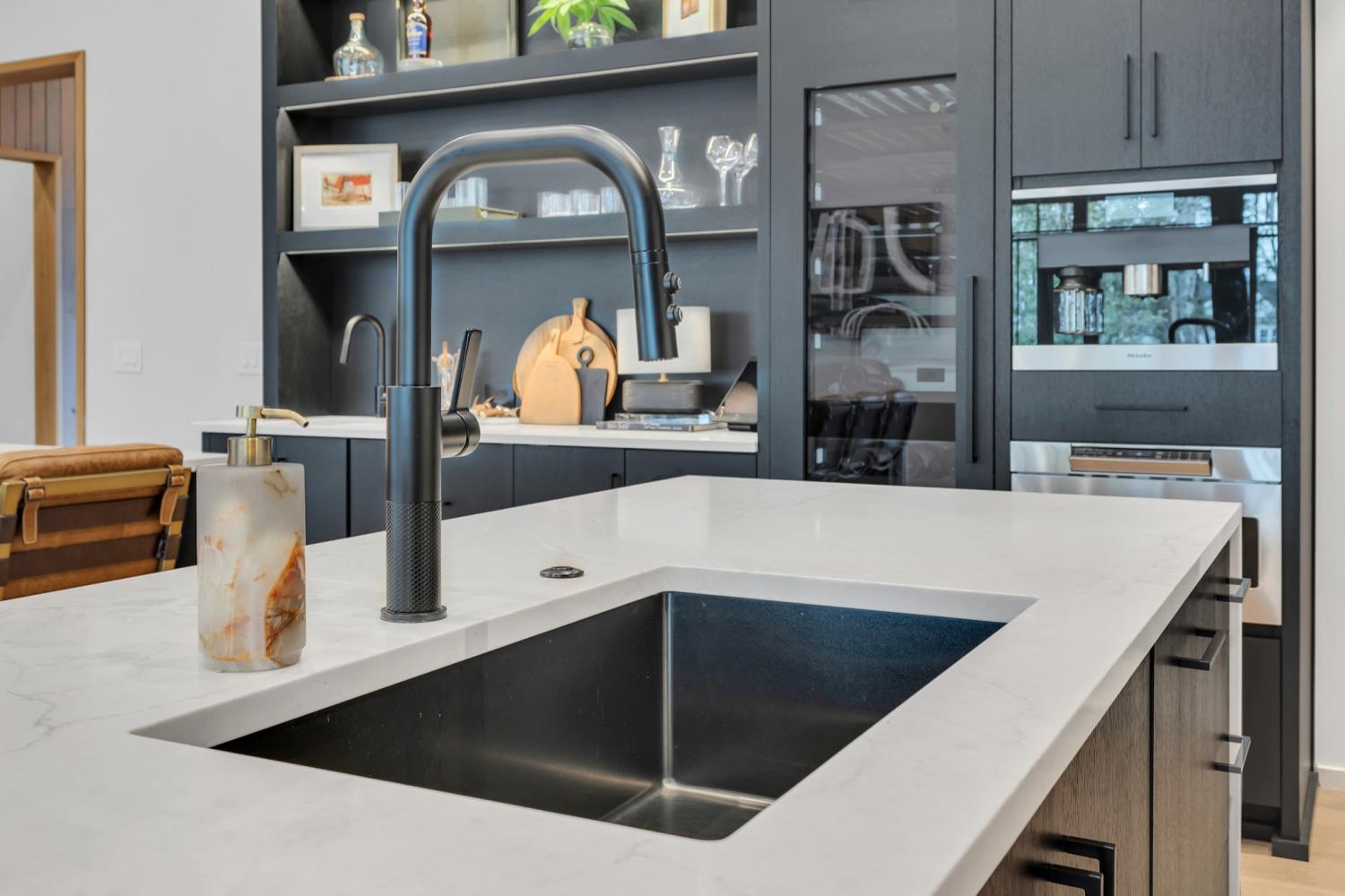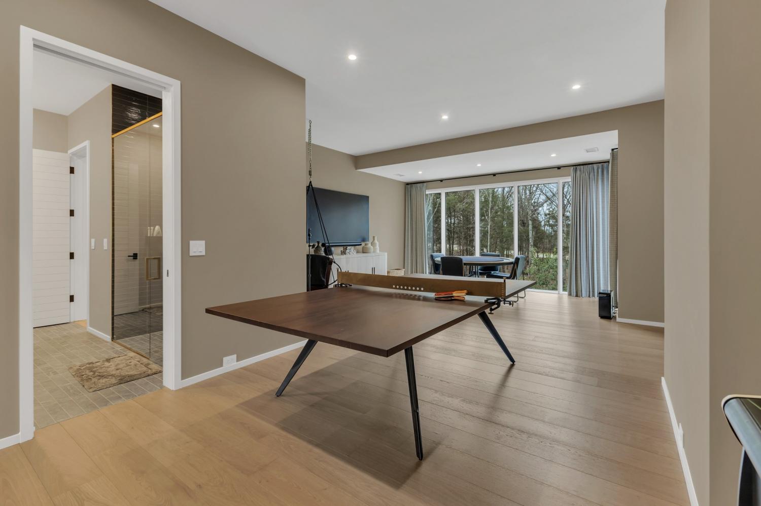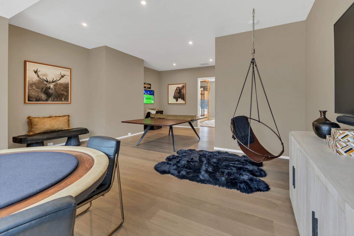 Nestled in one of the area’s most prestigious neighborhoods, this architectural masterpiece blends sleek sophistication with warm, natural elements. From the moment you step through the dramatic steel-framed entry door, you’re greeted by soaring ceilings, expansive windows, and an open layout that floods the home with natural light. The heart of the home is a chef’s dream kitchen featuring dual waterfall islands, custom black cabinetry, integrated appliances, and designer lighting—perfect for both intimate gatherings and grand entertaining. Flowing seamlessly from the kitchen, the living space boasts a striking floor-to-ceiling fireplace and panoramic views of the wooded surroundings. Retreat to the serene primary suite, where vaulted ceilings, a statement chandelier, and a wall of glass create a private sanctuary. Every detail—from the wide-plank hardwood floors to the curated finishes—reflects uncompromising quality and style. Step outside to experience an entertainer’s paradise. A stunning covered patio with stone flooring and a cozy lounge area overlooks a beautifully landscaped backyard framed by mature trees. Enjoy evenings around the custom firepit or host unforgettable gatherings with the built-in outdoor kitchen and grilling station. For recreation and relaxation, the backyard features a professional-grade golf putting green for perfecting your short game and a spa-style plunge pool designed for ultimate tranquility. This outdoor oasis offers the perfect blend of leisure, luxury, and sophistication. Outside, the modern farmhouse-inspired exterior combines natural wood siding with bold black accents, setting the tone for refined elegance. This home offers not just a place to live, but a lifestyle defined by luxury, comfort, and connection to nature. Offering fantastic value for the neighborhood, this home is being sold fully furnished—inviting you to discover a world where every detail is designed for indulgence.