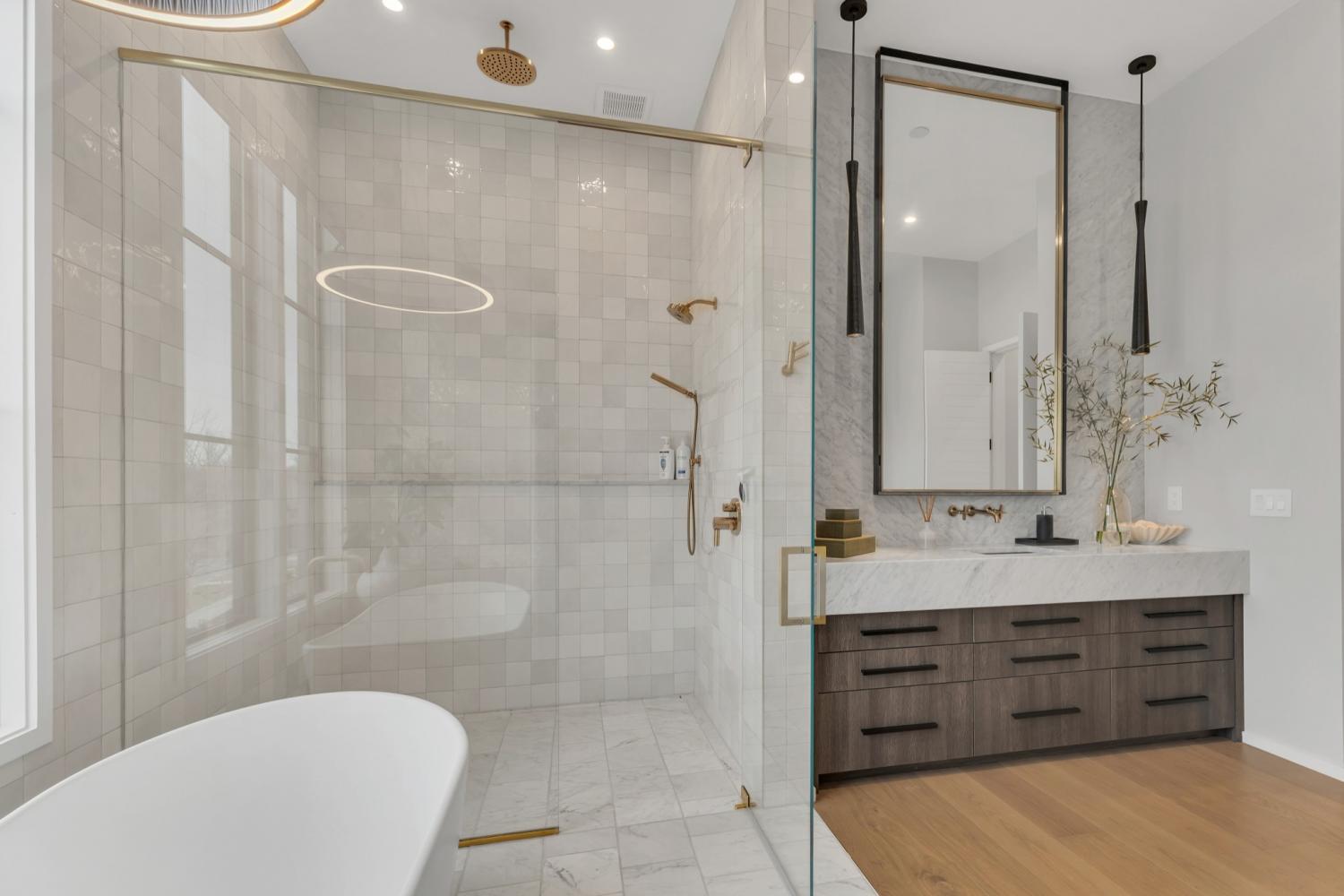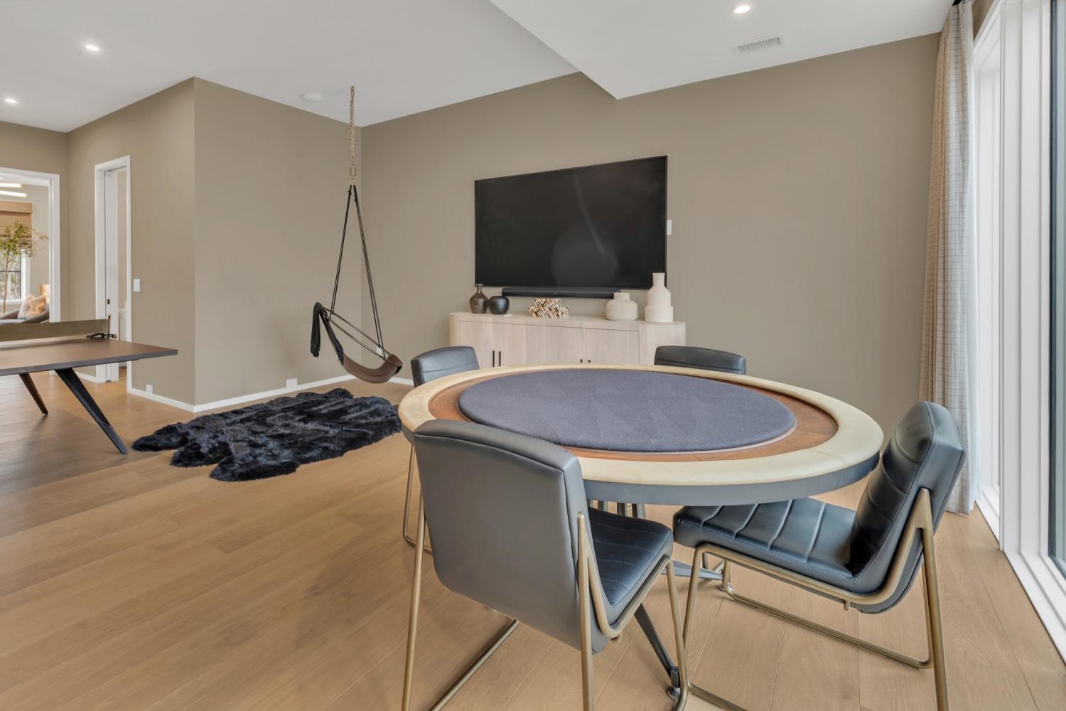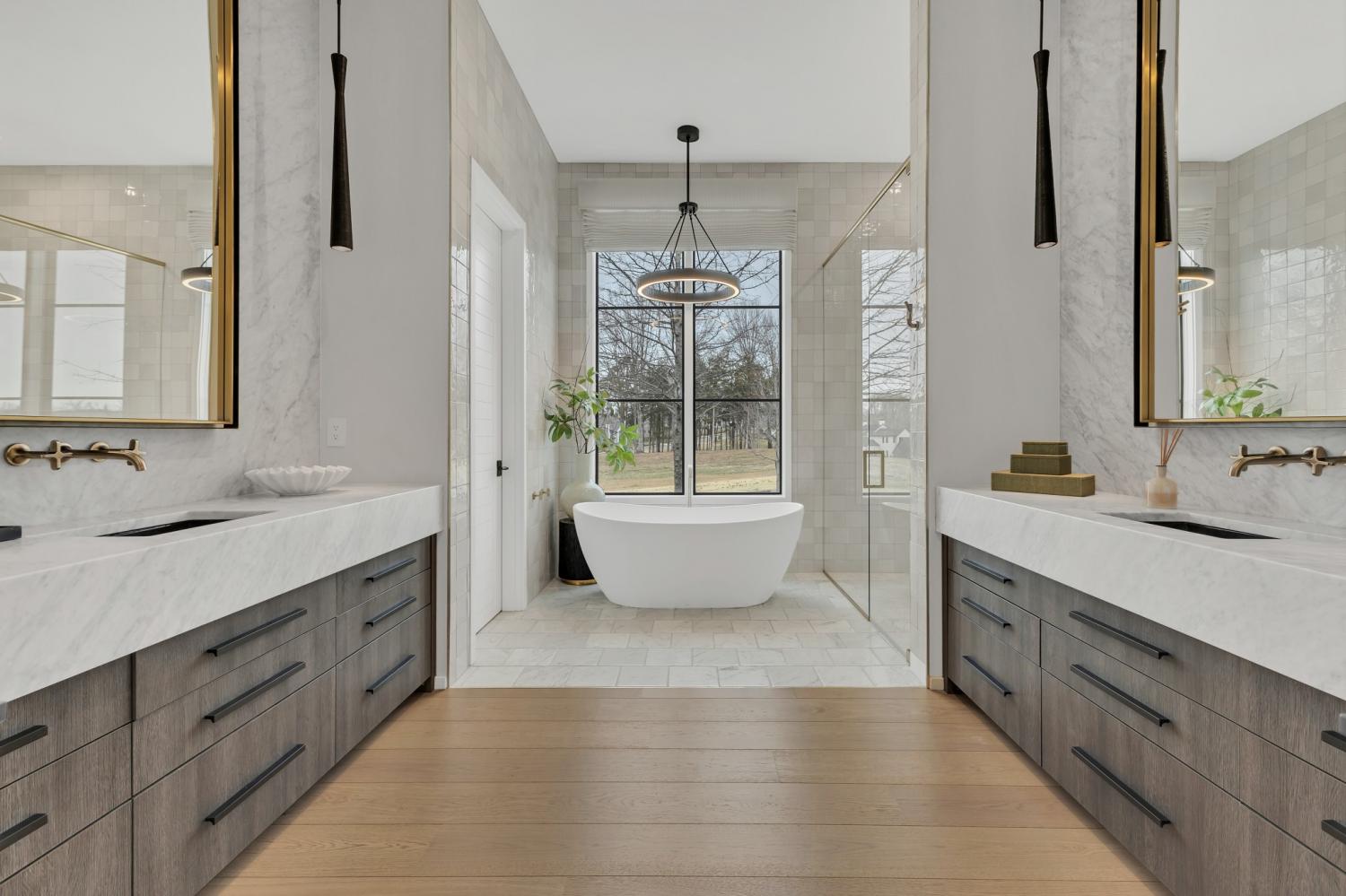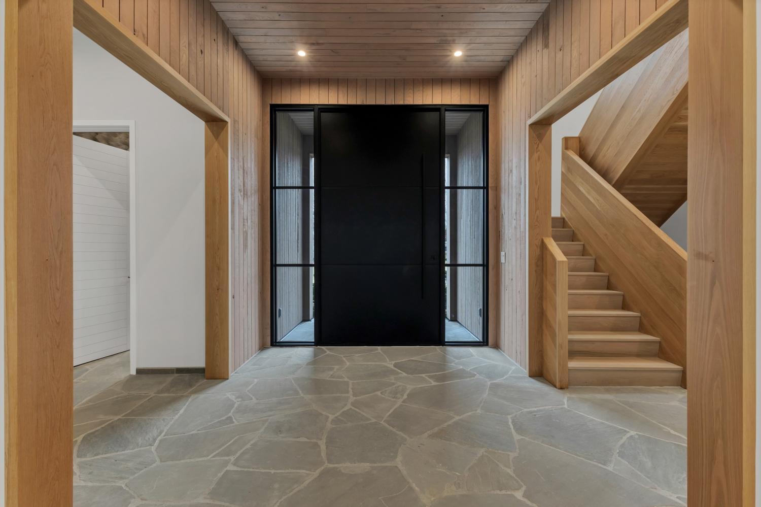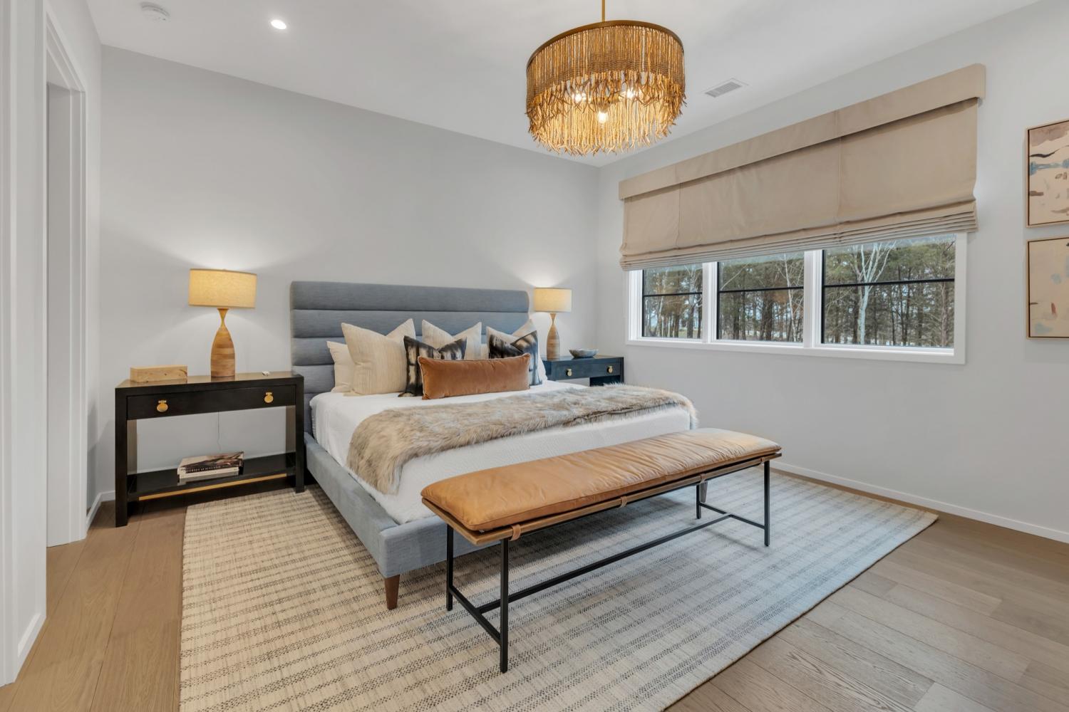 Nestled in one of the area’s most prestigious neighborhoods, this architectural masterpiece blends sleek sophistication with warm, natural elements. From the moment you step through the dramatic steel-framed entry door, you’re greeted by soaring ceilings, expansive windows, and an open layout that floods the home with natural light. The heart of the home is a chef’s dream kitchen featuring dual waterfall islands, custom black cabinetry, integrated appliances, and designer lighting—perfect for both intimate gatherings and grand entertaining. Flowing seamlessly from the kitchen, the living space boasts a striking floor-to-ceiling fireplace and panoramic views of the wooded surroundings. Retreat to the serene primary suite, where vaulted ceilings, a statement chandelier, and a wall of glass create a private sanctuary. Every detail—from the wide-plank hardwood floors to the curated finishes—reflects uncompromising quality and style. Step outside to experience an entertainer’s paradise. A stunning covered patio with stone flooring and a cozy lounge area overlooks a beautifully landscaped backyard framed by mature trees. Enjoy evenings around the custom firepit or host unforgettable gatherings with the built-in outdoor kitchen and grilling station. For recreation and relaxation, the backyard features a professional-grade golf putting green for perfecting your short game and a spa-style plunge pool designed for ultimate tranquility. This outdoor oasis offers the perfect blend of leisure, luxury, and sophistication. Outside, the modern farmhouse-inspired exterior combines natural wood siding with bold black accents, setting the tone for refined elegance. This home offers not just a place to live, but a lifestyle defined by luxury, comfort, and connection to nature. Offering fantastic value for the neighborhood, this home is being sold fully furnished—inviting you to discover a world where every detail is designed for indulgence.