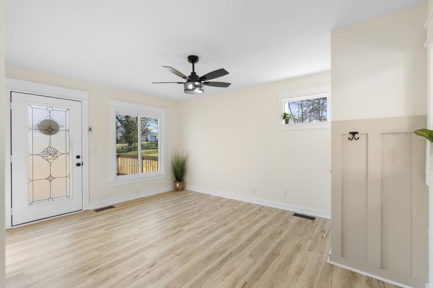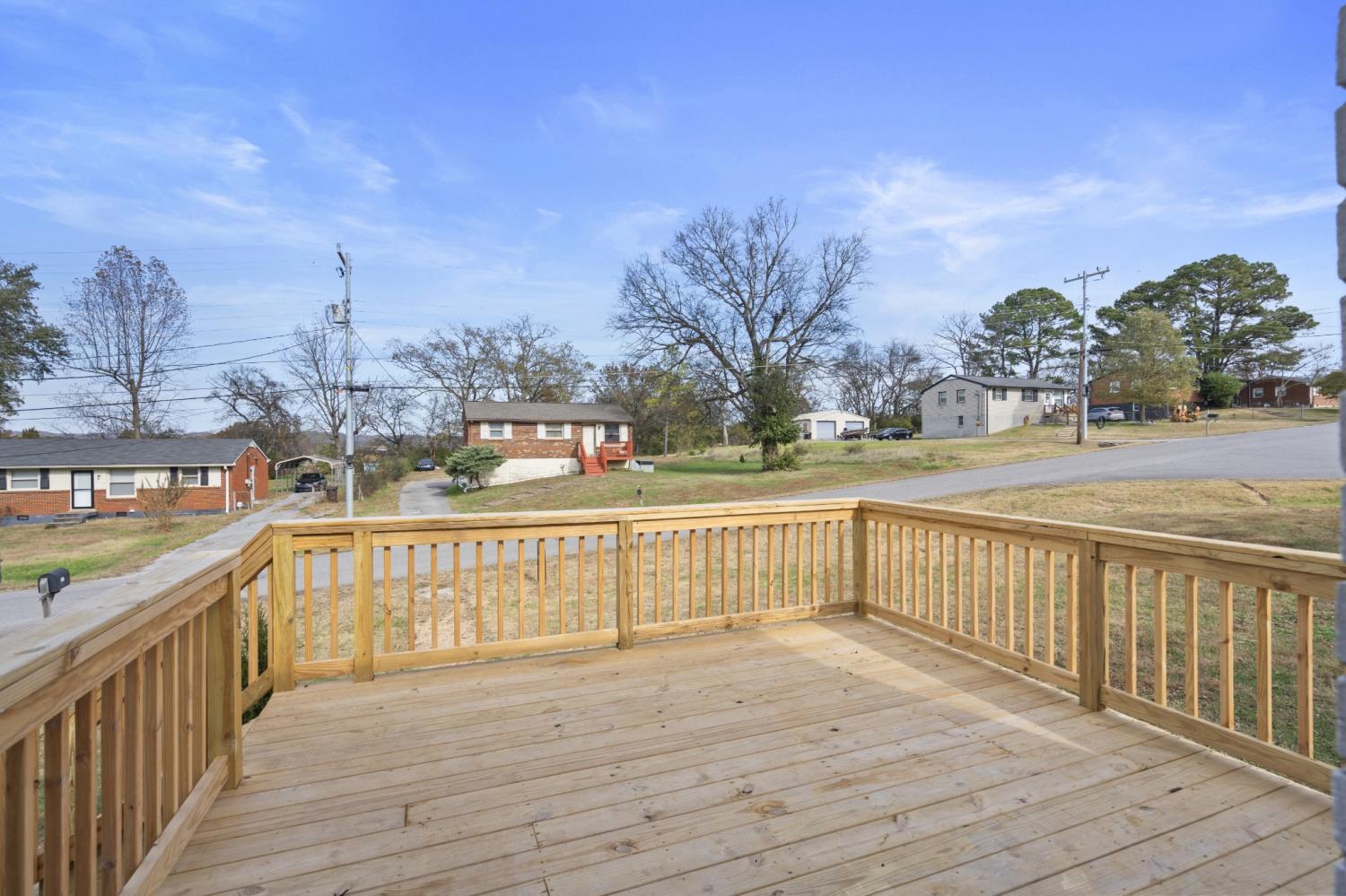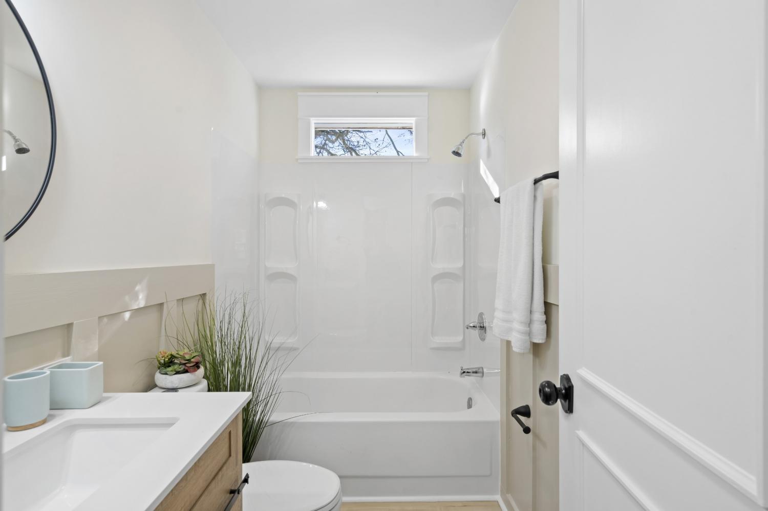 Fully renovated and move-in ready! This home features an updated brick exterior with fresh curb appeal, a brand-new roof, new cedar shutters, and two newly built decks perfect for outdoor entertainment. Inside, you'll find fresh paint, new trim, upgraded lighting, and all-new windows, along with new LVP flooring and carpet throughout. The fully remodeled kitchen offers two-tone cabinets with gold finishes, new butcher block countertops, a deep single-basin sink with upgraded faucet and cup washer, new appliances, and a ventless hood. The bathroom includes a wood-tone vanity with a marble top, updated plumbing fixtures, and a vent/light combo with Bluetooth stereo and LED lighting. All three bedrooms have been refreshed with new carpet, fresh paint, new trim, and upgraded lighting, creating bright and comfortable spaces throughout the home. Major system upgrades include all-new plumbing, a new water heater, new interior and exterior doors, and a new 2.5-ton split system with new ductwork and a new return vent. The newly installed garage door is in the open basement offering flexible storage space, updated mechanicals, and convenient access to the main level. Exterior enhancements continue with fresh paint, charming wood details, and an open backyard with plenty of green space. Thoughtfully redesigned with modern style and everyday comfort in mind, this fully updated home is ready for its next chapter — just move right in and enjoy!