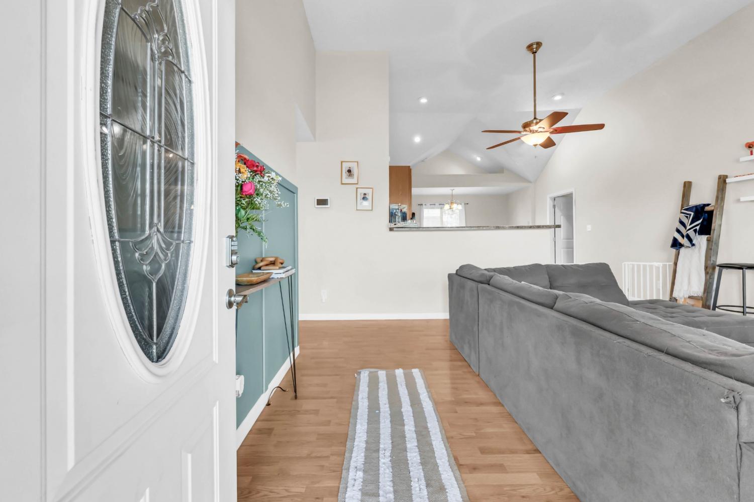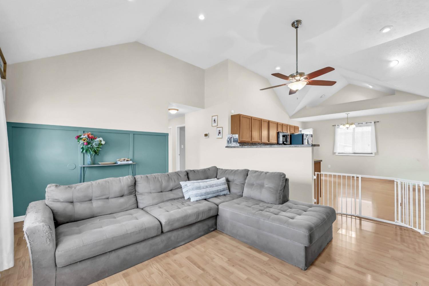 Gorgeous light hardwood floors throughout the main living areas. Open living room and kitchen with tall ceilings that create a spacious feel. Large deck out back overlooking a fully fenced backyard for added privacy. Storage building to convey. Covered front porch adds additional outdoor enjoyment.