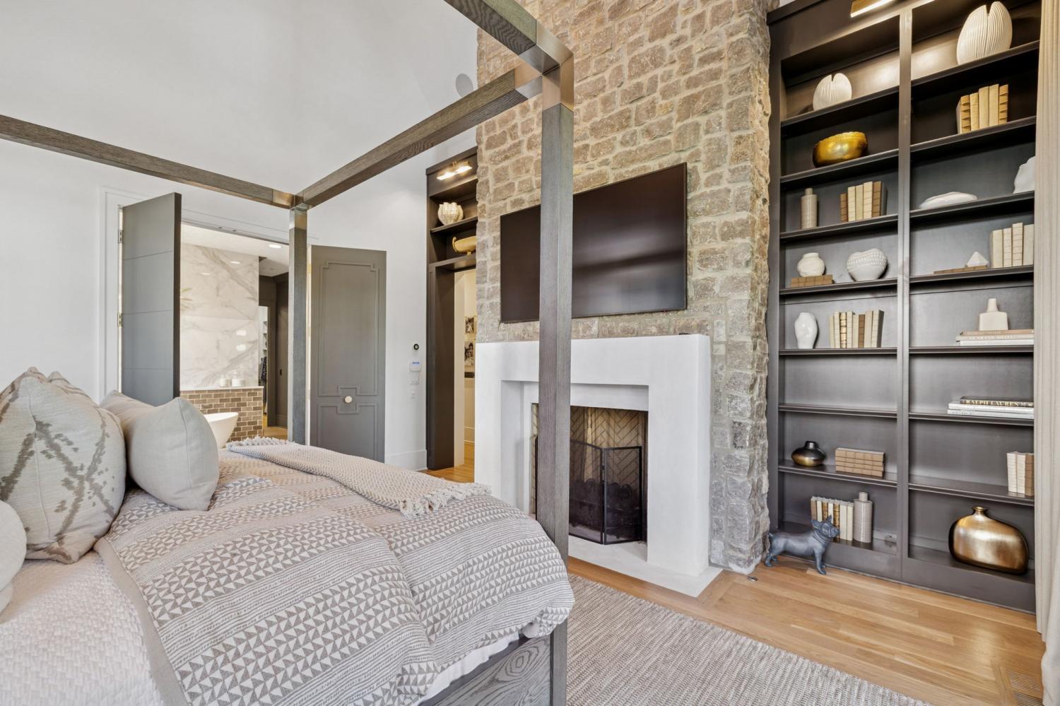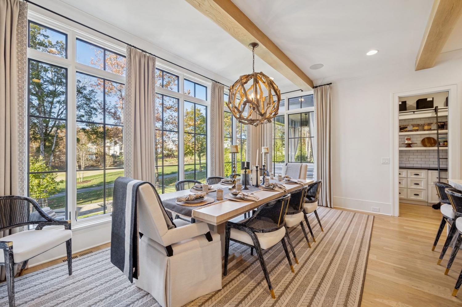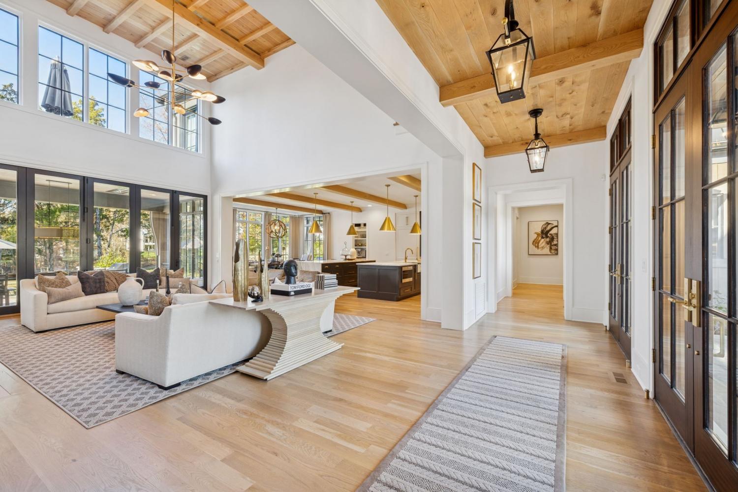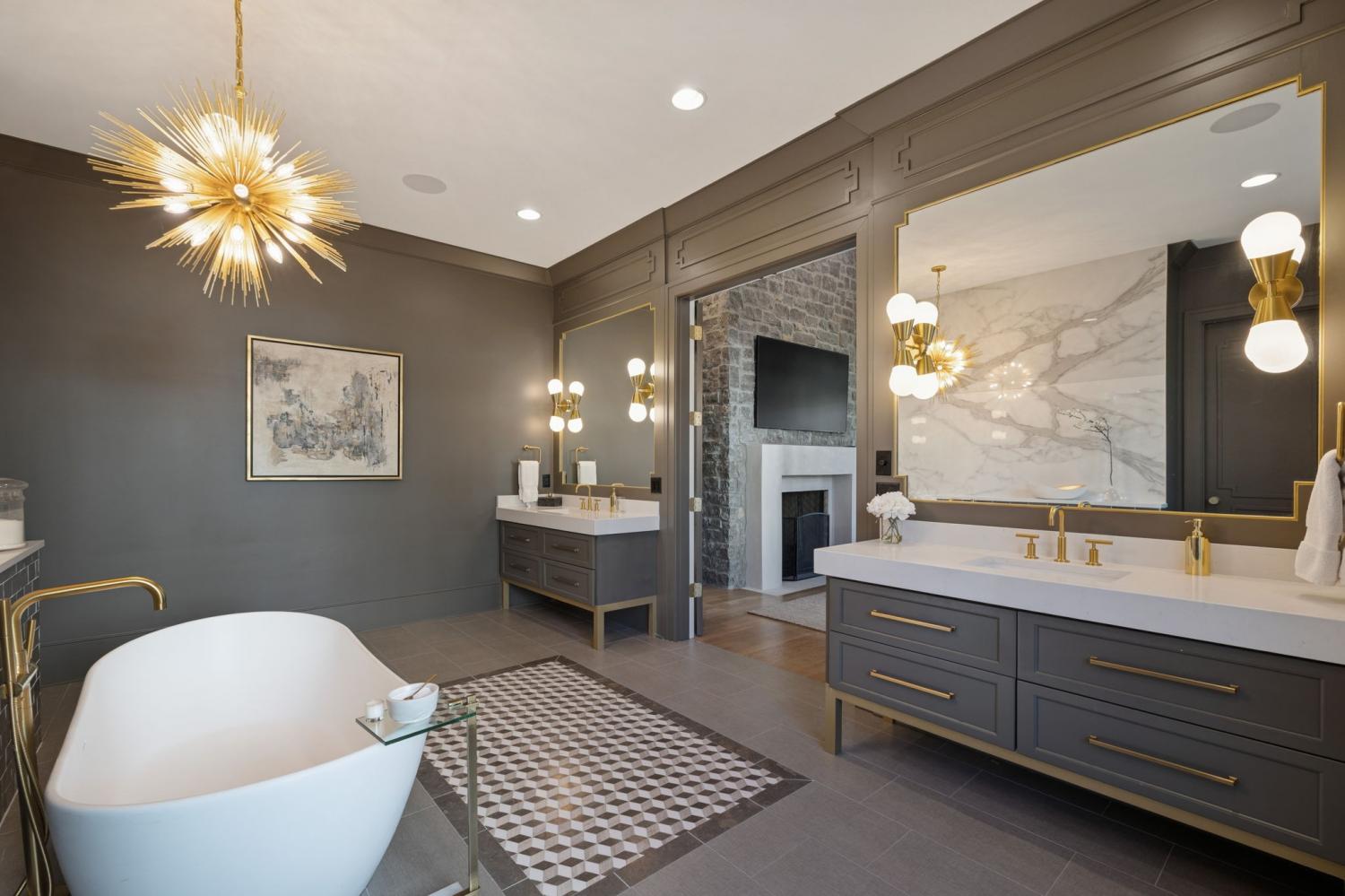 This extraordinary residence is a showcase of architectural brilliance and refined elegance. From its commanding exterior presence to its meticulously curated interiors, every detail has been designed to impress. Step into a private resort experience with an infinity-edge pool that mirrors the sunset sky, creating a breathtaking backdrop for relaxation and entertainment. Multiple terraces and lounging areas invite you to unwind, while a custom stone firepit and an outdoor kitchen with built-in grill make alfresco dining and gatherings unforgettable.The seamless integration of indoor and outdoor spaces ensures that every moment is elevated by panoramic views and impeccable design. Inside, soaring ceilings and walls of glass flood the home with natural light, highlighting the craftsmanship and luxurious finishes throughout. The grand living room features a dramatic stone fireplace and an open layout perfect for entertaining. The dining room, framed by floor-to-ceiling windows, offers an intimate yet airy setting for elegant meals. The chef’s kitchen is a masterpiece, boasting dual waterfall islands in striking marble, professional-grade appliances, and custom cabinetry. Just steps away, a bespoke bar area steals the show with its mirrored shelving, brass accents, and extensive wine storage. A walk-up window connects the bar to the outdoor lounge, creating a unique experience for serving guests indoors and out. The primary suite is a sanctuary of comfort and style, featuring a vaulted ceiling with exposed beams, a stone fireplace, and custom built-ins. The spa-inspired bathroom offers dual vanities, a freestanding soaking tub, and gold fixtures that exude elegance. Additional sitting rooms and bonus spaces provide versatility for relaxation or entertainment, each designed with rich textures and modern sophistication. From the infinity pool to the whiskey lounge, this estate is more than a home—it’s a statement of luxury living at its highest level.