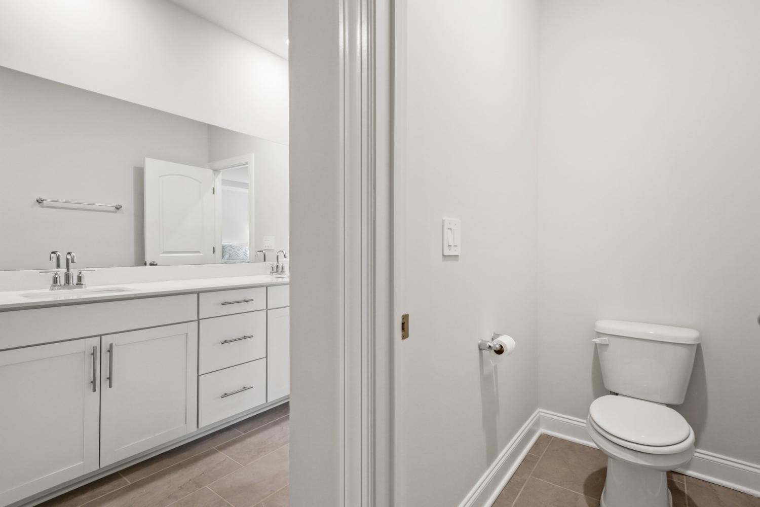 Unique lot offers views and privacy, with upgrades that make it better than brand new! This one year old home has all the “extras” - a beautiful composite deck, painted garage, additional wood flooring, and a privacy fence capped with solar lights. The home sits on an extra-special lot that backs to privately owned woods which offer peaceful views of wildlife and unusual privacy. The open layout allows you to see from the front door straight through to the back of the home. White quartz countertops create a bright and inviting kitchen space for cooking and entertaining. The main floor primary suite features a tray ceiling, and storage abounds with an enormous walk-in closet as well as a linen closet. The primary bath has lots of storage, dual vanities, and an oversized walk-in shower. The main floor laundry room is convenient to the primary bedroom and to the garage. A flex space near the front door could serve as a formal dining room or as an office. Upstairs you will find two bedrooms with extra large closets that share a hall bathroom with dual vanities and a tub/shower combo. The fourth bedroom has an en-suite bathroom with bathtub. The upstairs loft is perfect for gathering, or could be used for a craft, exercise, media, or homework space! The Woodmont neighborhood features sidewalks and a community pool, and is located between I-24, I-65, and 840- convenient to shopping, dining, and entertainment!