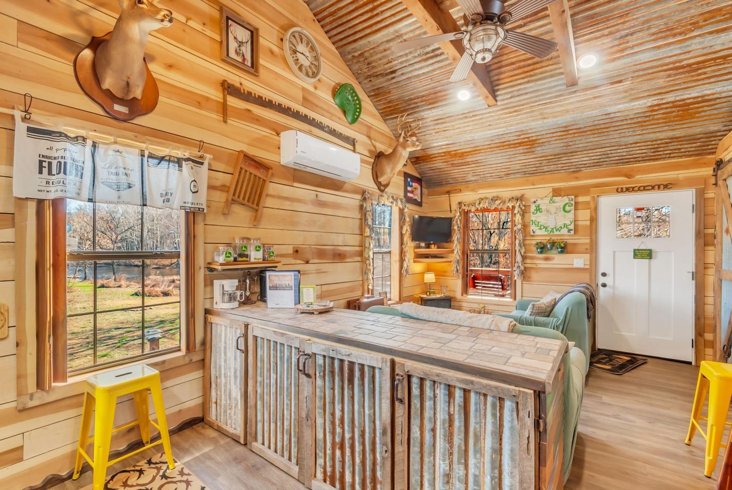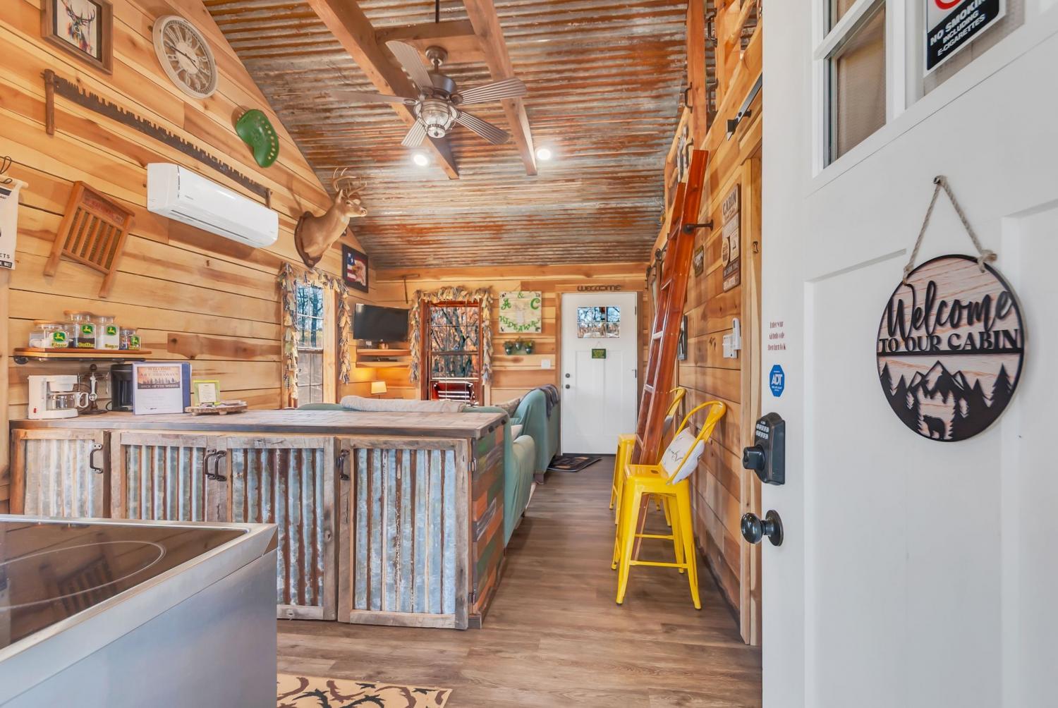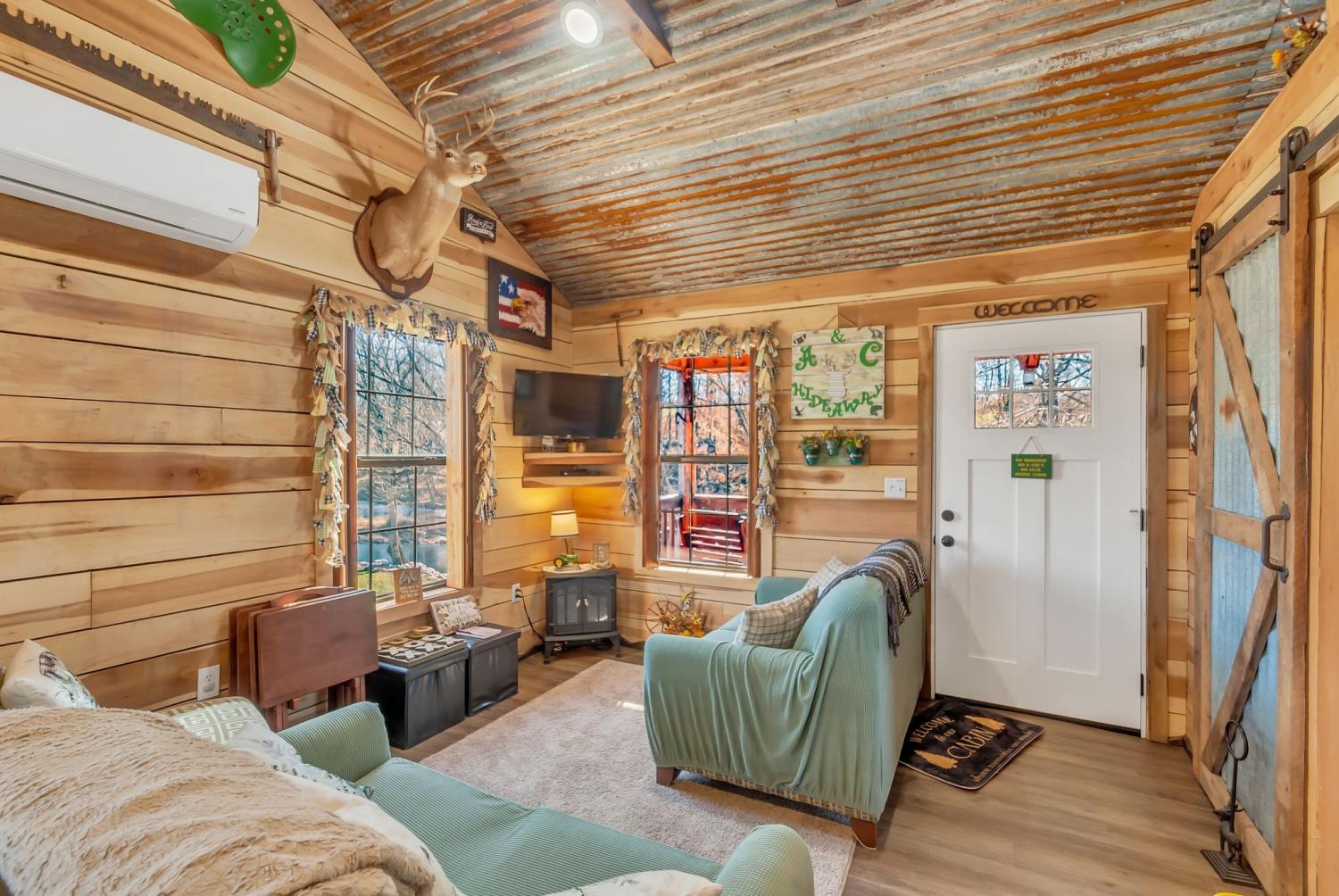 3 FOR 1 DEAL!! Cabin Plus extra lot with 2 RV hookups Perfect weekend getaway. Adorable Cozy rustic cabin set next to Factory Creek. Wake up with your favorite cup of pick me up on the deck overlooking the sounds of water and all nature has to offer. 2 bedrooms, one is a loft, 1 bath with custom tile shower, rustic window shades, barn doors all set in an atmosphere made for relaxation. Property also boasts 2 RV hookups with 30 amp service. kayak down factory creek and shoals creek, kayaks available to rent at syncamore campgrounds by taco shack which is 6 Miles from the cabin. The NATRA (North Alabama Trail Riders Association) is down the road 1 mile. Creek is crystal clear, rock bottom so fishing is easy when you can see all the fish. Gated by remote control, quiet, relaxing community with firepit at cabin to build a bonfire and roast marshmellows. Bring your canoes and friends for a fun getaway. Rent it as an air bnb when you aren't there.