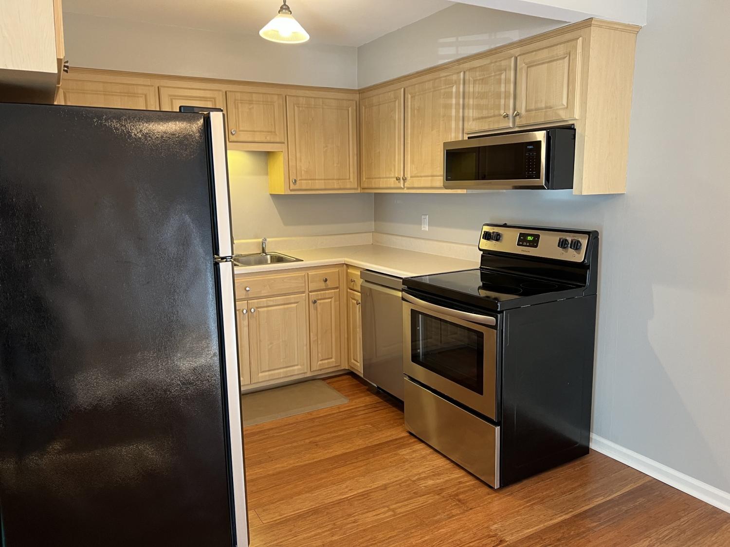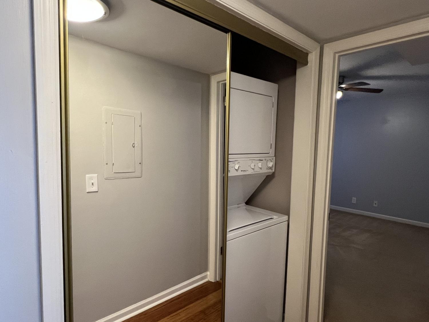 Fantastic condo in ideal location, on the main level and in pristine condition. Features include laminate hardwood flooring, brand new carpet in the bedroom, and a beautiful newly renovated bathroom. The kitchen is complete with stainless steel appliances, including a new dishwasher, plus a cozy eat-in area. The TV bracket and HDMI cables above the fireplace will remain, and a washer and dryer are provided. Great storage with shelving in the Den, an oversized storage closet, extra shelving next to the washer and dryer, and an organized walk-in closet in the bedroom. The community pool is conveniently located behind the building for those relaxing summer days. Amazing location near I-65, Target and all the conveniences of Brentwood. Fresh, modern, well-maintained and move-in ready!
