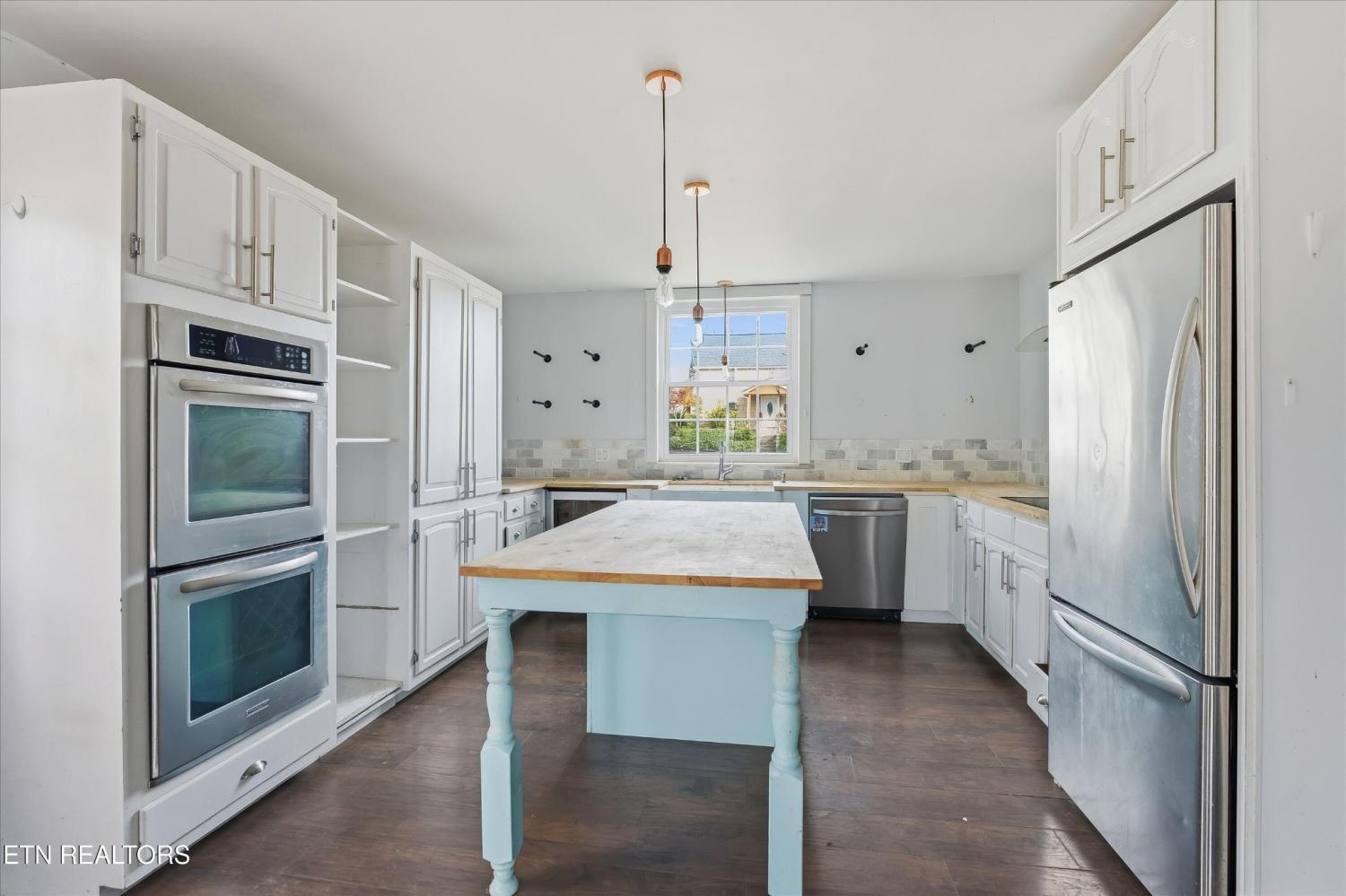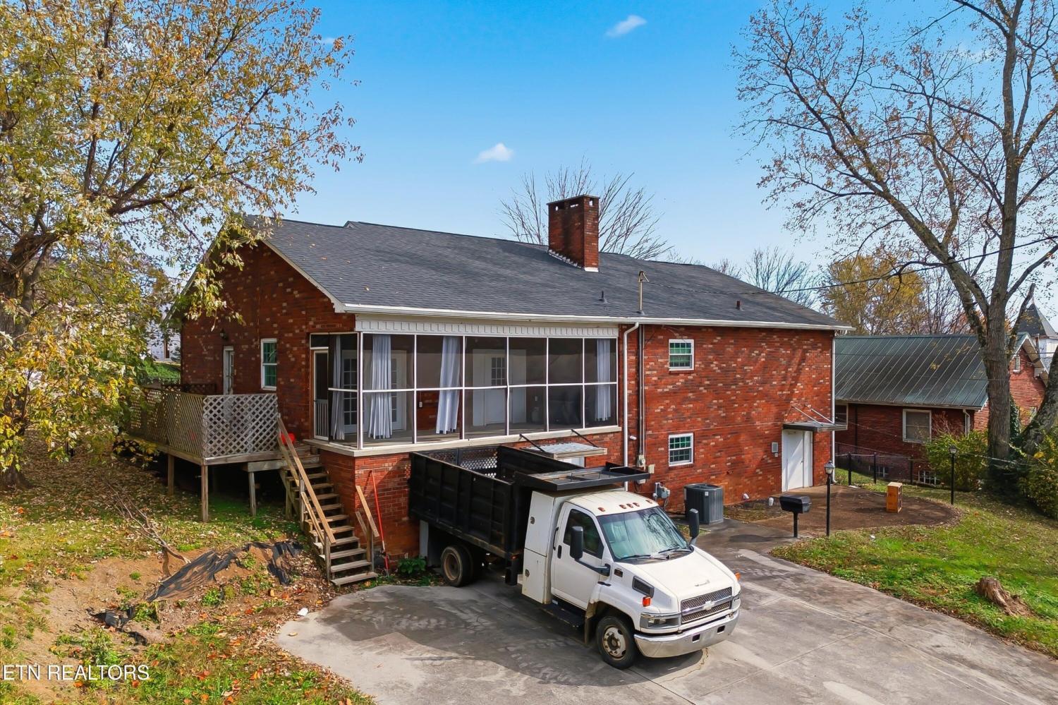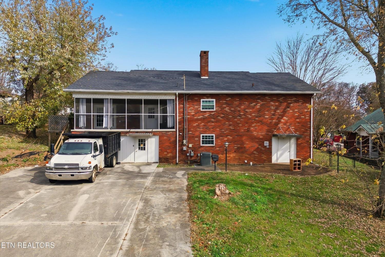 Discover the potential in this charming red-brick split-level home in Lenoir City. A welcoming covered front porch sets the tone as you step into a large, bright living area featuring a cozy fireplace and plenty of natural light. The kitchen offers stainless steel appliances, a double oven, and butcher block countertops—perfect for daily cooking or entertaining. The spacious main bathroom includes tile floors, a double vanity, and a tub/shower combo. The primary bedroom features its own ensuite bathroom with a walk-in shower and a convenient walk-in closet. Enjoy outdoor living on the covered back deck, ideal for relaxing or hosting guests. The full walkout basement adds even more versatility, complete with a bar area, a brick fireplace, a full bathroom, a laundry room, and abundant storage space. With solid bones and room to personalize, this home is full of opportunity for its next owner.
