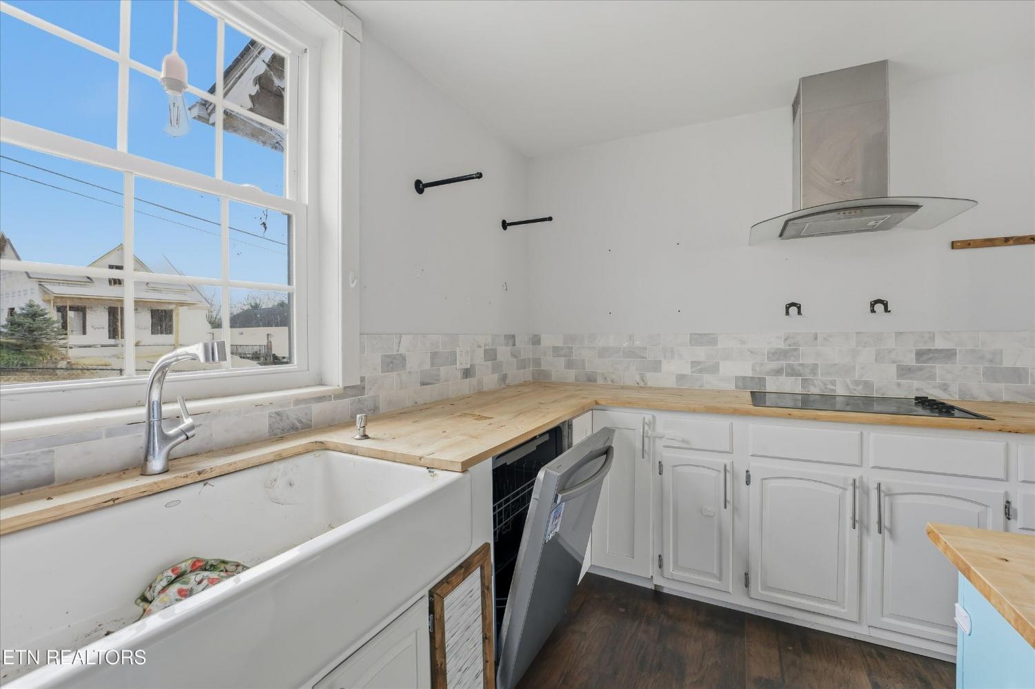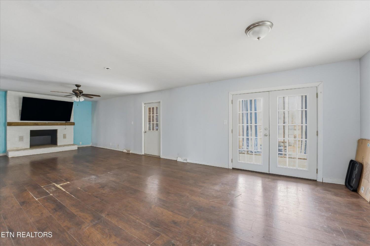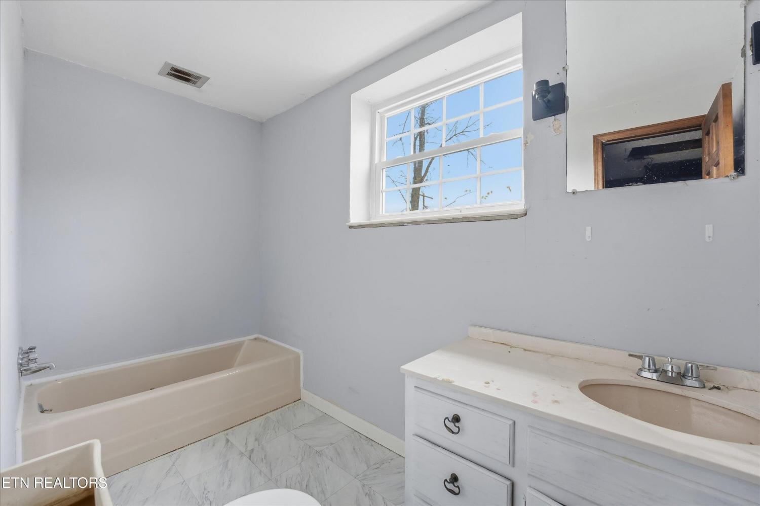 Discover the potential in this charming red-brick split-level home in Lenoir City. A welcoming covered front porch sets the tone as you step into a large, bright living area featuring a cozy fireplace and plenty of natural light. The kitchen offers stainless steel appliances, a double oven, and butcher block countertops—perfect for daily cooking or entertaining. The spacious main bathroom includes tile floors, a double vanity, and a tub/shower combo. The primary bedroom features its own ensuite bathroom with a walk-in shower and a convenient walk-in closet. Enjoy outdoor living on the covered back deck, ideal for relaxing or hosting guests. The full walkout basement adds even more versatility, complete with a bar area, a brick fireplace, a full bathroom, a laundry room, and abundant storage space. With solid bones and room to personalize, this home is full of opportunity for its next owner.