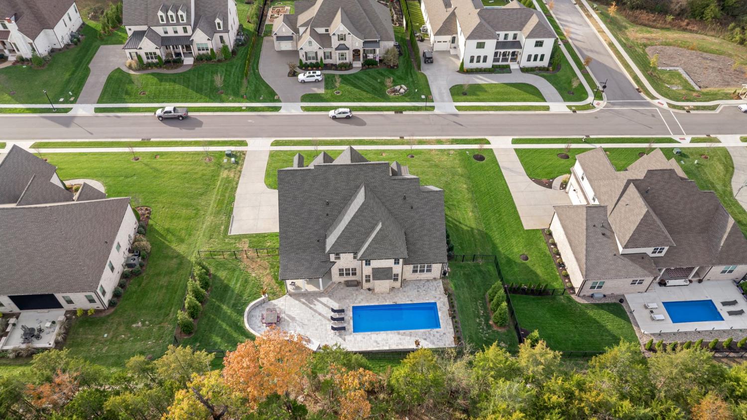 Priced BELOW appraised value and perfectly positioned between Nolensville and Brentwood, this better-than-new luxury residence offers pristine condition, exceptional livability, and rare privacy. The main level features two bedrooms—including a serene primary suite—each with en-suite baths, plus a formal dining room, dedicated office, mudroom, laundry room, and powder bath. The gourmet kitchen is a showpiece with an oversized island, breakfast bar, walk-in pantry, butler’s pantry, built-in Sub-Zero refrigerator/freezer, double ovens, and a 6-burner KitchenAid gas range, all opening into the soaring two-story family room. Upstairs offers exceptional flexibility with four additional bedrooms (all with walk-in closets), three full baths, a spacious loft, and a large bonus/flex room. The sixth bedroom—professionally finished by the owners—includes built-in surround sound and currently serves as a theatre room. Throughout the home, you’ll find stunning Atlantic European Oak flooring—no carpet anywhere—along with 21+ custom motorized blinds and window treatments. Outdoor living is equally impressive: a covered porch with Sundek flooring, a 14.5' x 37.5' inground pool, expansive Belgard paver patio, and a full outdoor kitchen with gas grill, refrigerator, and storage. The fully fenced backyard offers mature landscaping for privacy and includes two Klipsch AWR-650-SM indoor/outdoor speakers for premium sound. Additional highlights include a 3-car garage, irrigation on the front and sides, and a private wooded lot backing to an extra 50-ft natural buffer. With nearly $300K in thoughtful enhancements, this home offers luxury, space, and complete turnkey living—ready for you.