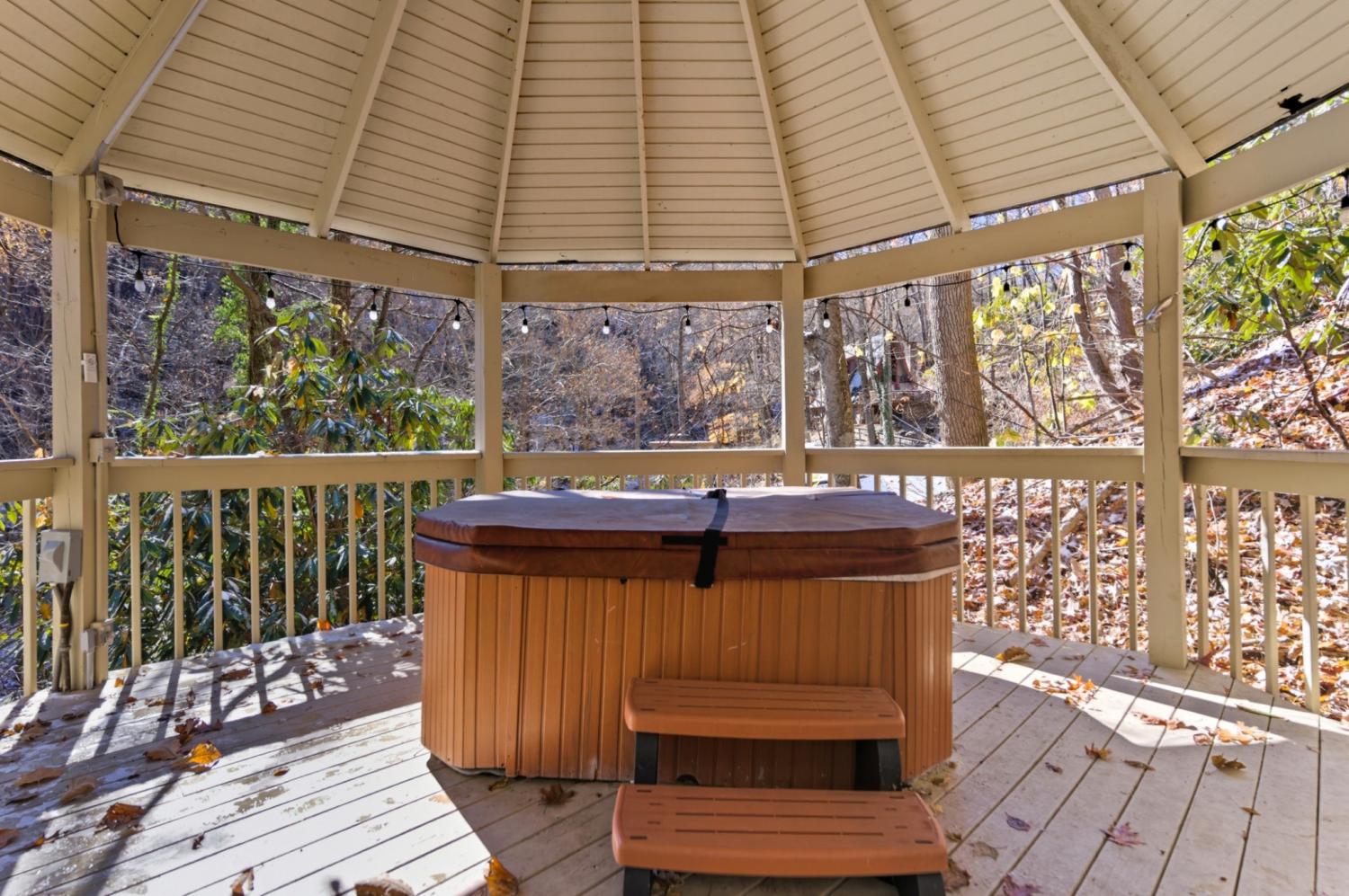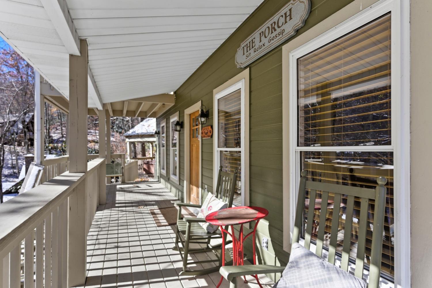 Perched on a private lot in Gatlinburg, this cabin chalet is fully immersed in awe-inspiring natural beauty & has proven itself to be a profitable vacation Airbnb rental, showcasing an impressive history of earning potential as a savvy investment. With its fantastic location just minutes from the main Parkway, downtown Gatlinburg, various dining and shopping options, this serene getaway offers a perfect fusion of tranquility & convenience. Imagine waking up in one of three appointed bedrooms, each with its own cozy fireplace, in this home that also features three & a half baths and comes fully furnished. The open floor plan + fully equipped kitchen are tailor made for family & group gatherings. The exterior is a nature lover’s paradise, with spacious rocking chair covered porches, a covered gazebo with a hot tub, all perfectly positioned to relax & take in the tranquil views of the surrounding woods & stream. Inquire today about this unique investment situated in the Smokey Mountains! As part of the Chalet Village Resort, you can enjoy an array of amenities, including three swimming pools, tennis courts, walking trails, fitness center and multiple clubhouses all just moments away. Per owner - gross income from rental is $40K per year.