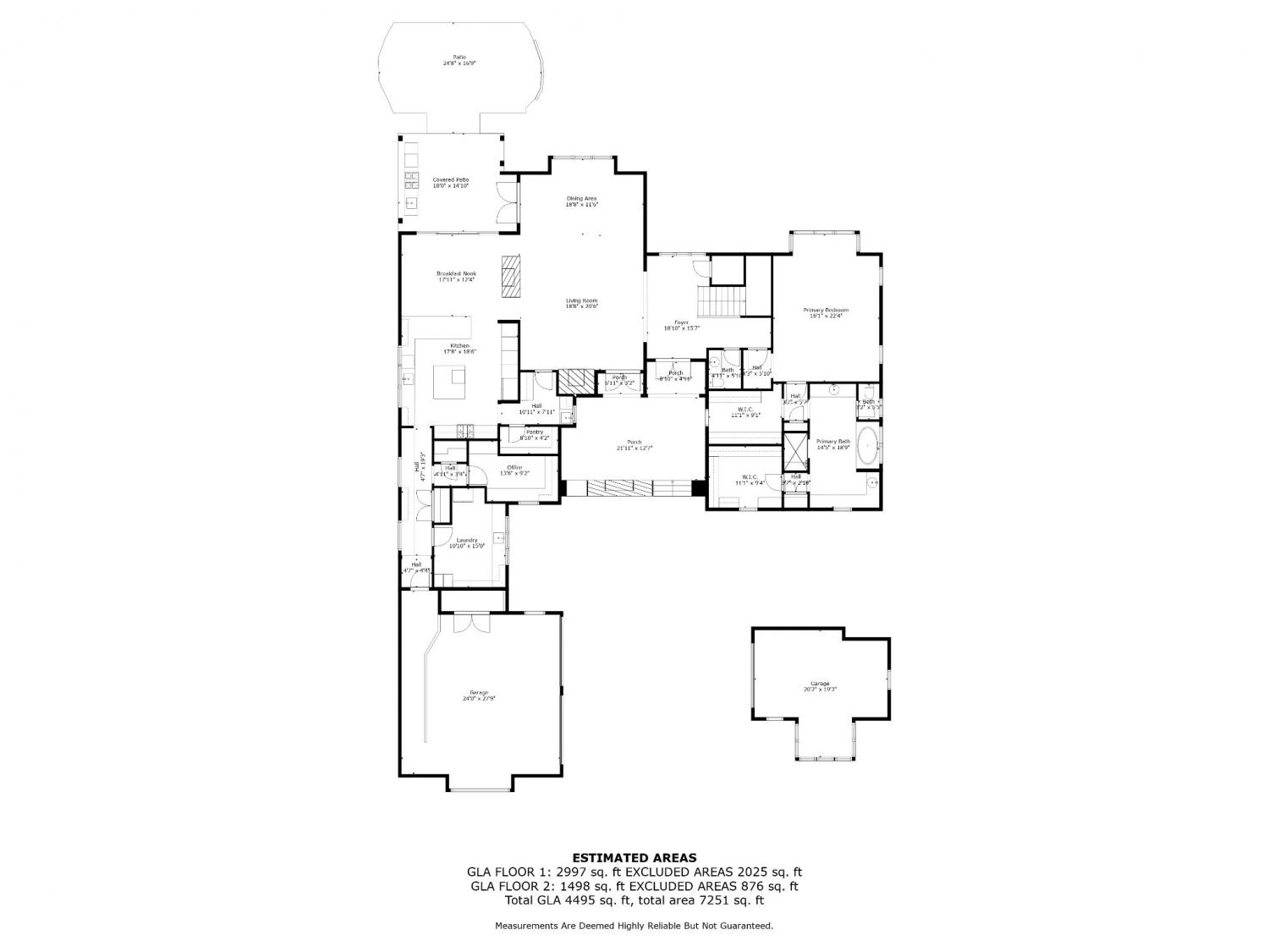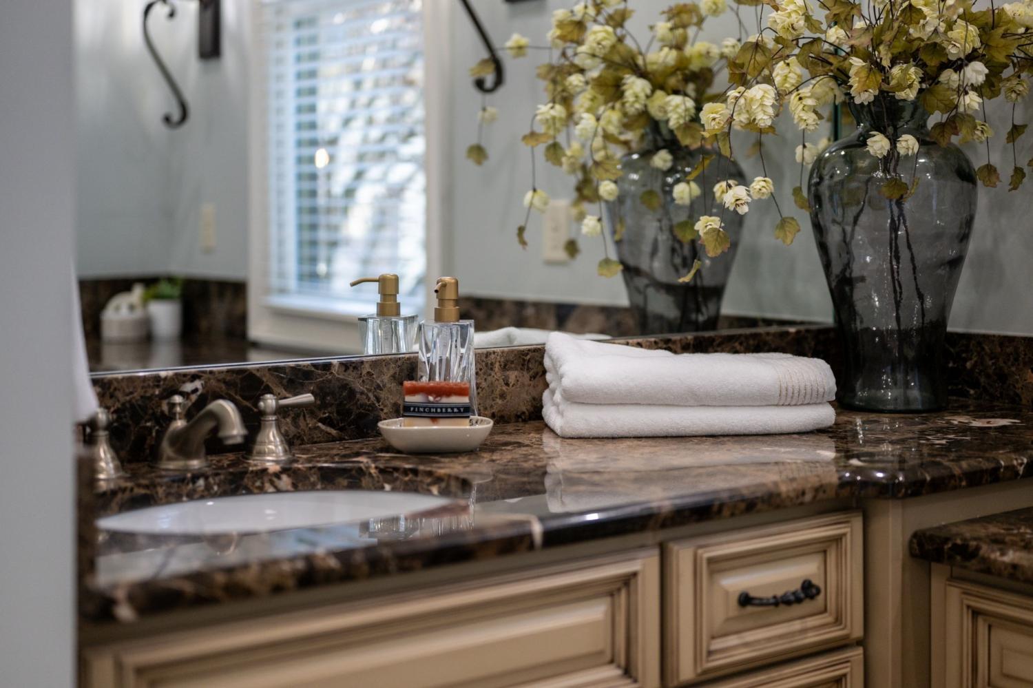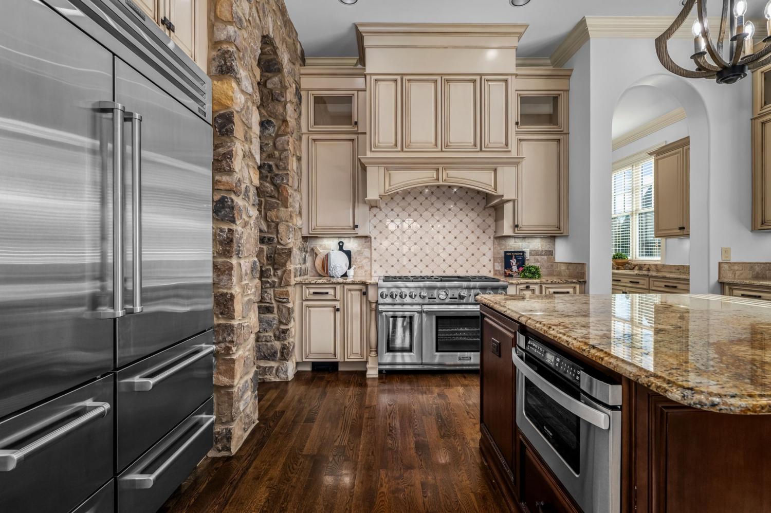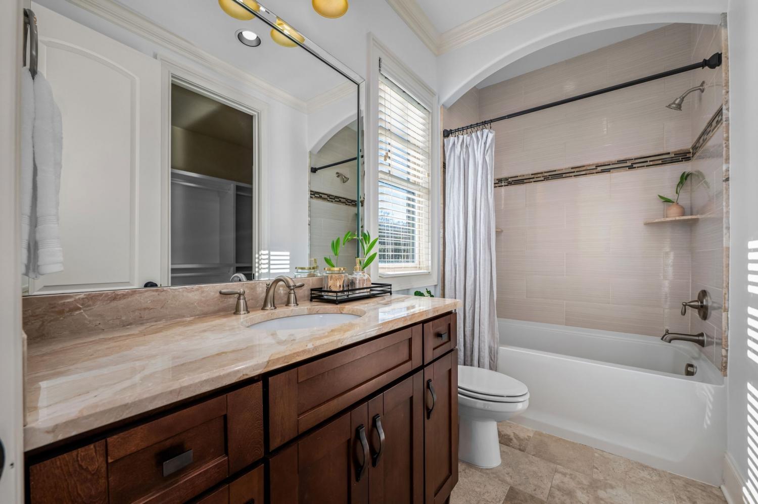 MOTIVATED SELLER-PRICED TO SELL! Come experience Luxurious Living in The Grove in the amazing gated golf community. This gorgeous home is the entertainer's showplace-timeless, elegant & modern luxuries by Hidden Valley Homes & must see in person to appreciate. As you approach, you're greeted by stone pillars w/gas lamps & charming front courtyard, perfect for relaxing or entertaining guests, complete w/ a cozy fireplace that creates a warm, inviting ambiance. That's all before you step inside either set of beautiful arched wood and glass double doors. You will discover the elegance of the spacious open floor plan, highlighted by a first-floor primary suite designed for ultimate privacy and convenience. This exquisite home features not only an attached oversized two-car garage with closet and storage area but also a separate detached heated & cooled garage w/380sf that could easily be a 4th bedroom w/ full bath, in-law suite, teen suite, private office, a workout room, studio or delightful potting shed. The Primary Suite with sitting area has vaulted ceilings, beautiful wood beam, plenty of natural light and the primary bath and 2 custom built-in walk-in closets are a dream! The chef's kitchen has cabinets to the ceiling, also beautiful glass display cabinets, Sub-Zero fridge, Thermador gas range w/6 burners, griddle & dessert oven. What kitchen wouldn't be complete without a butler's pantry w/sink, beverage fridge, cabinets and 2 countertops-one for coffee bar and actual bar, plus walk-in pantry AND 20' long hallway of additional cabinets for all of your entertaining dishes & decor. The office has natural light, plenty of cabinets and granite. Every corner of the villa is designed to impress. You won't believe the storage space in the 2 massive walk-out attics upstairs. Don’t miss the opportunity to experience this beautifully upgraded home firsthand! Detached Garage has 380sf and could easily be converted to a 4th bedroom with bathroom. Schedule your showing today!
