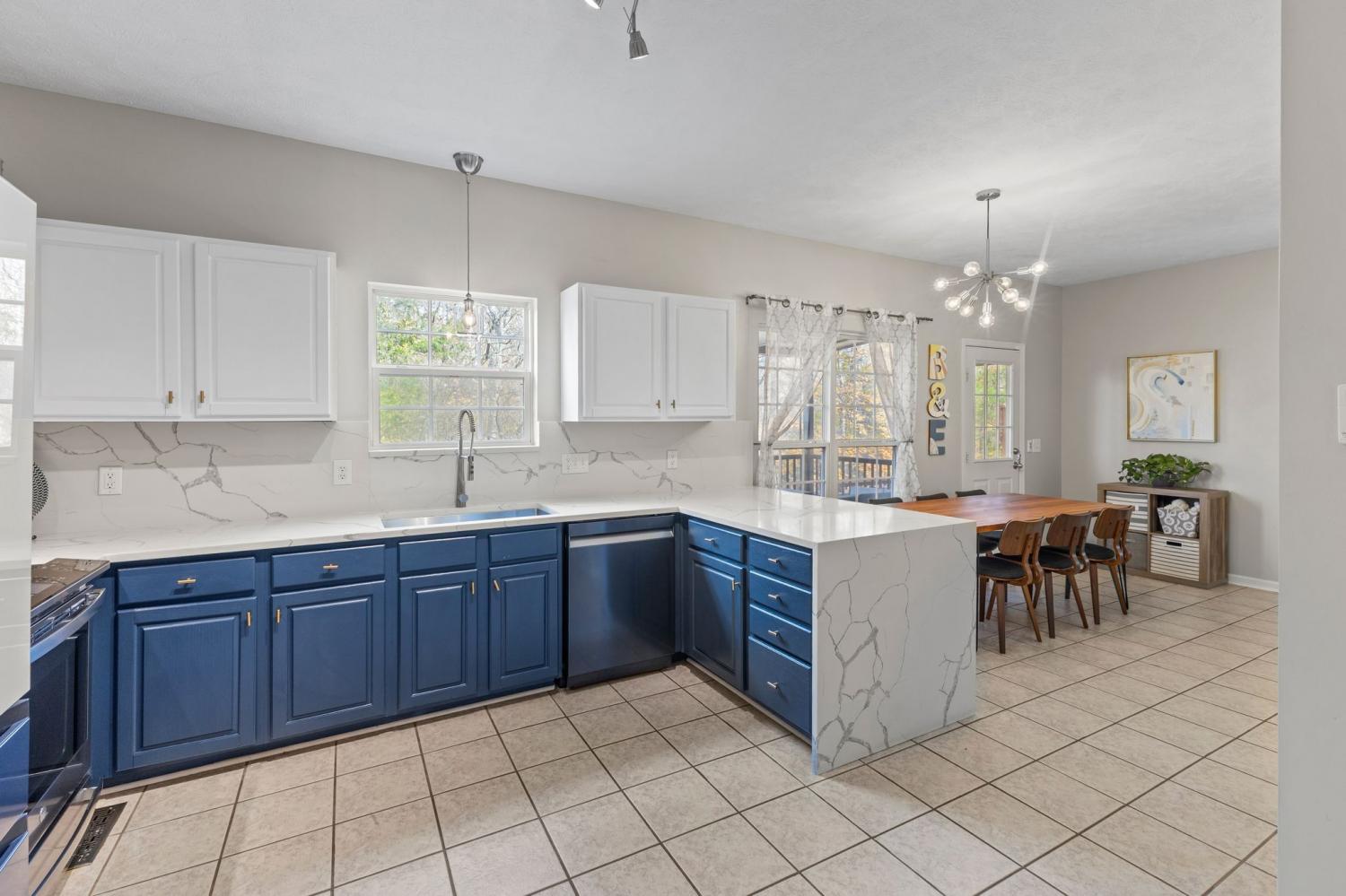 FABULOUS INSIDE AND OUT!!! Beautifully renovated and meticulously maintained home with modern high-end finishes~Spacious great room with fireplace flows seamlessly into the dining room, and into the RENOVATED eat-in kitchen with painted cabinetry, quartz countertop and backsplash, new appliances, and 2 pantries~Private primary suite with trey ceiling, and NEW well appointed spa worthy bath with double sink vanity, and tiled shower~2 additional bedrooms with extra large closets, full bath, newly designed rec room with vaulted ceiling, and large laundry room (could be additional bedroom or office) round out the upstairs~Awesome outdoor living area with screened porch, and deck to relax and entertain, backing to mature tree line creating privacy~Neutral decor with tasteful accents, new lighting, and abundance of natural light throughout~Ideal location minutes to shopping, dining, easy interstate access, and sidewalks to Indian Creek Park~Exceptional Home!!!