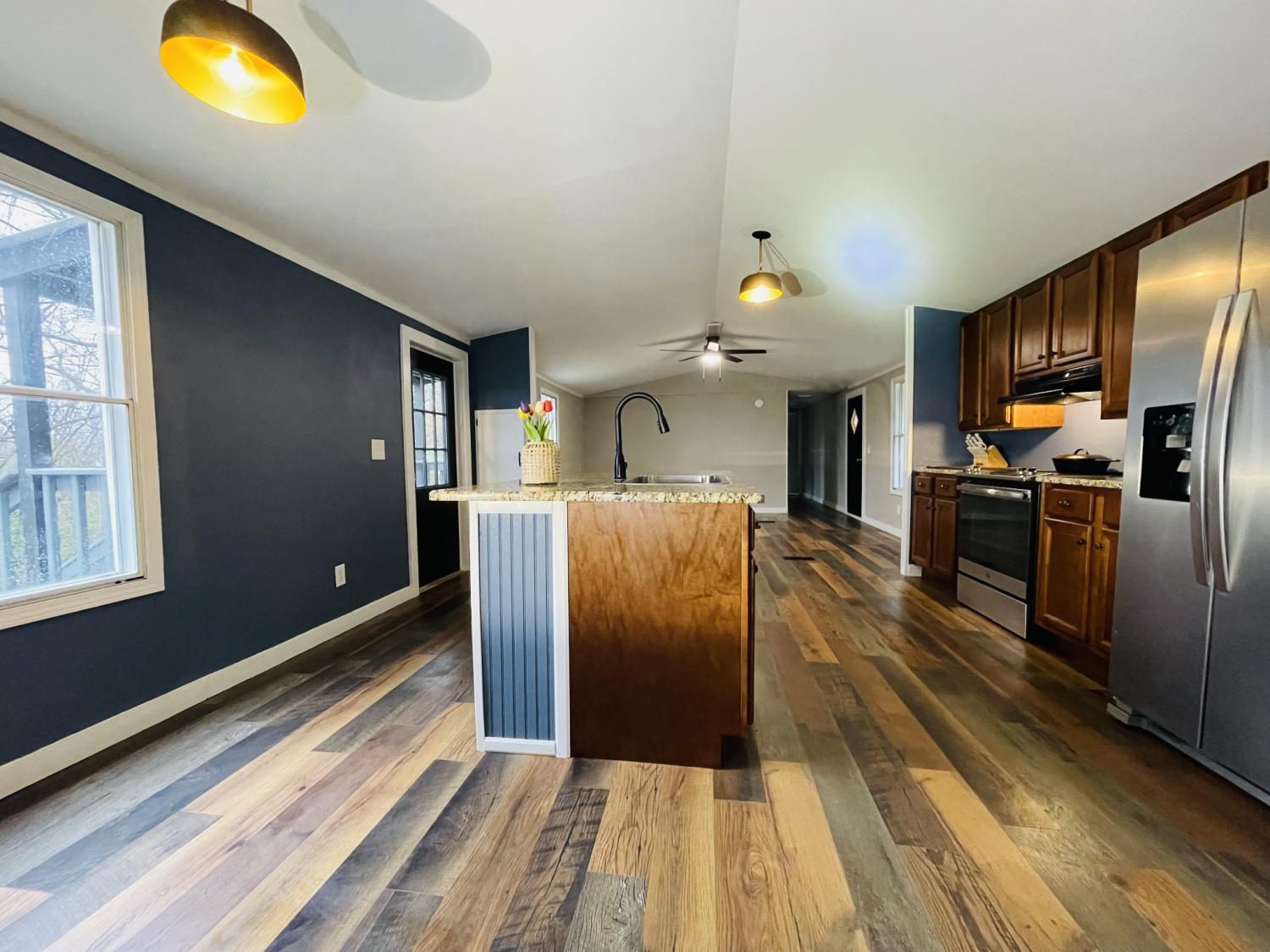 This 3-bedroom, 2-bath home is completely move-in ready! Updates include a new roof, new HVAC, new flooring with carpet and waterproof laminated wood, and fresh paint throughout. Both bathrooms have been completely remodeled, and the large master suite features a walk-in closet, separate ceramic tile shower, and free-standing soaker tub. The kitchen offers solid wood cabinets, granite countertops, stainless steel appliances, a large island, and modern fixtures. The open-concept kitchen, dining, and living area creates a bright, seamless flow designed for comfortable, convenient, and enjoyable everyday living. Enjoy front and back covered decks with composite decking, a concrete driveway, and a small storage shed in the backyard. The property sits on a flat, spacious lot with a generous front yard and a large, open backyard—perfect for gardening, play, pets, or simply relaxing in nature. Conveniently located just 20 minutes from Clarksville in historic Cumberland City, TN, this clean home is turn-key and provides a charming small-town feel while combining comfort, style, and convenience.