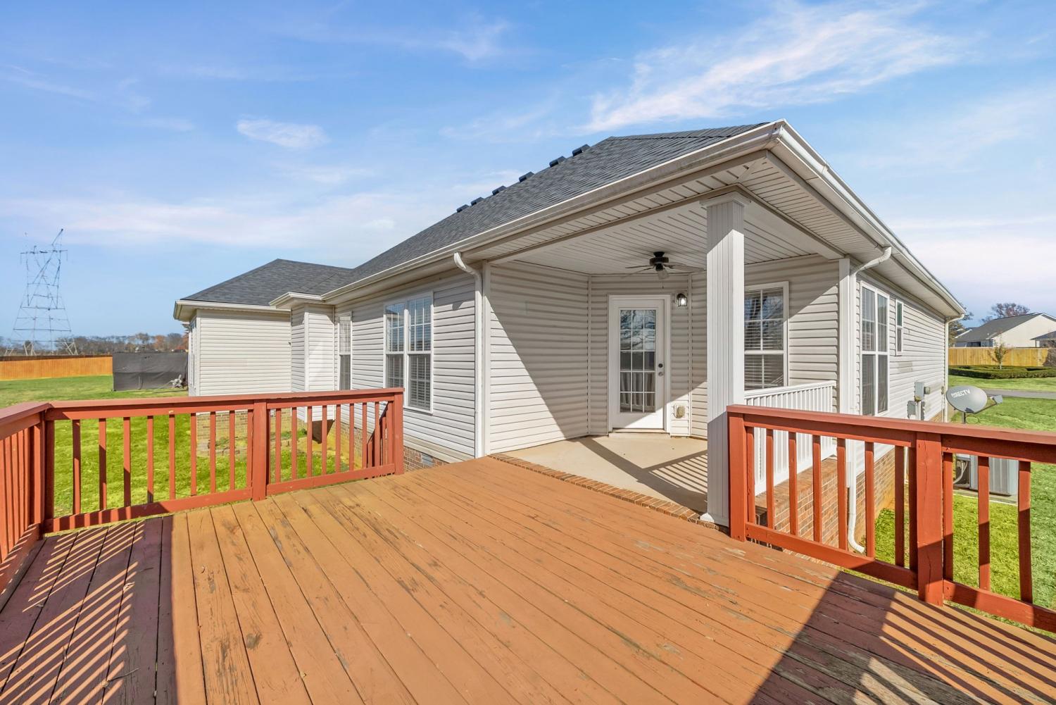 Charming Ranch-Style Home with Bonus Room & Modern Upgrades Welcome home to this beautifully maintained ranch-style property featuring a spacious bonus room and timeless real hardwood flooring throughout the entry foyer, family room, eat-in kitchen, and formal dining room. The thoughtful split-bedroom layout offers privacy, with the primary suite boasting a large walk-in closet, double sink vanity, and a separate garden tub and shower. The bright eat-in kitchen is designed for both functionality and style, offering abundant cabinet and counter space, stainless steel appliances, granite countertops, and a stylish tile backsplash. Enjoy outdoor living on the covered back porch or the open deck overlooking the backyard—complete with a convenient storage shed. Additional highlights include a brand-new roof installed in 2025. Located just minutes from I-24, this home provides quick access to shopping, restaurants, and everyday conveniences. It's also perfectly situated for commuters traveling to Nashville, Fort Campbell, or Hopkinsville. This move-in-ready home can be yours...call for your private showing of this lovely home.