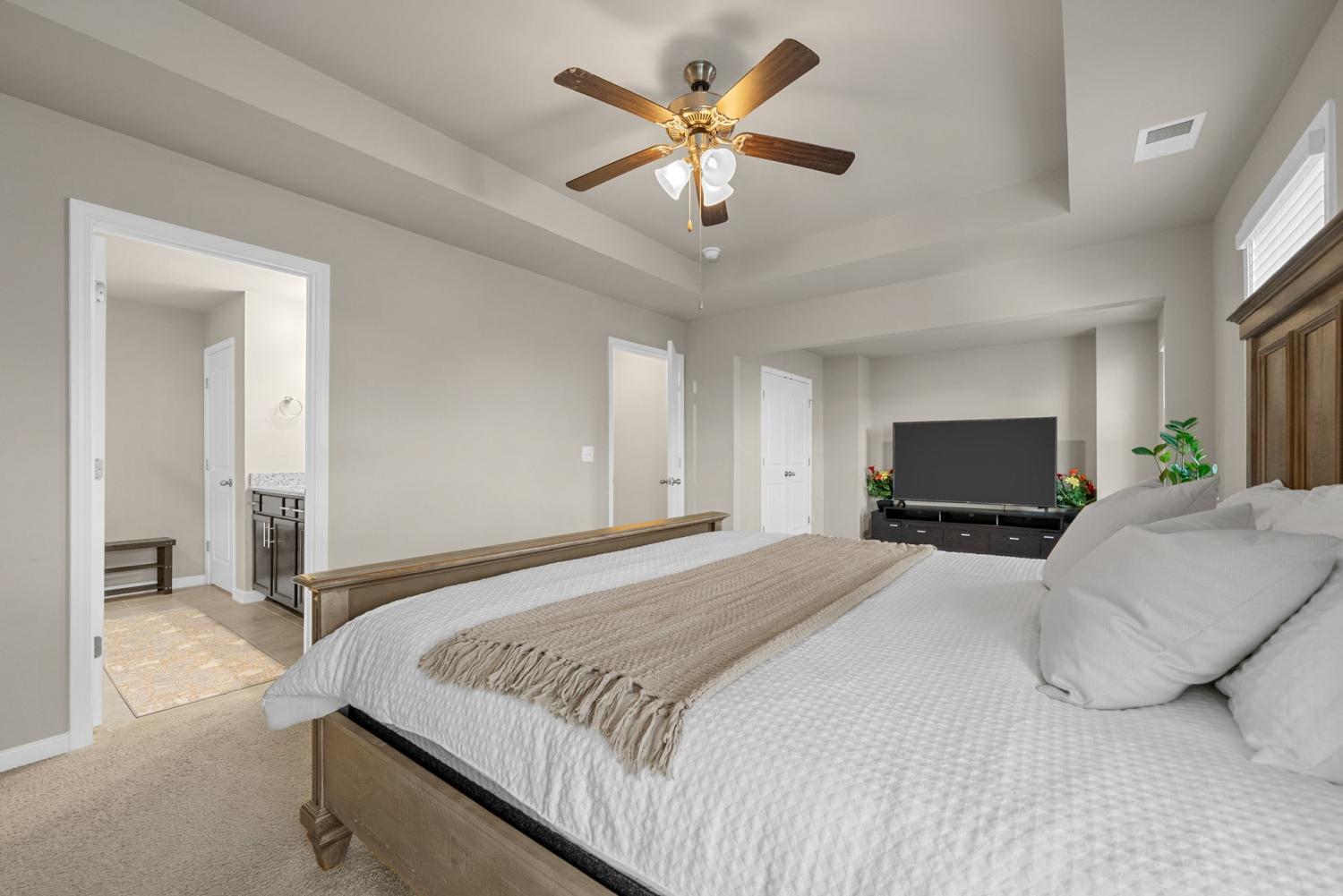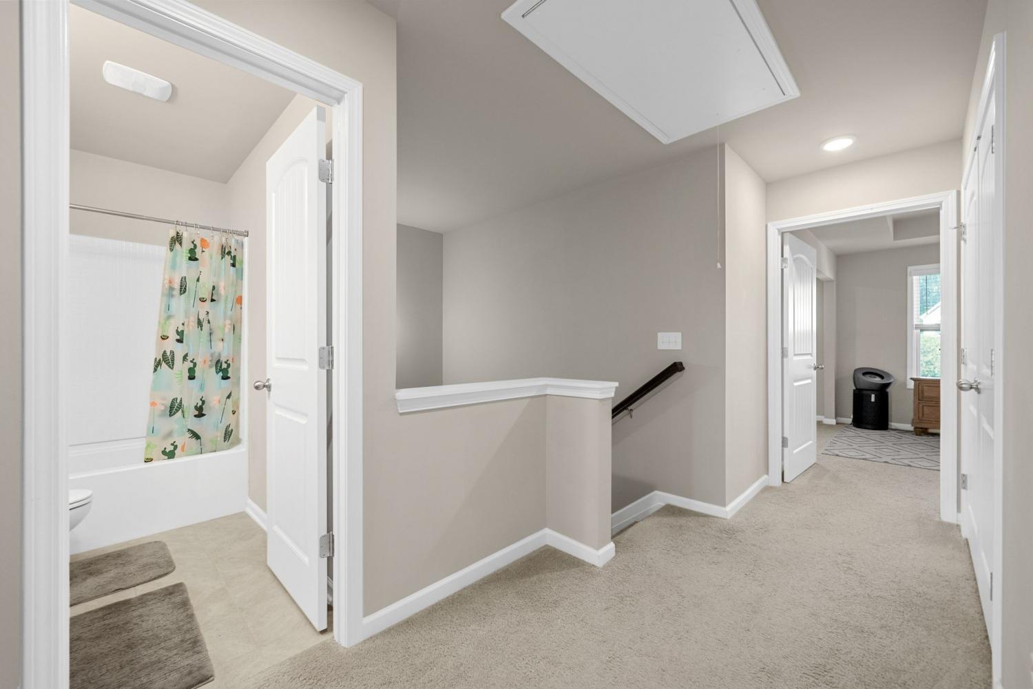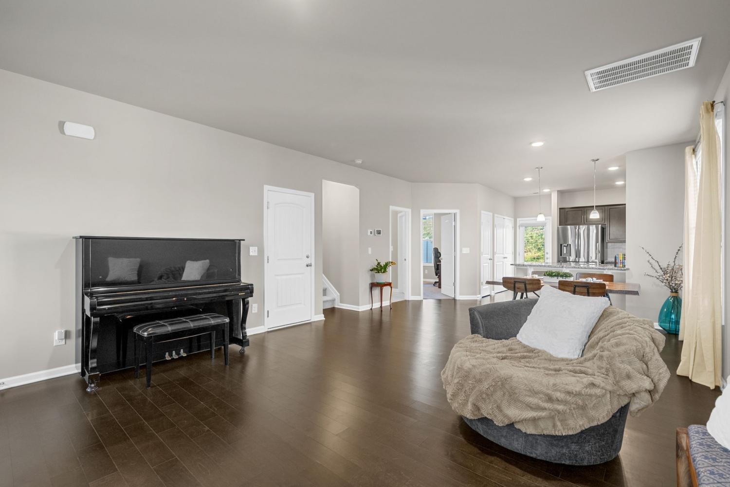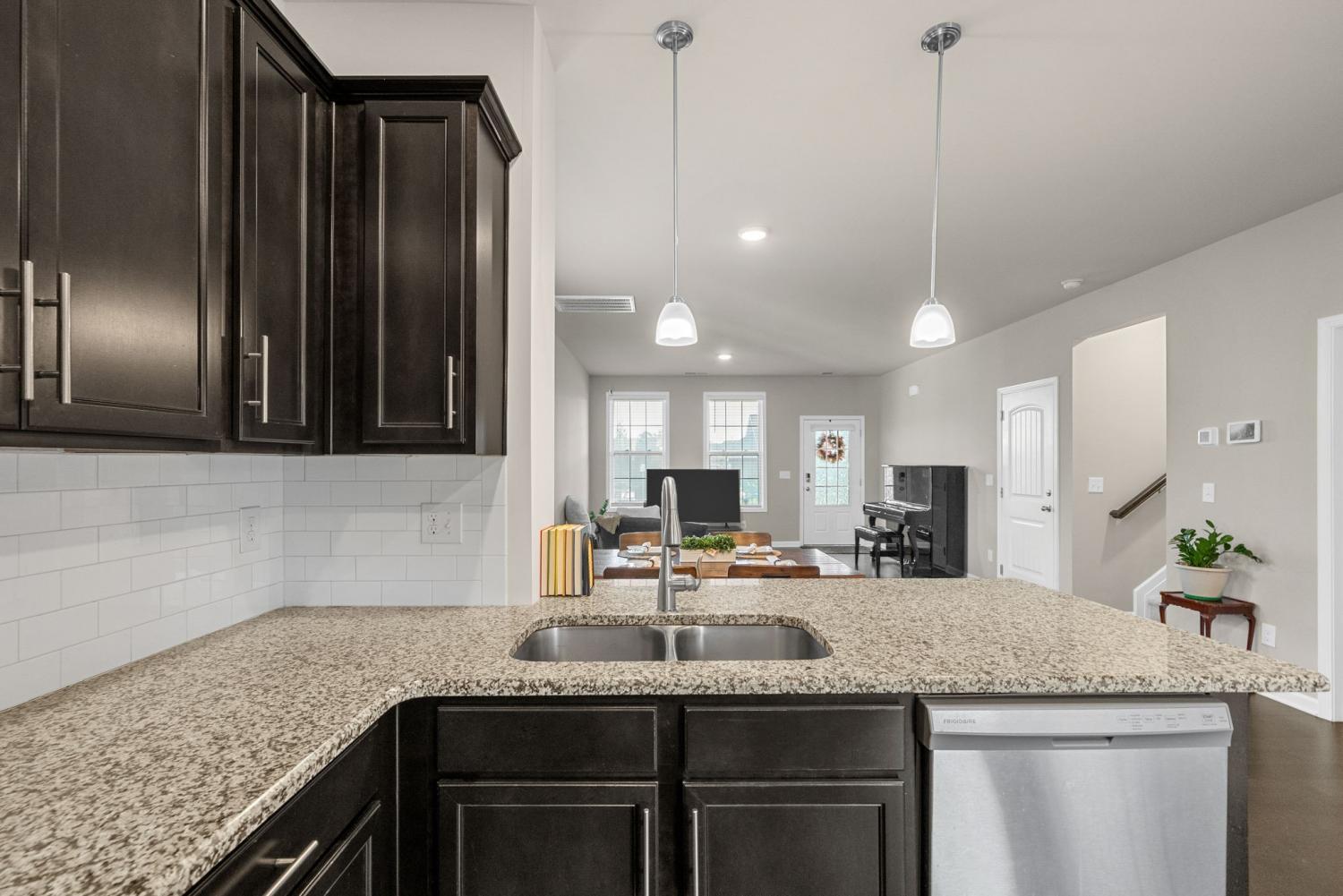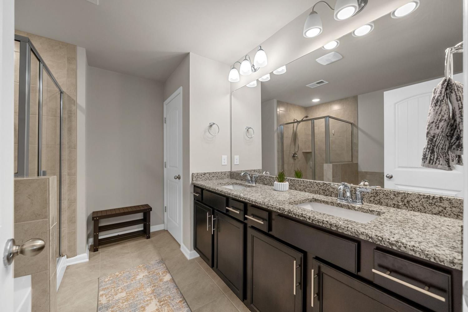 Welcome to this elegant end-unit townhome in the highly desirable Woodmont community! The open floor plan features hardwood floors, granite countertops, tile backsplash, and stainless steel appliances. A main-level guest suite with a full bath offers flexibility for visitors, a home office, or multi-generational living. Upstairs, the spacious primary suite includes vaulted ceilings, a walk-in closet, double vanities, a soaking tub, and a tiled shower. Enjoy maintenance-free living with the HOA covering exterior upkeep, lawn care, and pool access. Just steps from the community pool and guest parking—super convenient for you and your guests! Ideally located just minutes from I-24, shopping, dining, and Paul Johns Park.