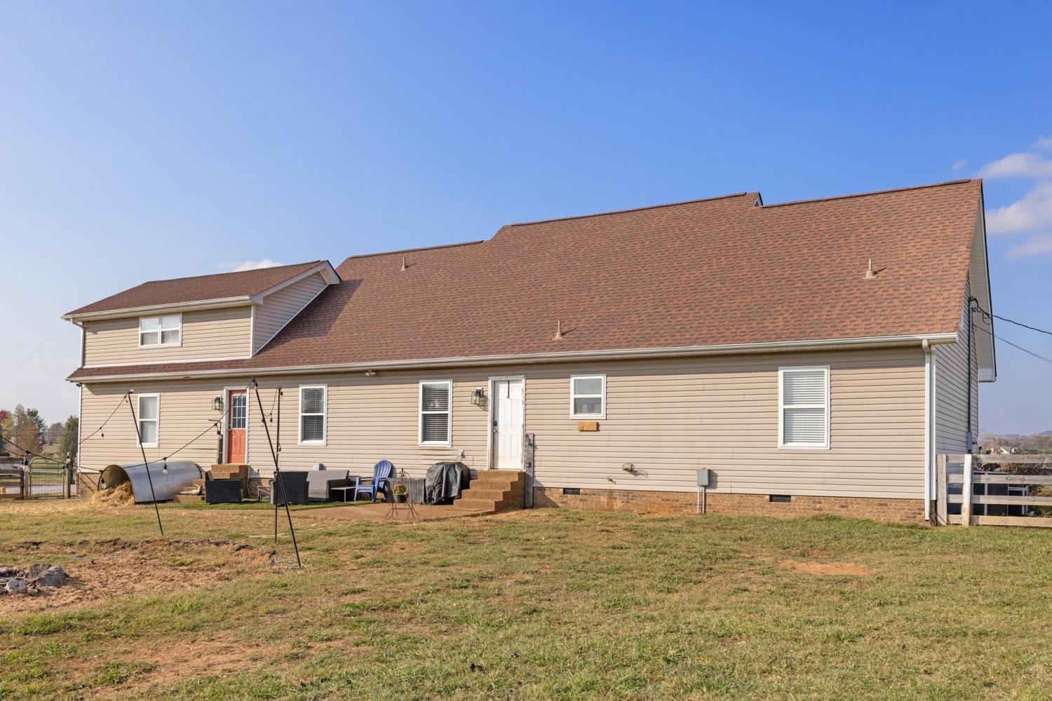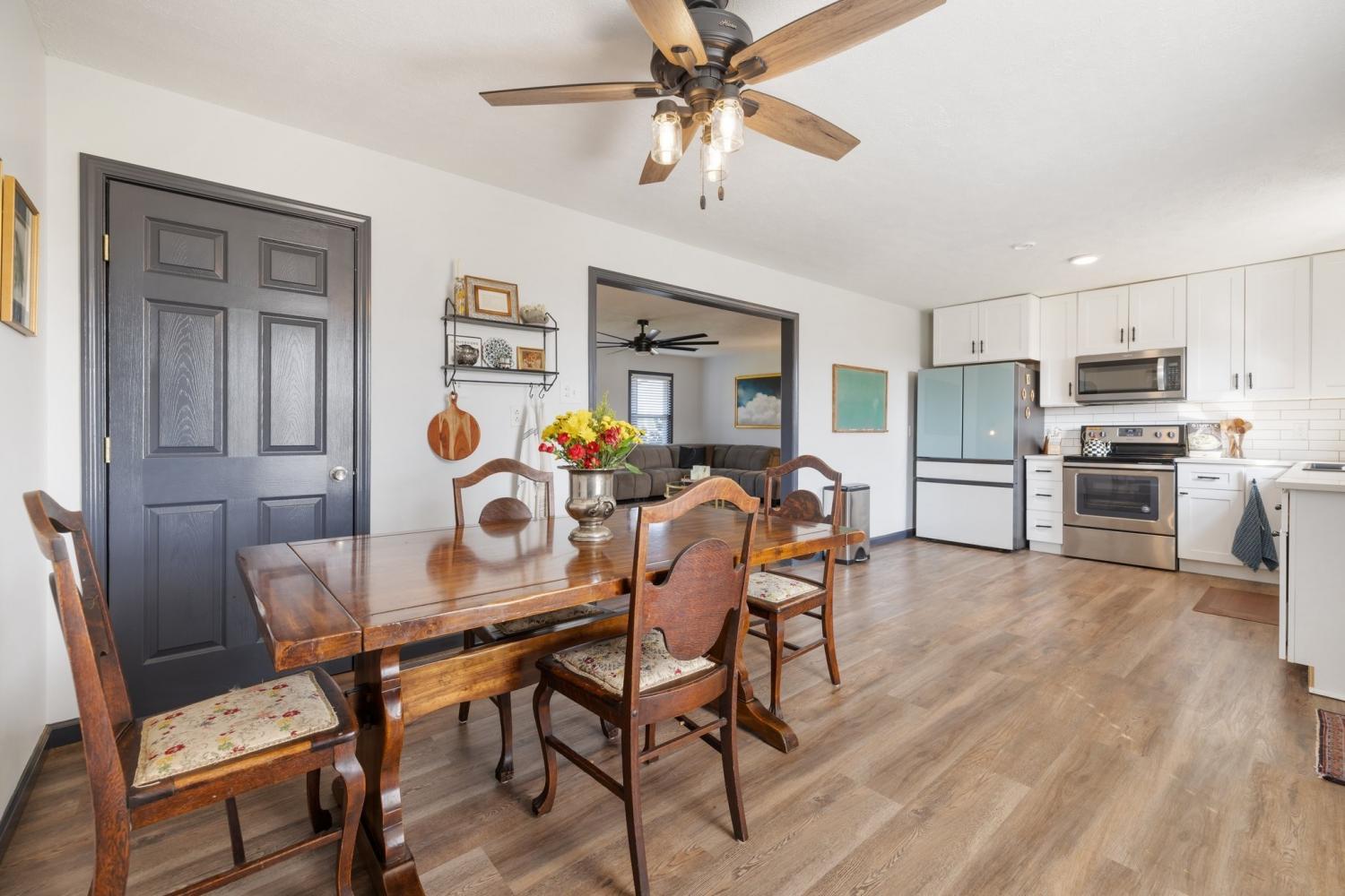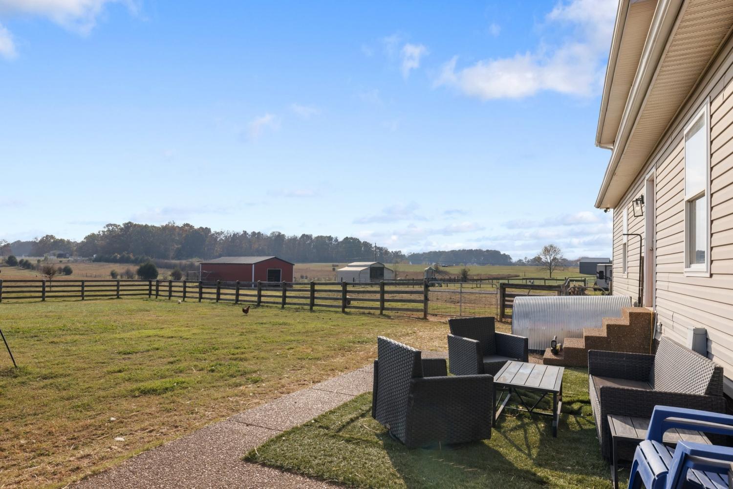 Welcome to this charming 4-bedroom, 3-bathroom home at the end of a quiet cul-de-sac. Laminate floors span the entire house, providing a cohesive and easy-care finish. Enjoy tranquil sunsets from the patio or a sunrise from the rocking chair front porch. Explore the outdoors with your own fenced property, ideal for livestock and animals. Has well but on county water. A spacious barn with stalls adds extra functionality, making this property perfect for those wanting a slice of country life. This property combines rural charm with modern comfort—a peaceful retreat you'll be proud to call home.