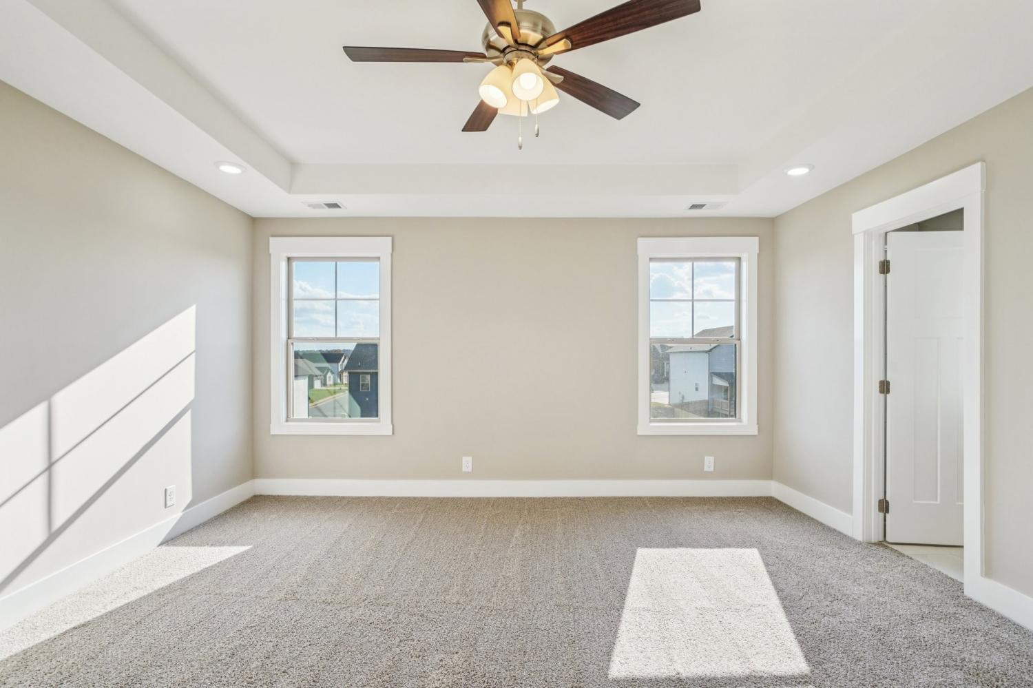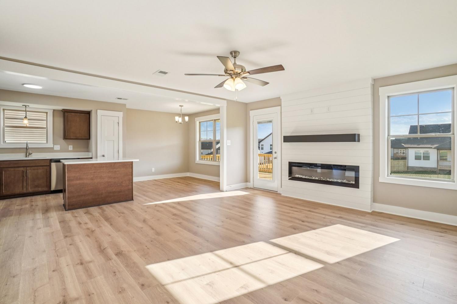 Ready to move in new construction two level home located in the desirable Cardinal Creek subdivision in Clarksville, TN. This 5 bedroom, 3 bathroom Kash floor plan boasts a spacious open floor plan that is a perfect blend of comfort and style. As you step inside you'll be greeted by the inviting interior featuring large bedrooms and modern finishes throughout. The kitchen is a chef's dream with sleek granite or quartz countertops, island, custom cabinetry and stainless steel appliances. The spacious pantry and additional storage spaces provide ample room for all your culinary needs. Entertain guests in the eat-in kitchen area or formal dining room. The living areas are adorned with soaring high ceilings and luxurious vinyl plank flooring creating a warm and welcoming ambiance. Relax and unwind in the cozy living room, featuring a fireplace for those chilly evenings. The primary suite offers a peaceful, spa-like retreat with trey ceiling, a whirlpool soaking tub, spacious separate shower, double vanities, tile flooring and two extra large walk in closets. Additional bedrooms upstairs with walk in closets provide ample space for family or guests. Outside offers a beautifully sodded yard and covered front porch and covered back deck, providing the ideal setting for outdoor gatherings and entertaining. The epoxied 2-car garage provides ample space for parking and storage. Additional highlights include a spacious laundry room with extra storage closet. Community amenities such as sidewalks and streetlights enhance the lifestyle here. With high speed internet available this home is ready for modern living. Located centrally in Clarksville with access to Fort Campbell Kentucky, Austin Peay University, Downtown Clarksville, Interstate 24, Top Rated Schools, Billy Dunlop Park and Shopping within minutes! Don't miss your opportunity to be part of this evolving community. Builder is offering a generous $17,500 credit to use anyway you want!