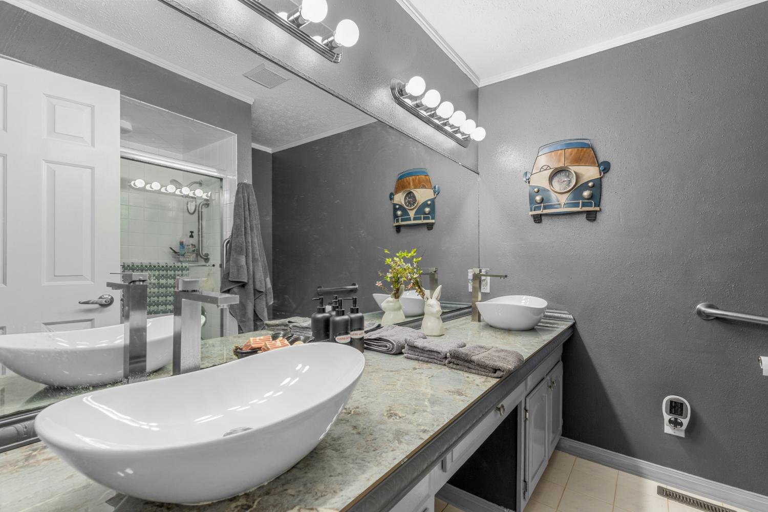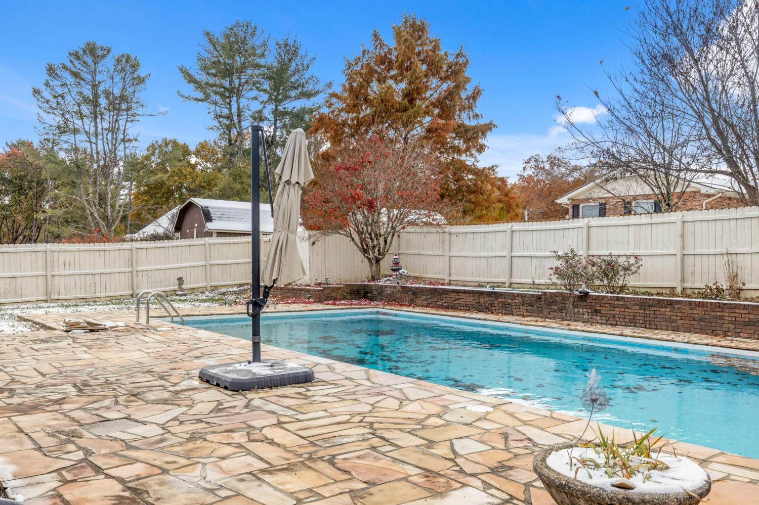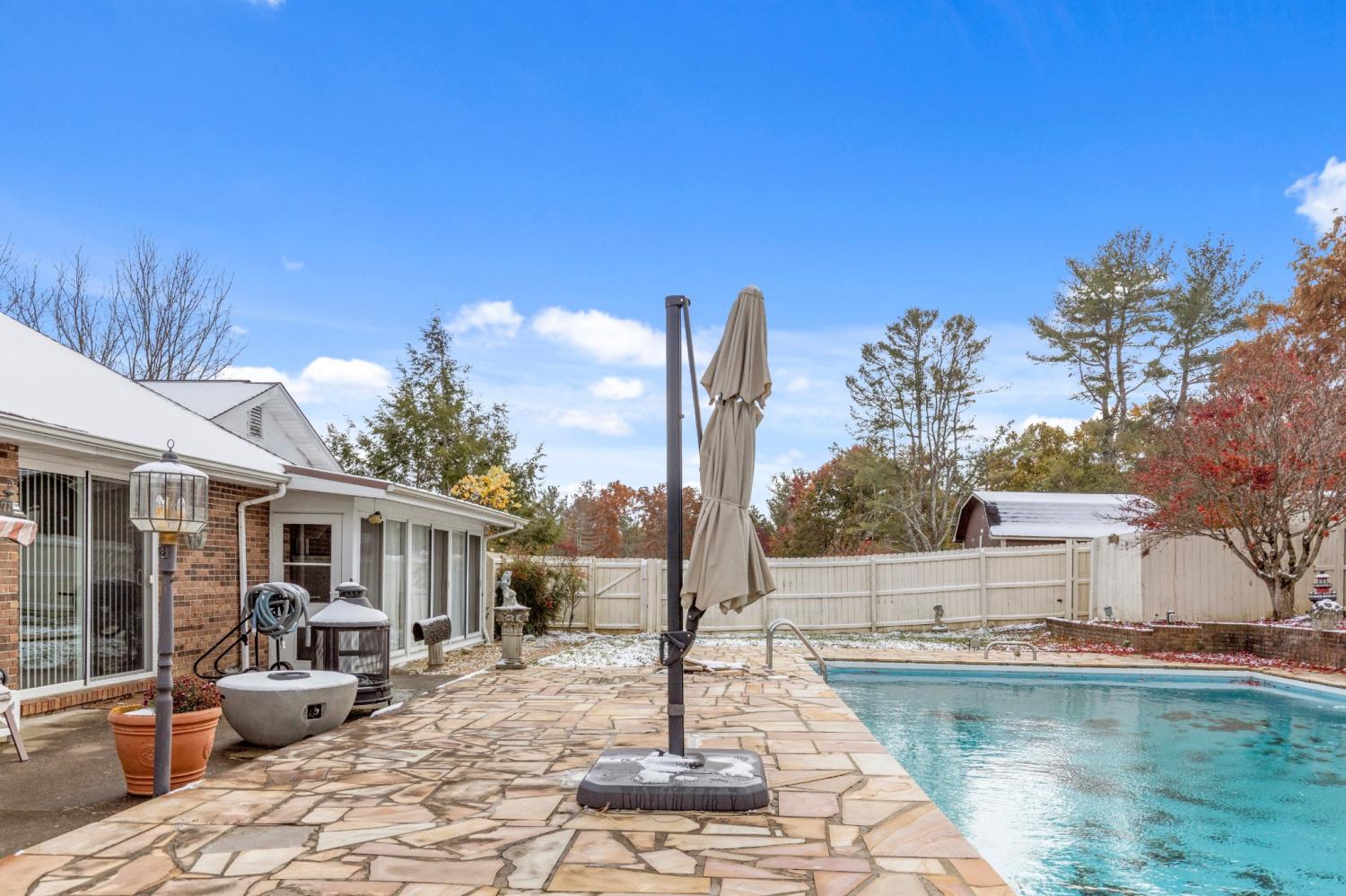 Welcome to 341 Roma Drive, a stunning all-brick, one-level home on 1.06 acres in the highly desired and peaceful Volunteer Heights community. With only about 40 custom homes each on an acre or more this secluded neighborhood is beautifully maintained, exceptionally quiet, and one of the nicest areas in Crossville. This 3-bedroom, 2.5-bath home offers a fantastic floor plan designed for comfort, easy maintenance, and effortless entertaining. The living areas flow naturally, including a spacious living room with a bay window and gas fireplace, a formal dining room with wainscoting, a cozy den with its own fireplace and access to the pool, and an open kitchen with custom cabinetry and a casual dining area. A large rec/craft room provides built-in bookcases and space for hobbies or work. The primary suite features hardwood floors, French doors to the sunroom, and a beautifully remodeled bath with a walk-in tile shower. Two additional remodeled baths are handicap-friendly, and the bedrooms are thoughtfully separated from the main living spaces for added privacy. A bright sunroom overlooks the pool and patio, offering year-round enjoyment. The saltwater pool is well maintained with a new pump, filter, salt generator, solar cover, and robot cleaner. The property also includes two storage buildings, mature magnolia trees, and beautifully landscaped grounds. Ample parking accommodates vehicles, a boat, or an RV. City water is supplemented by a private well that's perfect for gardening. Located just minutes from the hospital, shopping, and Crossville's many golf courses, the home benefits from cooler summer temperatures thanks to its bluff-top setting and a warm, friendly neighborhood atmosphere. This exceptional home offers comfort, space, and a beautiful setting in one of Crossville's most desirable communities.