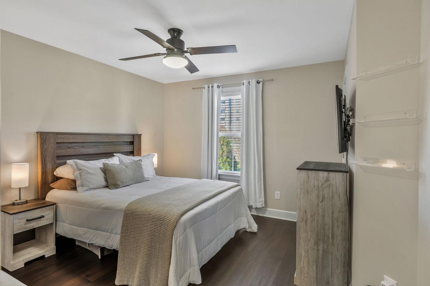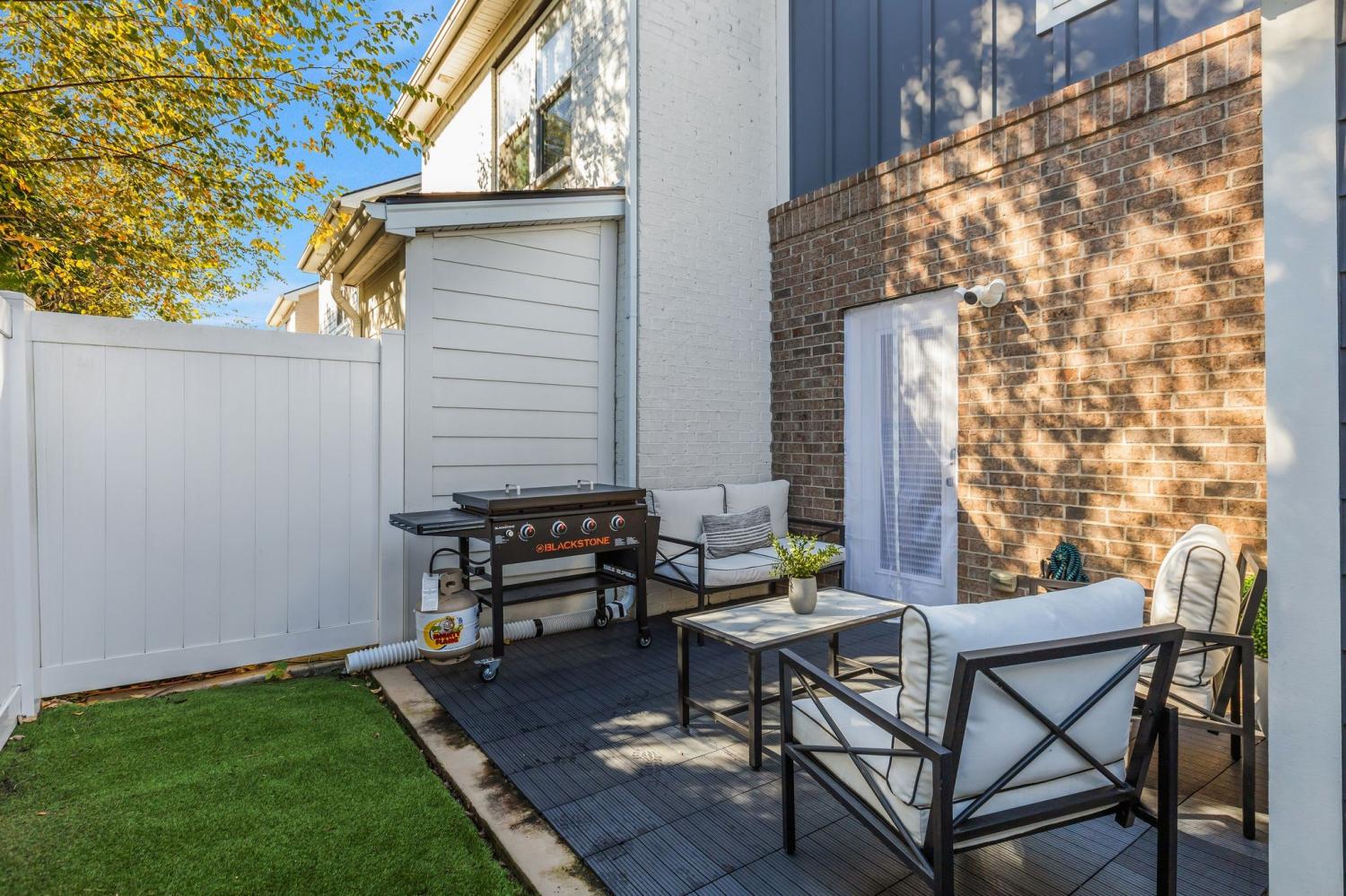 Immaculate corner unit with neutral colors and beautiful natural light throughout. Ideally positioned facing Charlotte Pike and just steps from guest parking and the community dog park. Enjoy gorgeous flooring, an eat-in kitchen with stainless steel appliances (all appliances and washer/dryer included), and a convenient office nook by the back door. Both bedrooms feature private en-suite baths. Outdoor living is a standout with a covered front porch and a fenced backyard—perfect for pets—enhanced with deck tiles and turf. Smart home upgrades include Nest x Yale smart locks on both doors and a smart floodlight camera overlooking the backyard. Additional updates include a brand-new water heater installed in 2024 and upstairs flooring. Lovingly maintained and move-in ready. 1% lender credit with use of preferred lender.
