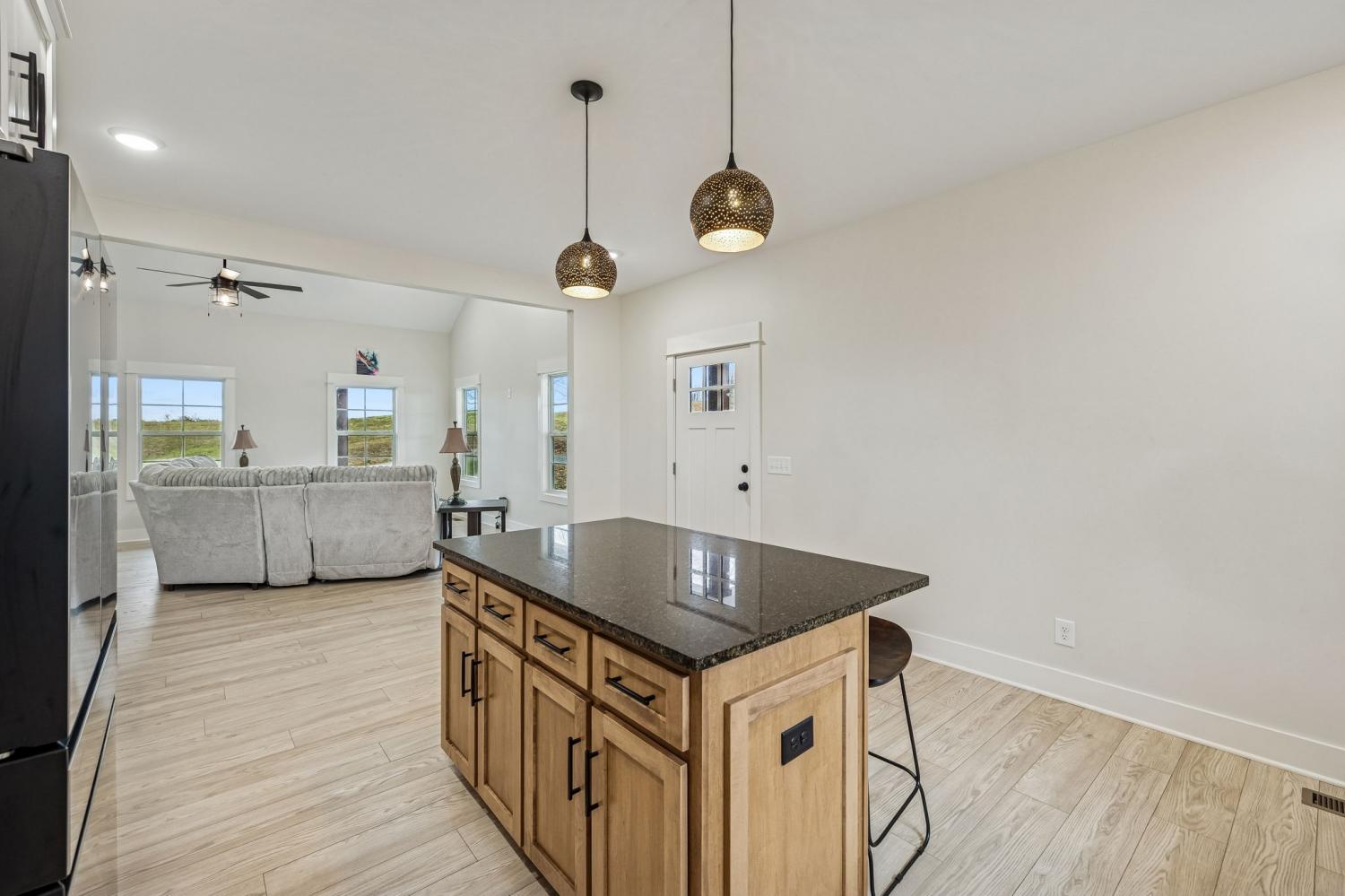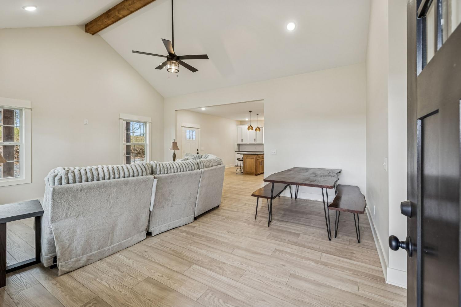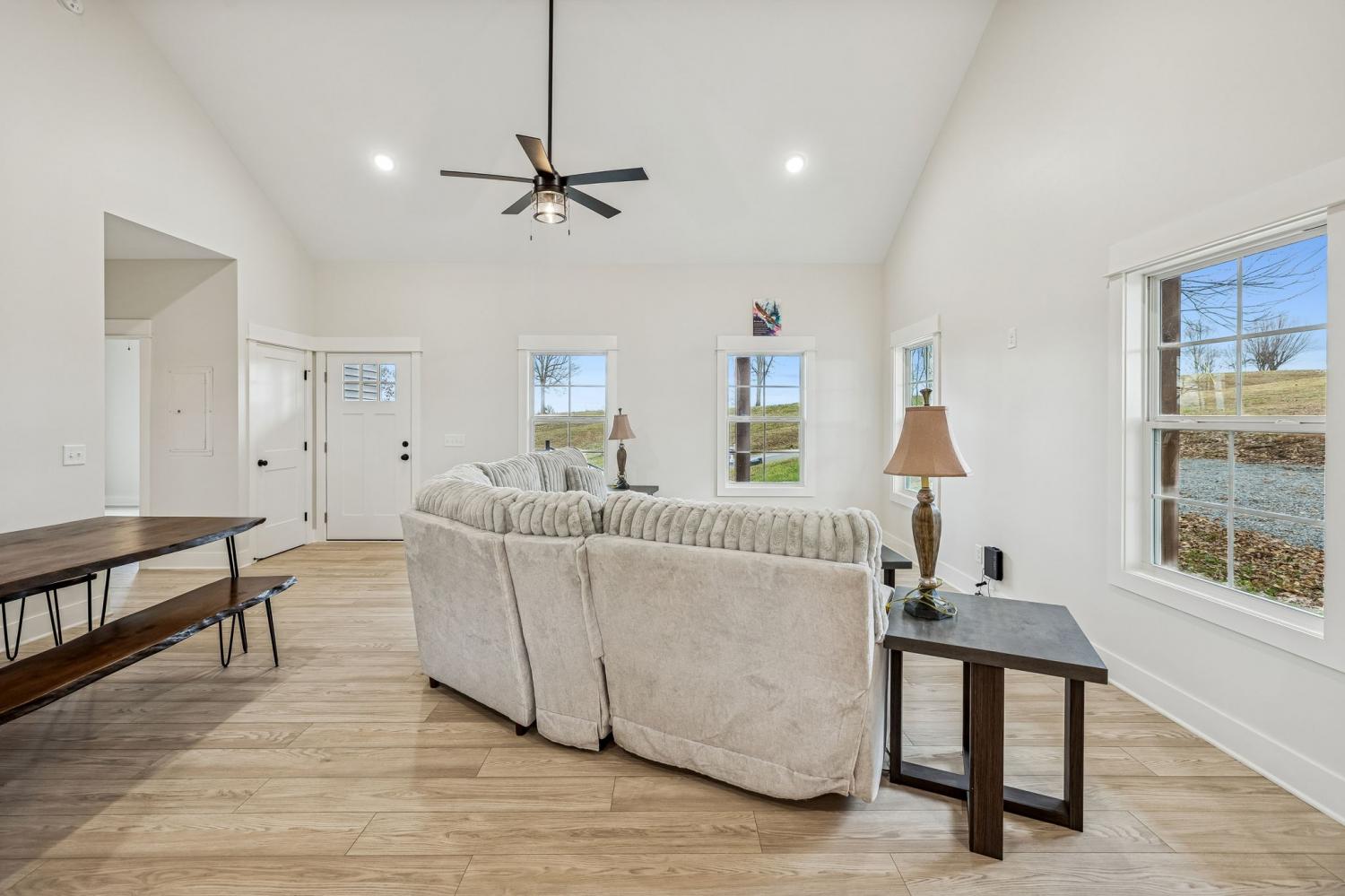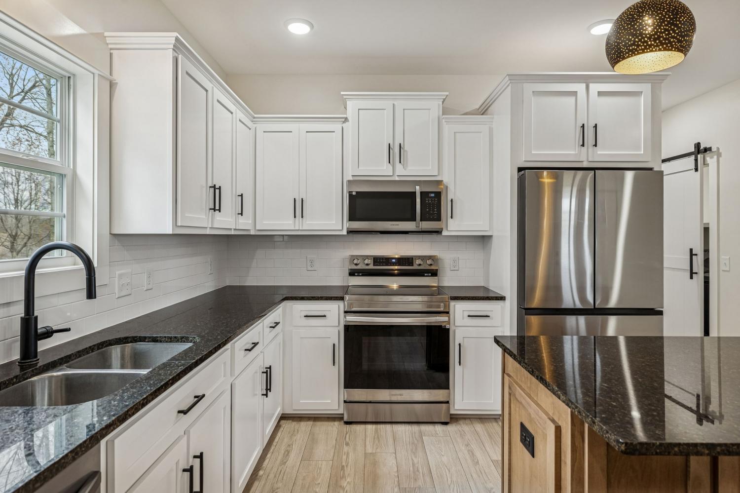 Welcome home to this stunning 3-bedroom, 2-bath new build nestled on a picturesque lot surrounded by beautiful mature trees. Step inside to an inviting open floorplan featuring 14-foot vaulted ceilings, custom cabinetry, granite countertops, and 9-foot ceilings throughout. Enjoy water resistant f flooring in every room for style and durability.