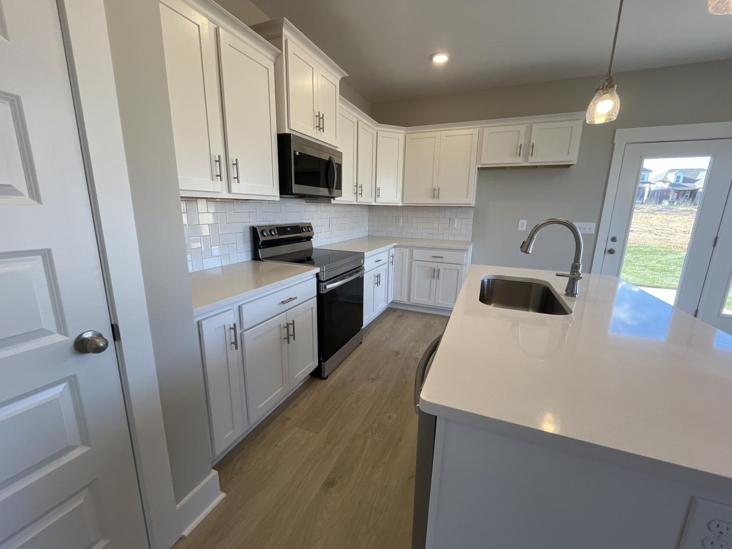 MOVE-IN READY + $16,500 IN INCENTIVES! For a limited time, receive up to $16,500 toward closing costs or a rate buy-down with our preferred lender and title company! Welcome to Westfield, where modern design meets functional living. This 3-bedroom, 2-bath home offers 1,603 sq ft of well-planned space, featuring a cozy living room with a gas fireplace and a stylish kitchen with quartz countertops, sleek backsplash, and custom cabinetry with designer hardware. The primary suite includes premium finishes, while two additional bedrooms provide flexibility for guests or a home office. This all-brick, one-level home includes a 2-car front-entry garage, pantry, ceiling fan, and a blend of carpet, laminate, and tile flooring for comfort and durability. Conveniently located near Nashville Pike, this home is perfect for today’s modern lifestyle. Don’t miss this incredible incentive and move-in ready opportunity!