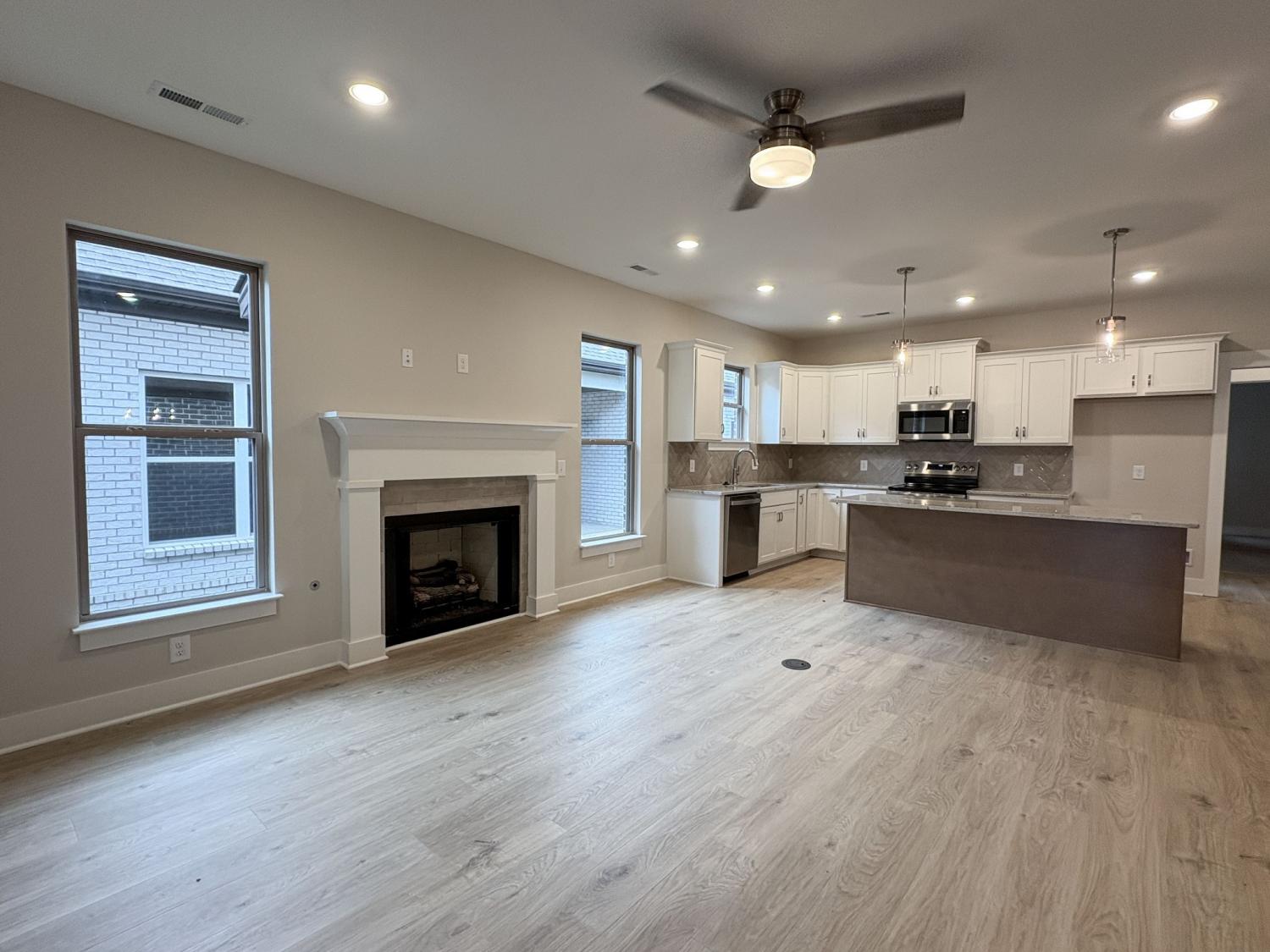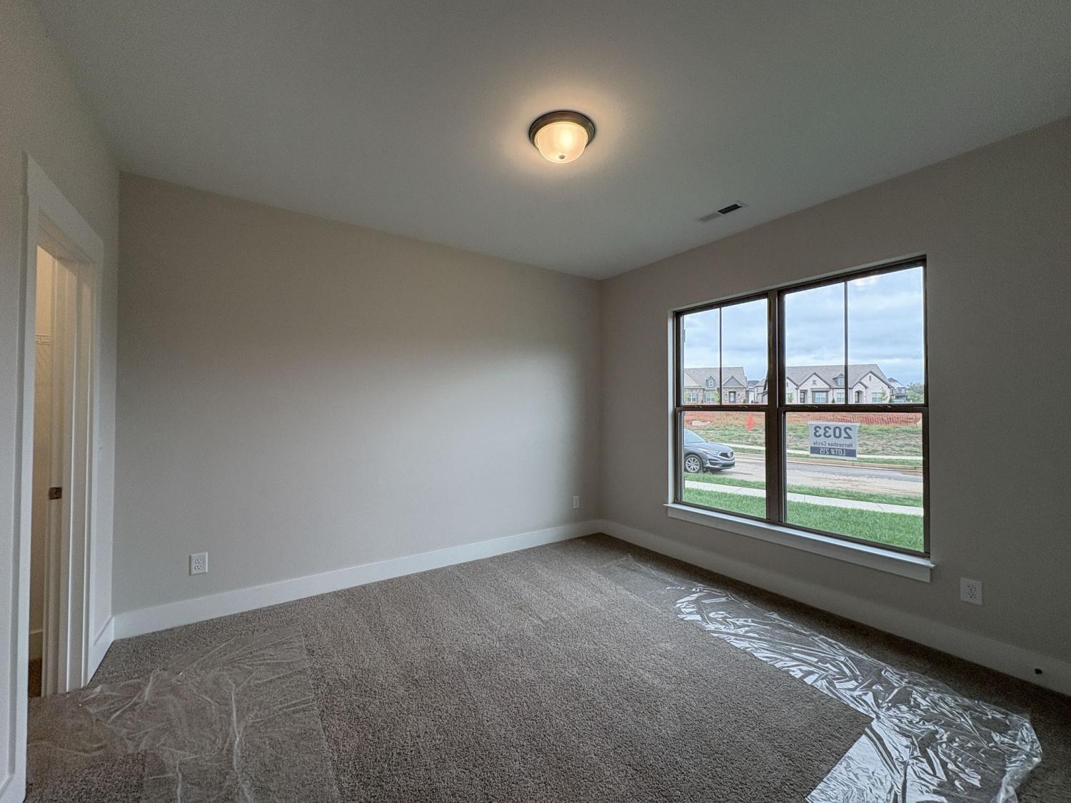 Enjoy one-level living in the Grant floor plan at The Paddock at Kennesaw Farms! This all-brick, 2-bedroom, 2-bath home offers 1,689 sq ft of thoughtfully designed space. The selections package features luxury laminate flooring in main areas, plush carpet in bedrooms, and designer tile in baths. The open-concept layout includes a spacious living room with gas fireplace, a formal dining room, and a gourmet kitchen with quartz countertops, white cabinetry, a tile backsplash, stainless appliances, and an island. The primary suite boasts a walk-in closet and a private bath with quartz vanity and shower. Additional highlights include a flex room, wainscoting in the foyer, upgraded lighting, and a rear-entry 2-car garage. Stylish exterior details and full irrigation add curb appeal. Ask us about our preferred lender and seller incentives!