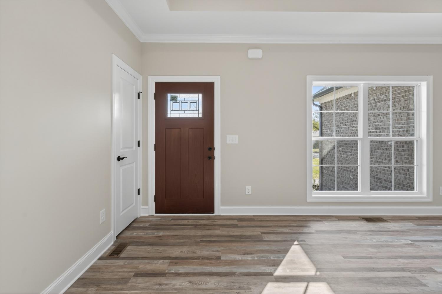 Brand-new all-brick construction offering modern comfort and timeless style. This beautifully crafted home features approximately 1,450 sq. ft. of well-designed living space on a generous 0.3-acre level homesite. Step inside to an inviting open layout accented by stone countertops, quality finishes, and abundant natural light. The spacious kitchen flows seamlessly into the main living area, creating the perfect setting for everyday living or entertaining. The private master suite is thoughtfully appointed with a walk-in closet and a double-vanity bath, providing a relaxing retreat at the end of the day. Enjoy outdoor living on the covered, private back porch, ideal for quiet mornings or evening gatherings. An attached 2-car garage with an epoxy floor adds convenience and extra storage. This stunning new construction home combines comfort, style, and modern amenities—ready for you to move in and make it your own.