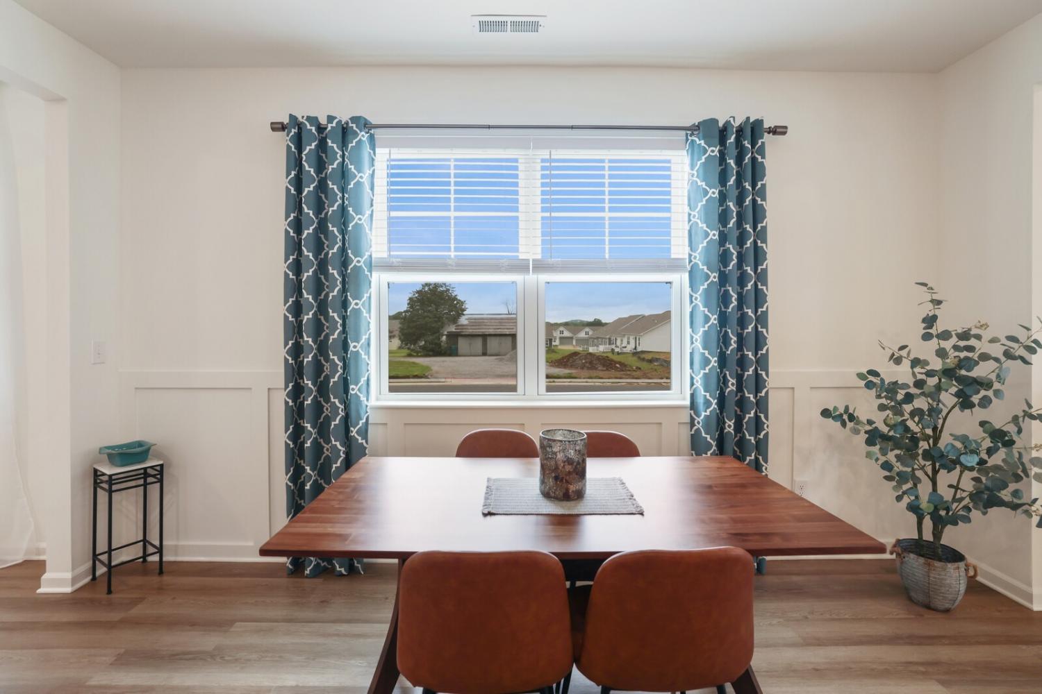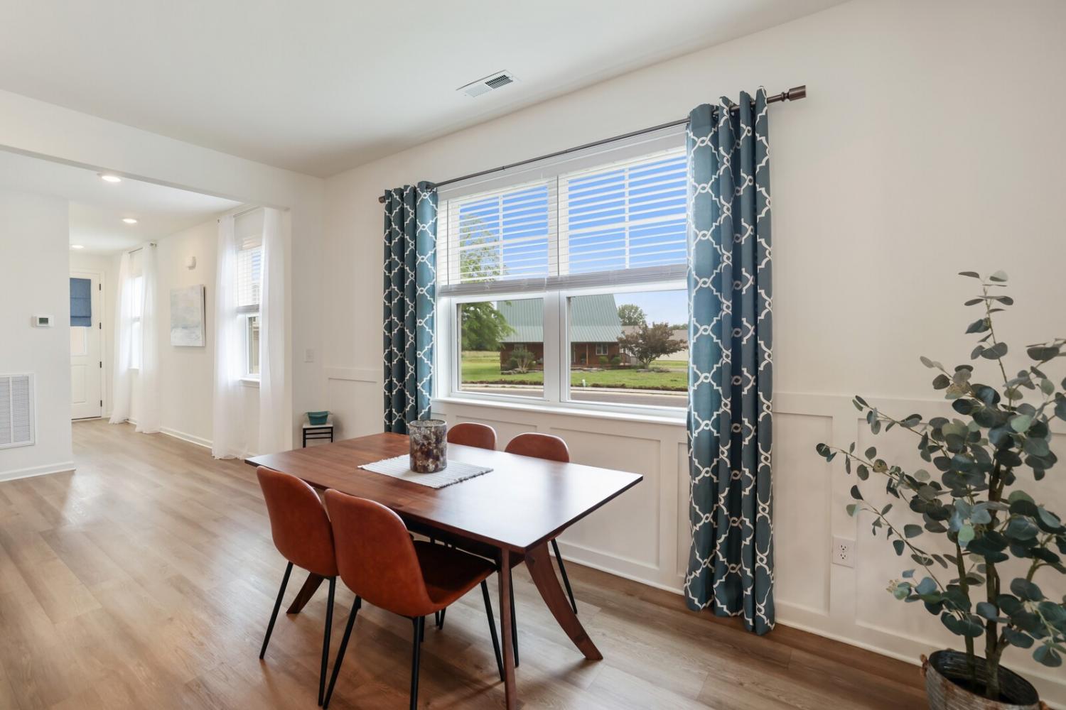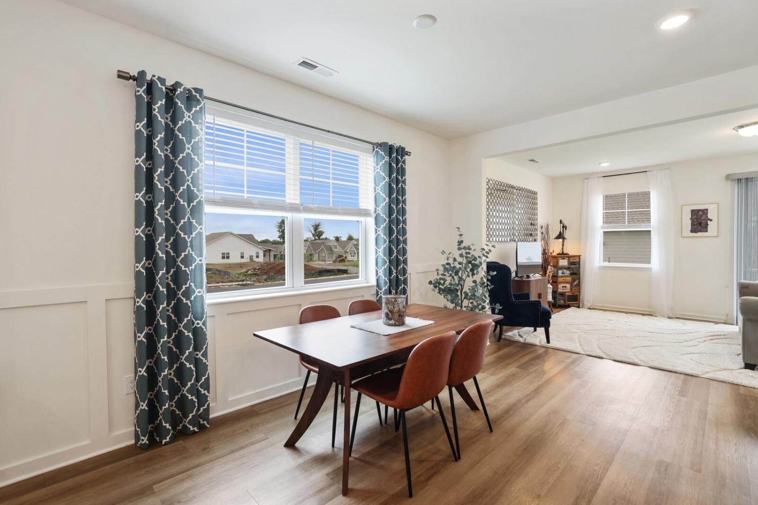 Welcome to 425 Multrees Place - a better-than-new home built in 2023, offering stylish comfort & effortless 1 level living in a vibrant 55+ community. This meticulously maintained home features 1,441 square feet on a large corner lot. The low-maintenance lifestyle is enhanced by an HOA that includes landscaping. Step inside to discover 2 spacious bedrooms, w/ upgraded carpet. The front bedroom includes added shelving in the closet, making it an ideal option for a home office or hobby space. The primary bedroom offers a relaxing retreat w/ an en-suite bath featuring a large walk-in closet, double vanities, designer lighting, tile flooring, & tiled shower with a frameless glass door & bench seating. The heart of the home is the open-concept living area, including a large family room w/ LVP flooring & a sliding door that leads to a concrete back patio. This patio can be enlarged or fenced in w/ HOA approval. The chef’s kitchen is as functional as it is beautiful, boasting a large eat-in area w/ decorative wainscoting, quartz countertops, a tile backsplash, & stainless steel appliances including a microwave, dishwasher, range, hood, and refrigerator which will convey w/ the home. Soft-close cabinetry & drawers, along with a large pantry, offer ample storage. Additional interior features include a spacious laundry room w/ a washer and dryer that will also remain, & a secondary full bath w/ upgraded tile flooring, a tiled tub/shower combination, & designer lighting. The current homeowner also added custom blinds throughout the home. The home also features a spacious two-car garage with epoxy flooring. Enjoy access to fantastic community amenities such as pickleball courts, sidewalks, & a pavilion complete w/ a cozy firepit. Located just minutes from shopping, restaurants, & Smyrna’s active senior center (w/ card games, yoga, line dancing, day trips, and even overnight vacation.) Up to 1% lender credit on the loan amount if the buyer uses the Seller's Preferred Lender.