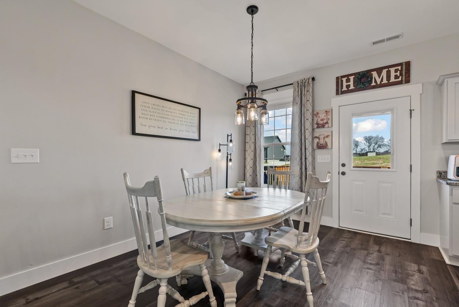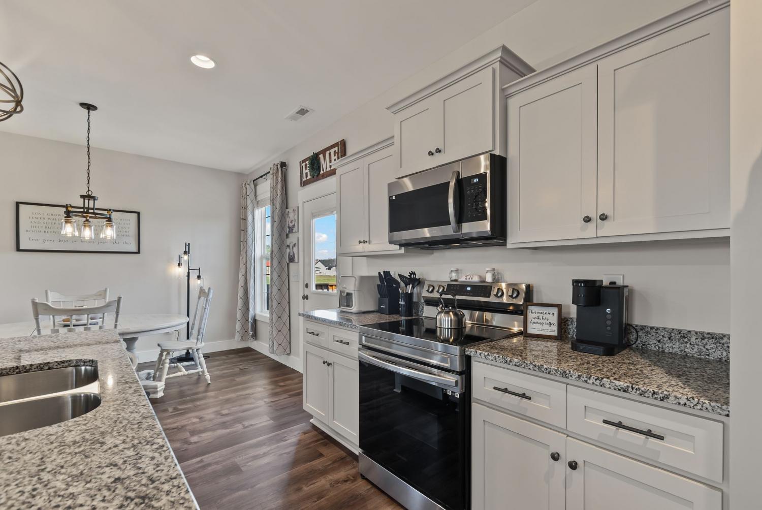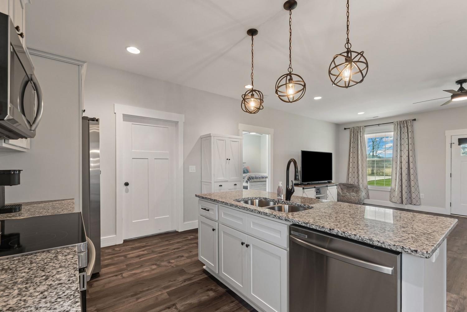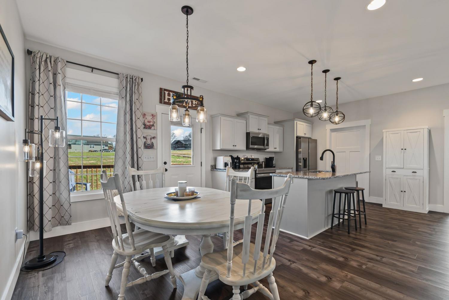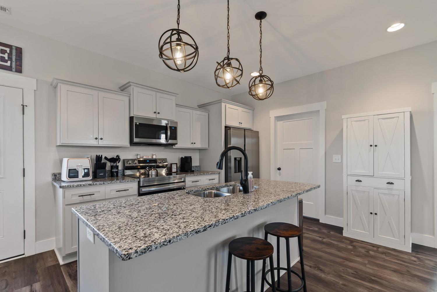 Stunning 3 BR, 2 BA Home offering true Single-Level living and an Inviting Open Layout. The Kitchen features Beautiful Granite Countertops, Soft-Close Cabinetry, a Spacious Island with Seating, and a Full Stainless Appliance Package—including the Refrigerator. The Primary Suite offers a Generous Walk-in Closet and a Well-Appointed Bath with Double Vanities. LVP Flooring and Recessed Lighting run throughout the Home, and the Laundry Room provides Extra Storage. Enjoy Outdoor Living on the Covered Front Porch or the Large Back Deck. Additional perks include a Wide Concrete Driveway and Sidewalk, Spray Foam Insulation for Energy Efficiency, and 9-foot Ceilings. Ideally located just 2.5 miles from I-65, with Easy Access to Franklin, Nashville, and Huntsville—all in a Peaceful Country Setting.
